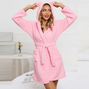 Peignoir de Bain Femme Capuche oreille Coton/Polyester