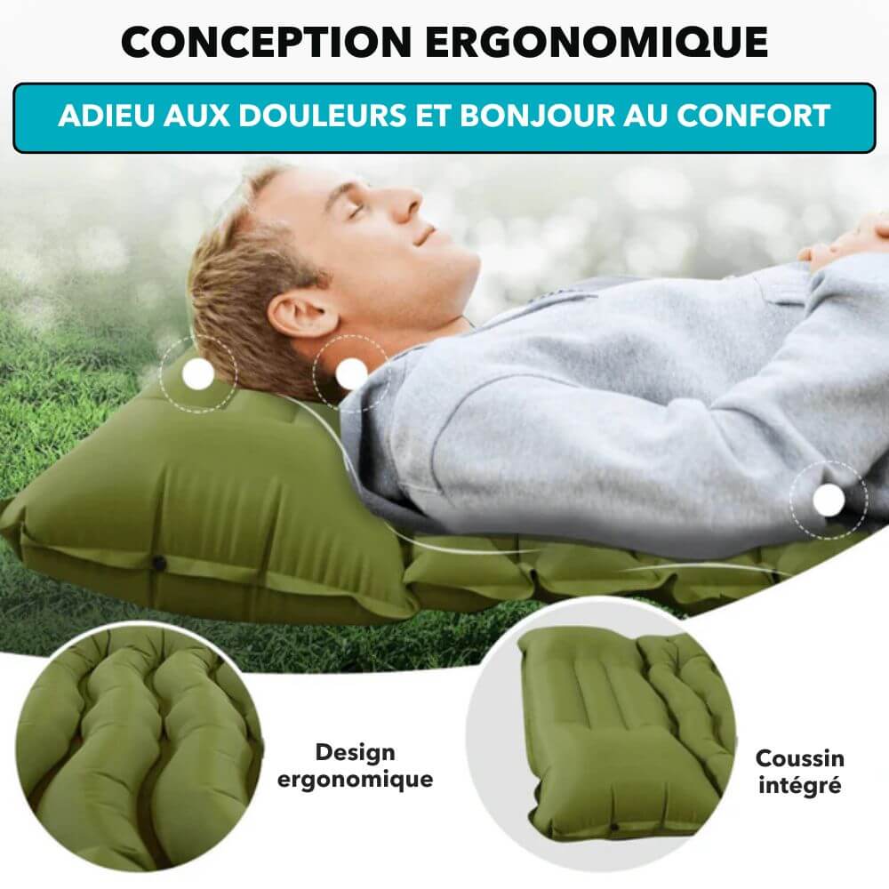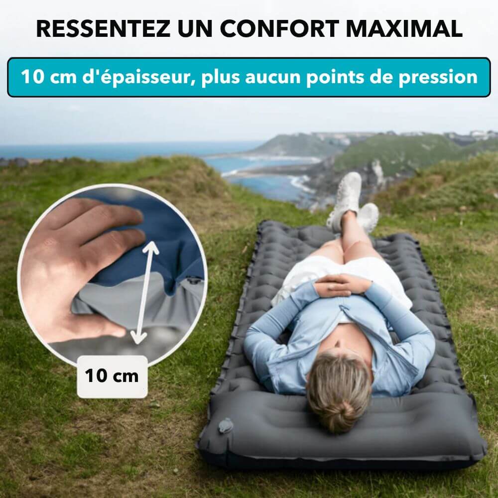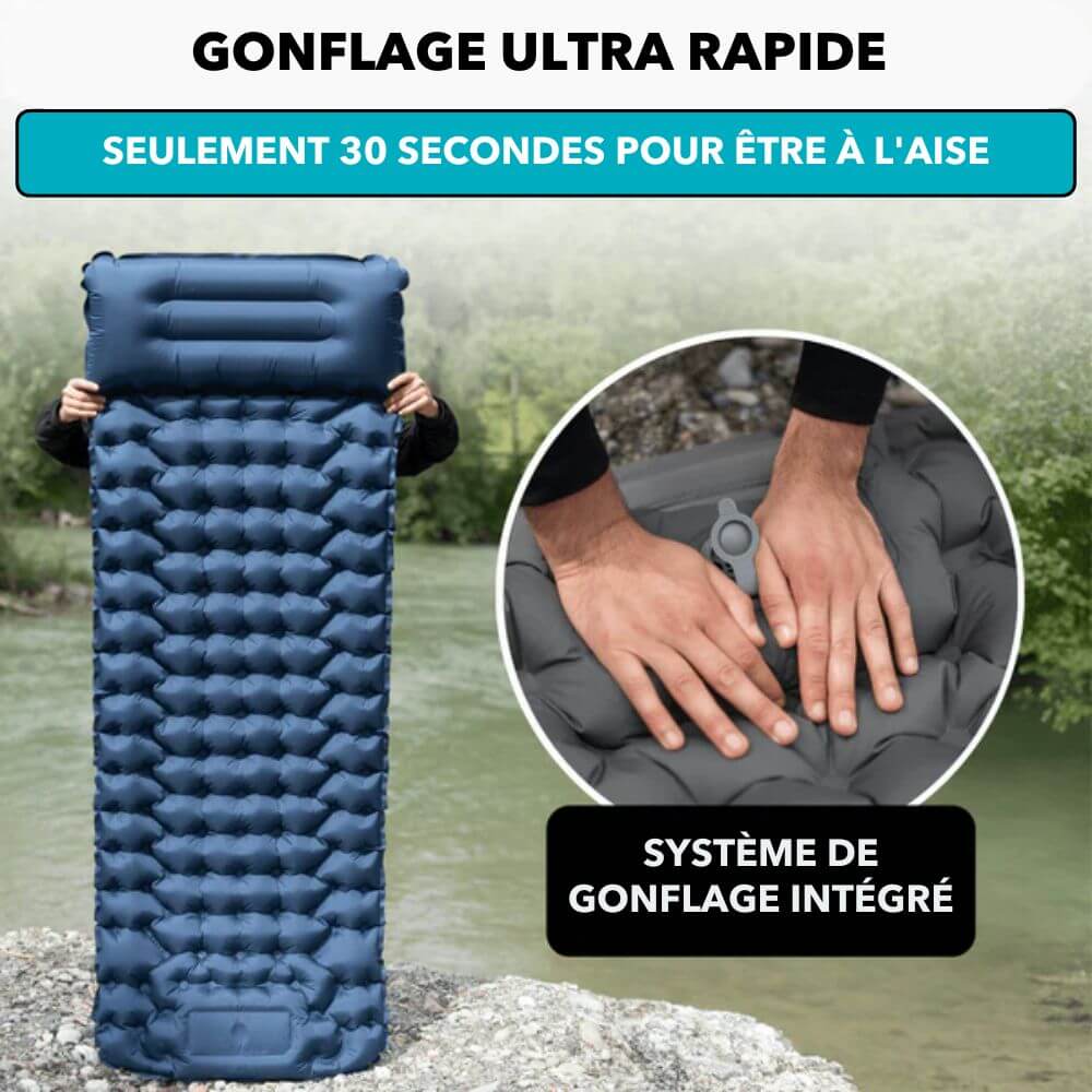 Notre matelas AirLite ultraléger, doté d’une pompe intégrée, vous assure un confort inégalé en seulement 30 secondes. Que ce soit pour le camping, la randonnée, l’escalade ou une journée à la plage, ce matelas compact et de qualité supérieure sera votre compagnon idéal pour toutes vos sorties.