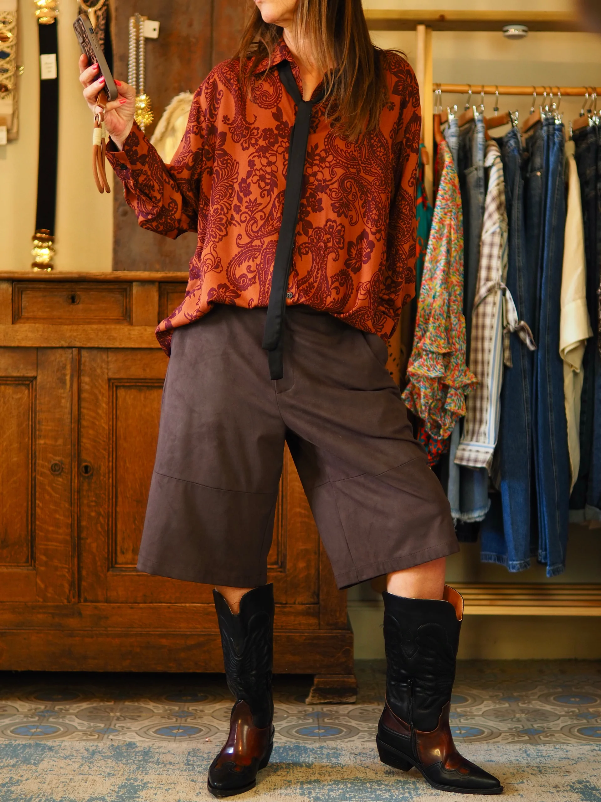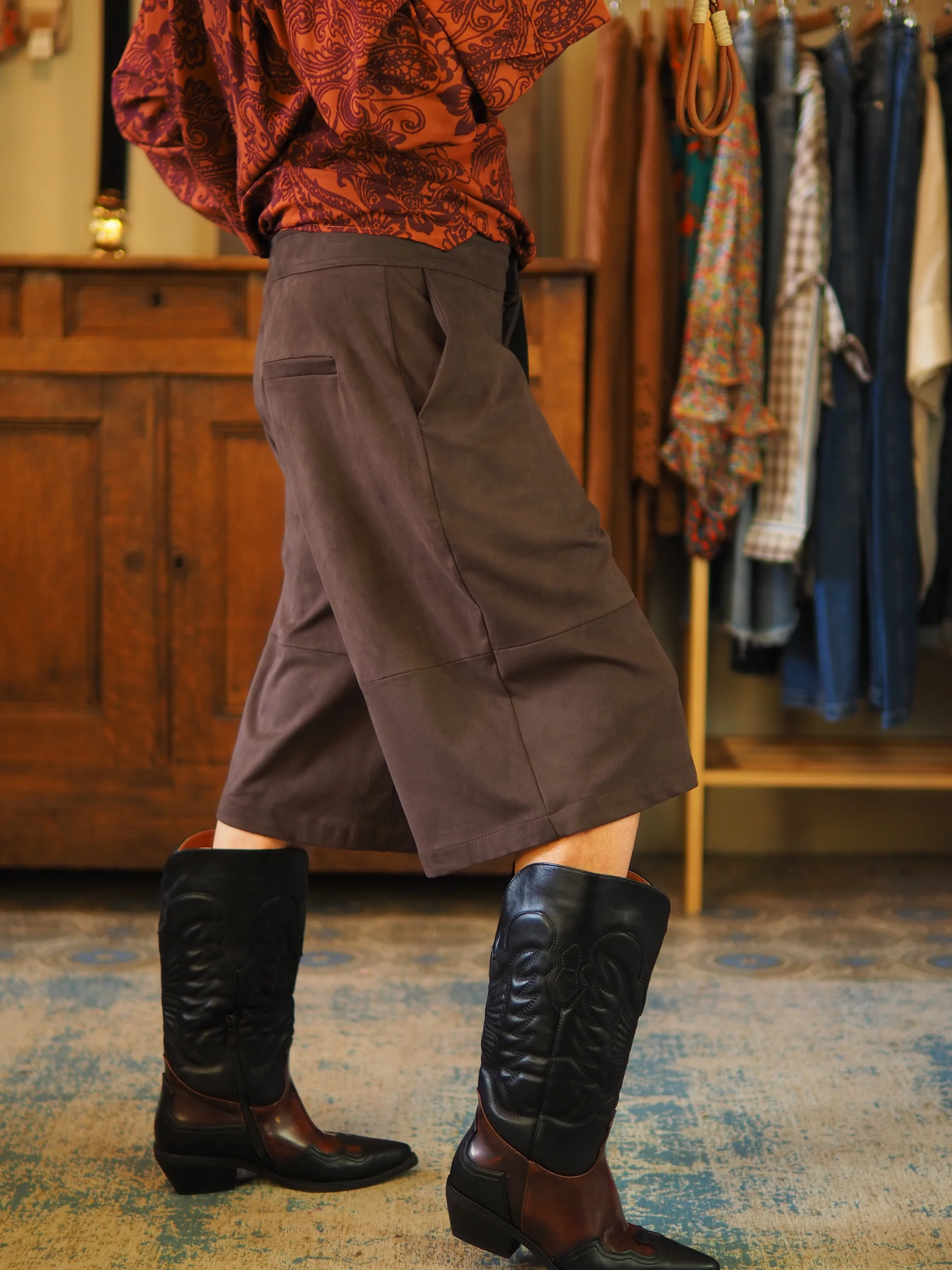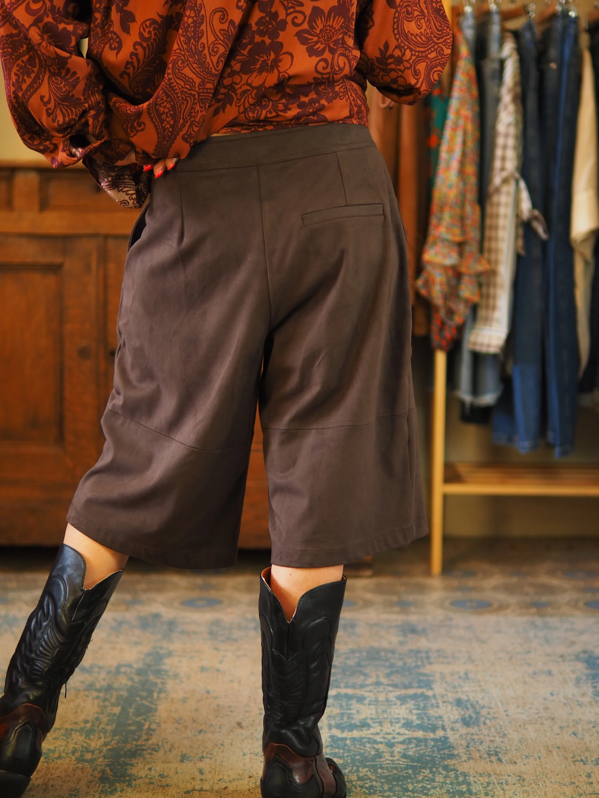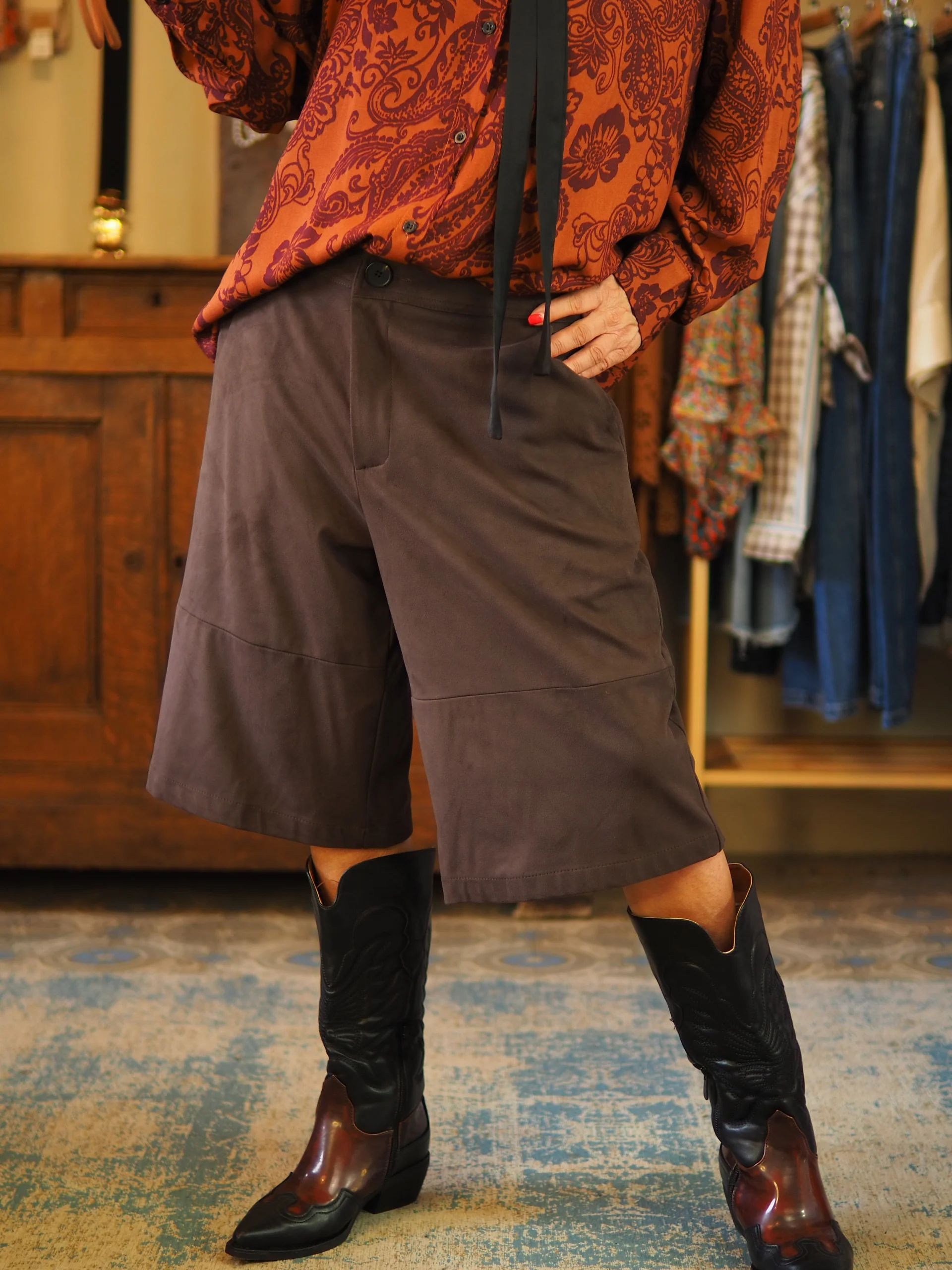 Bermuda suédine marron( belle imitation daim souple). Taille grand.