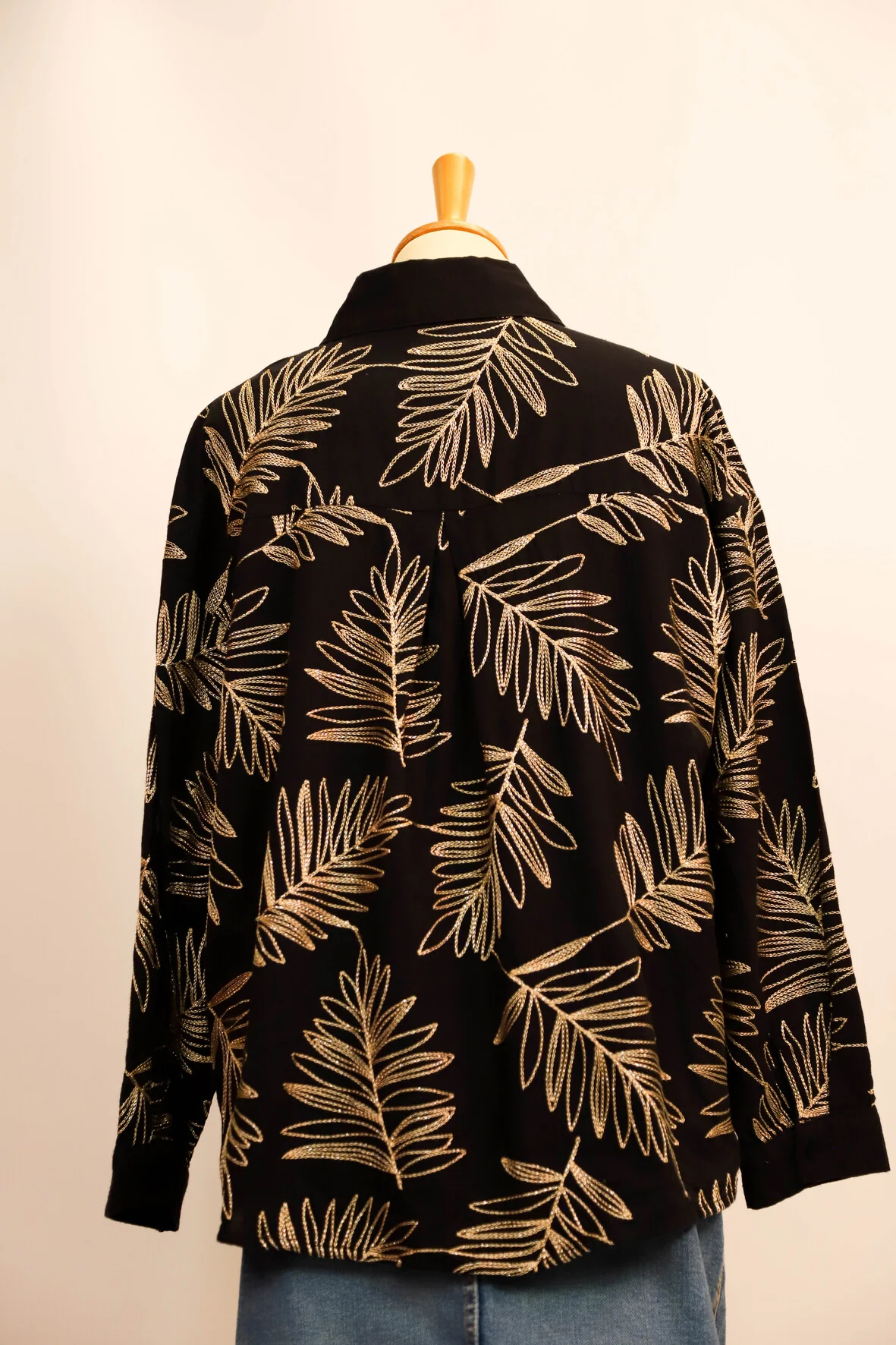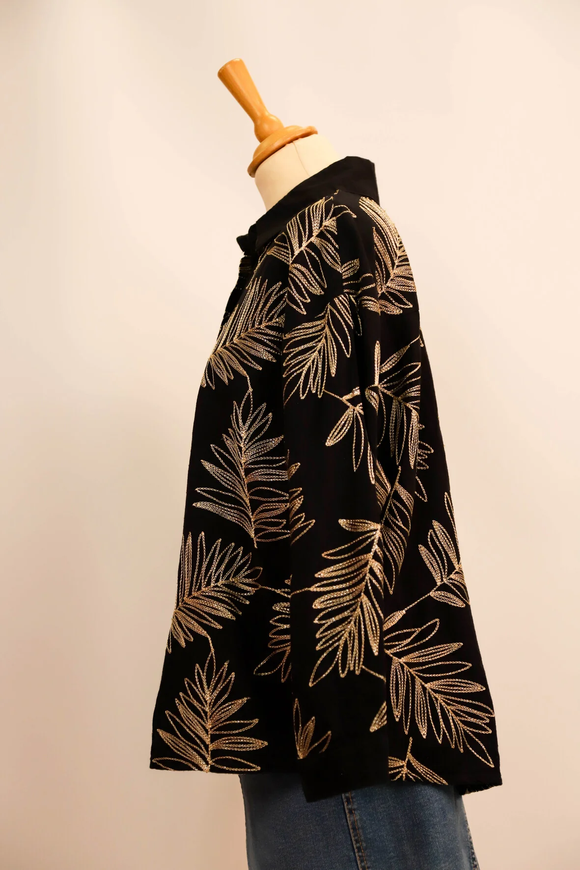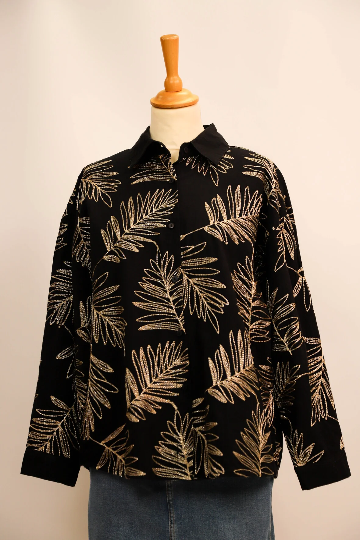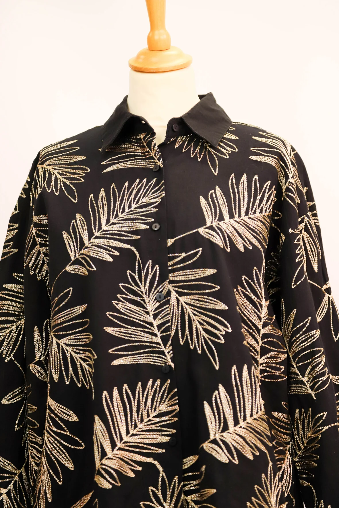 | DESCRIPTIF | Blouse manches longues avec feuilles dorés brodées |