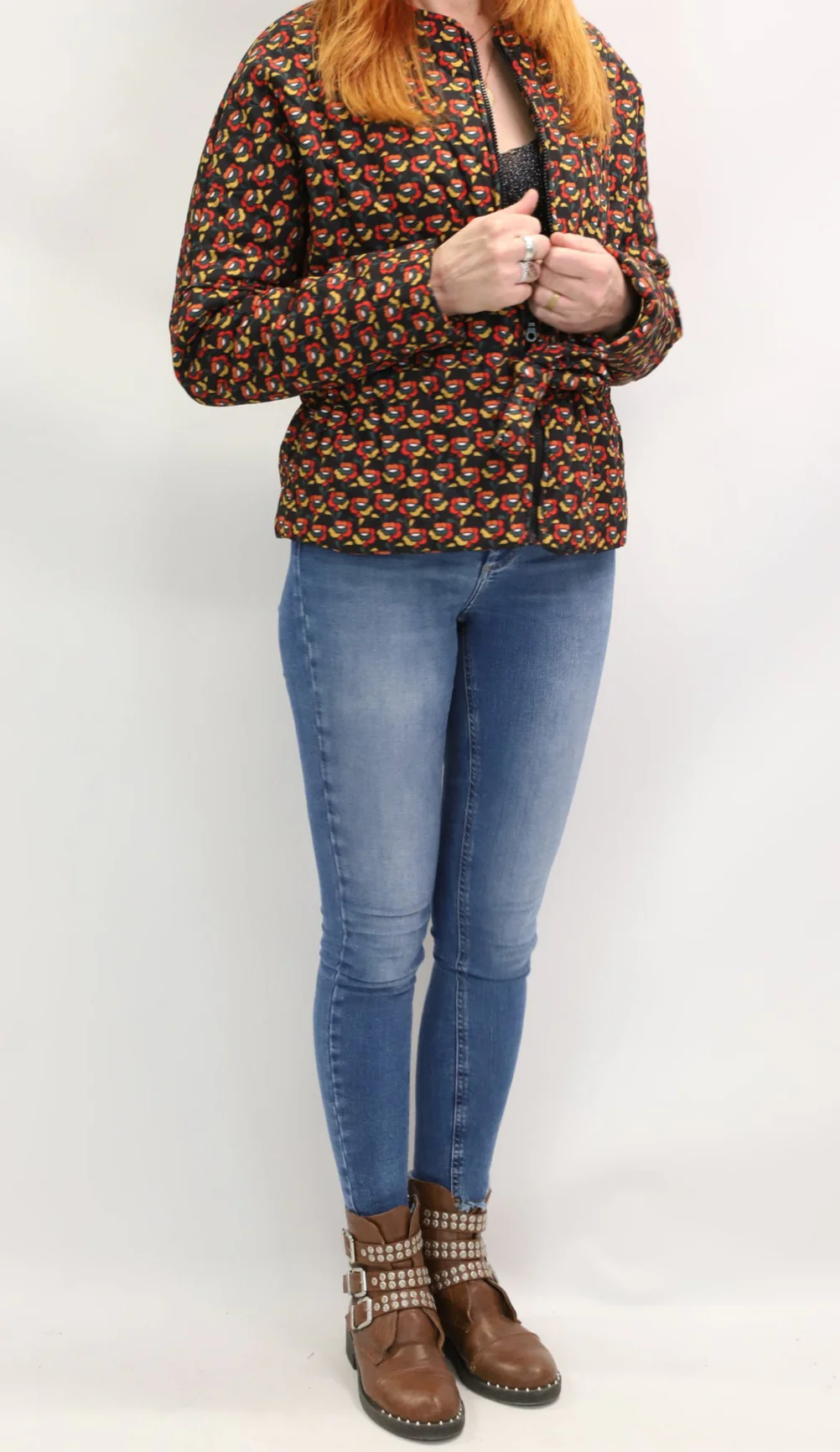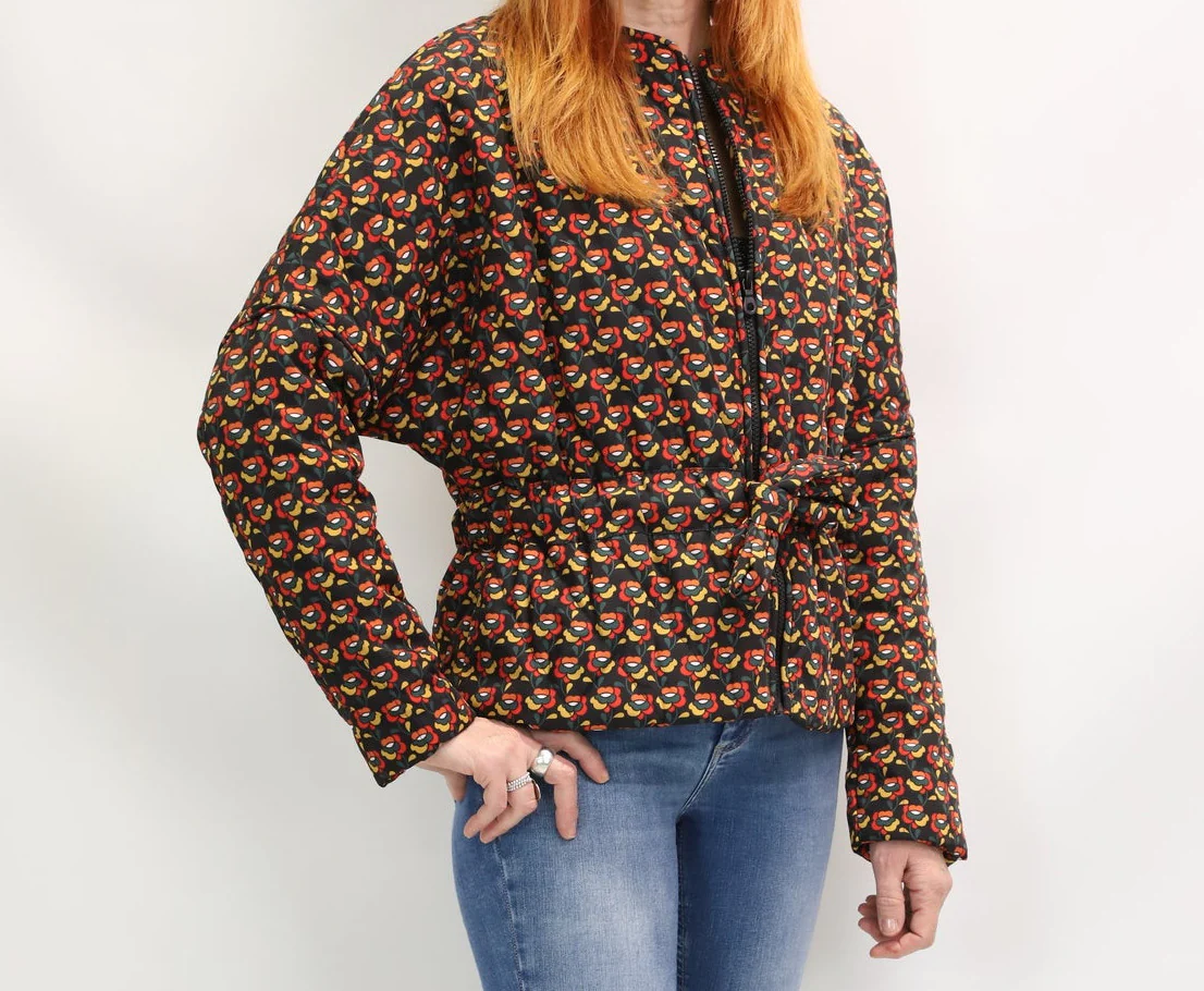 – Blouson matelassé ceinturé, imprimé vintage