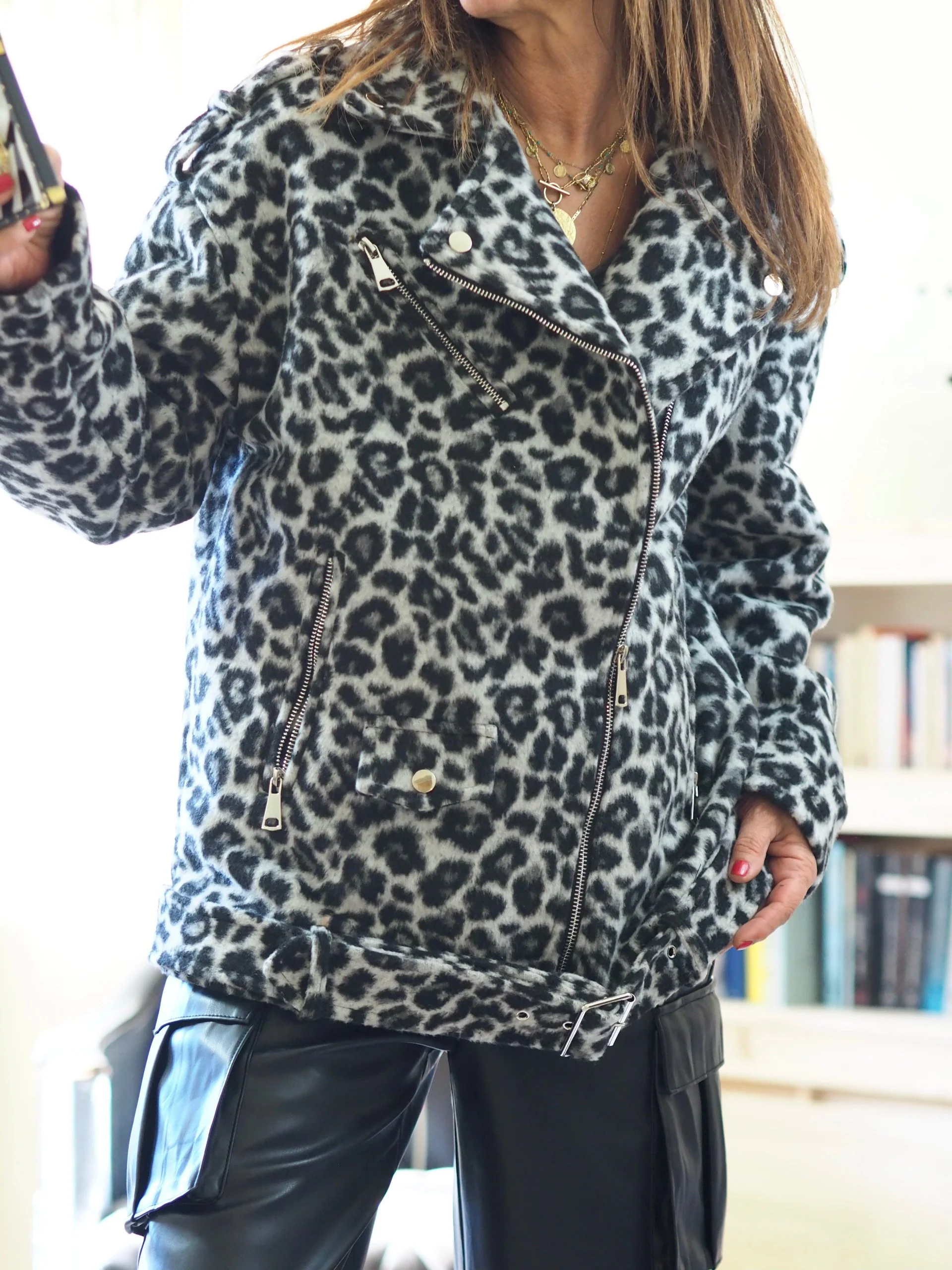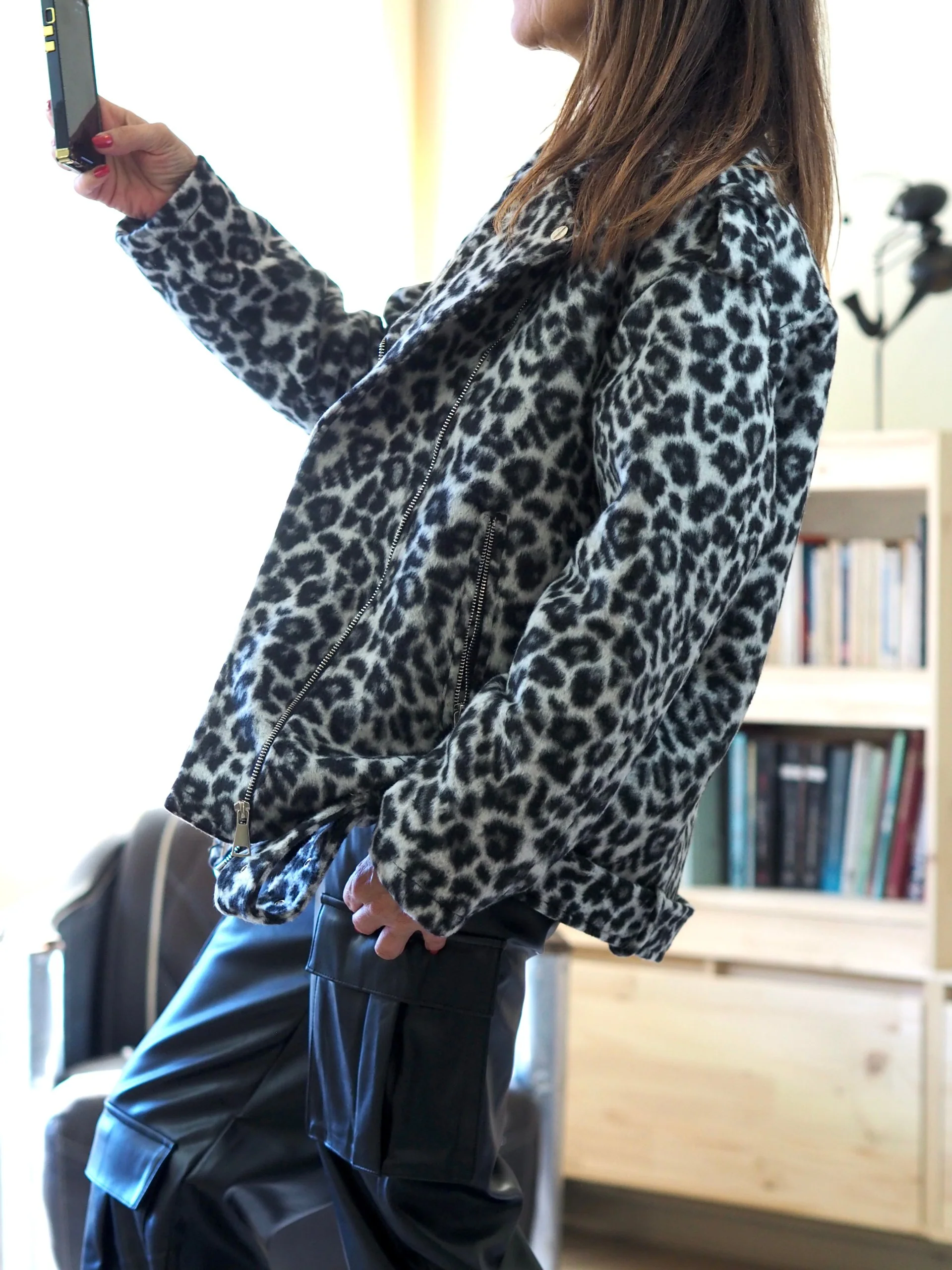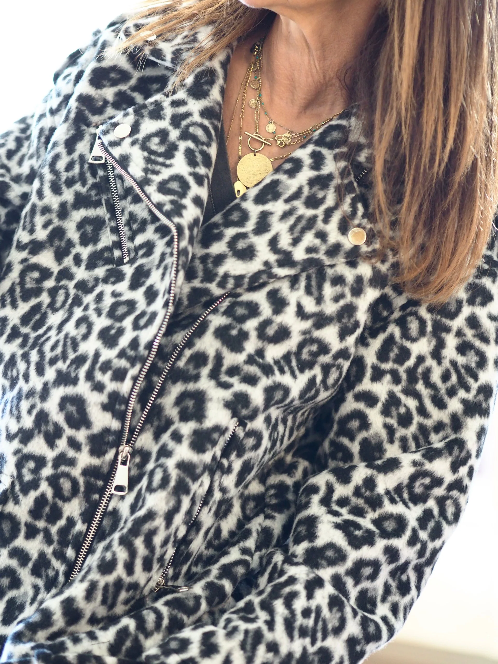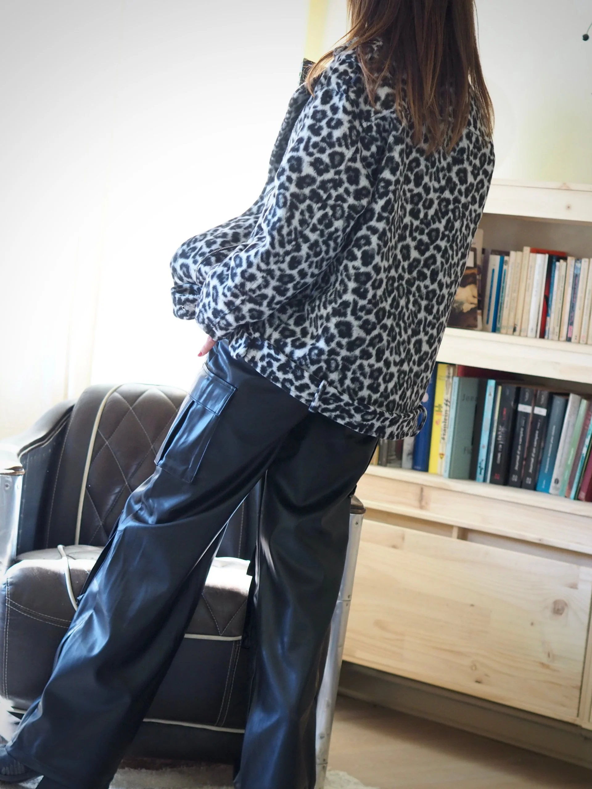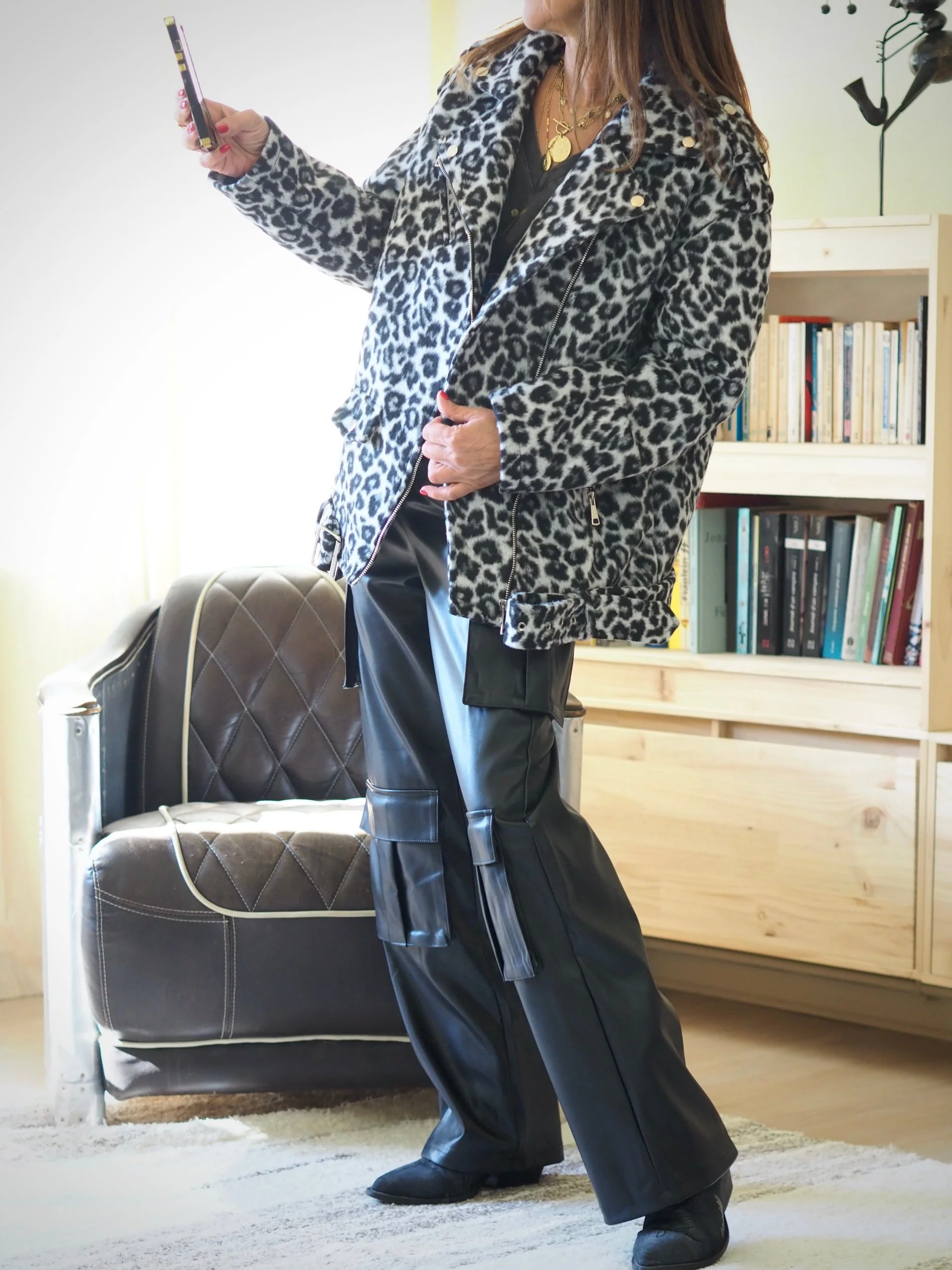 Perfecto léopard noir et blanc. Très épais imitation fausse peau peluche. Une pépite… Doublé.