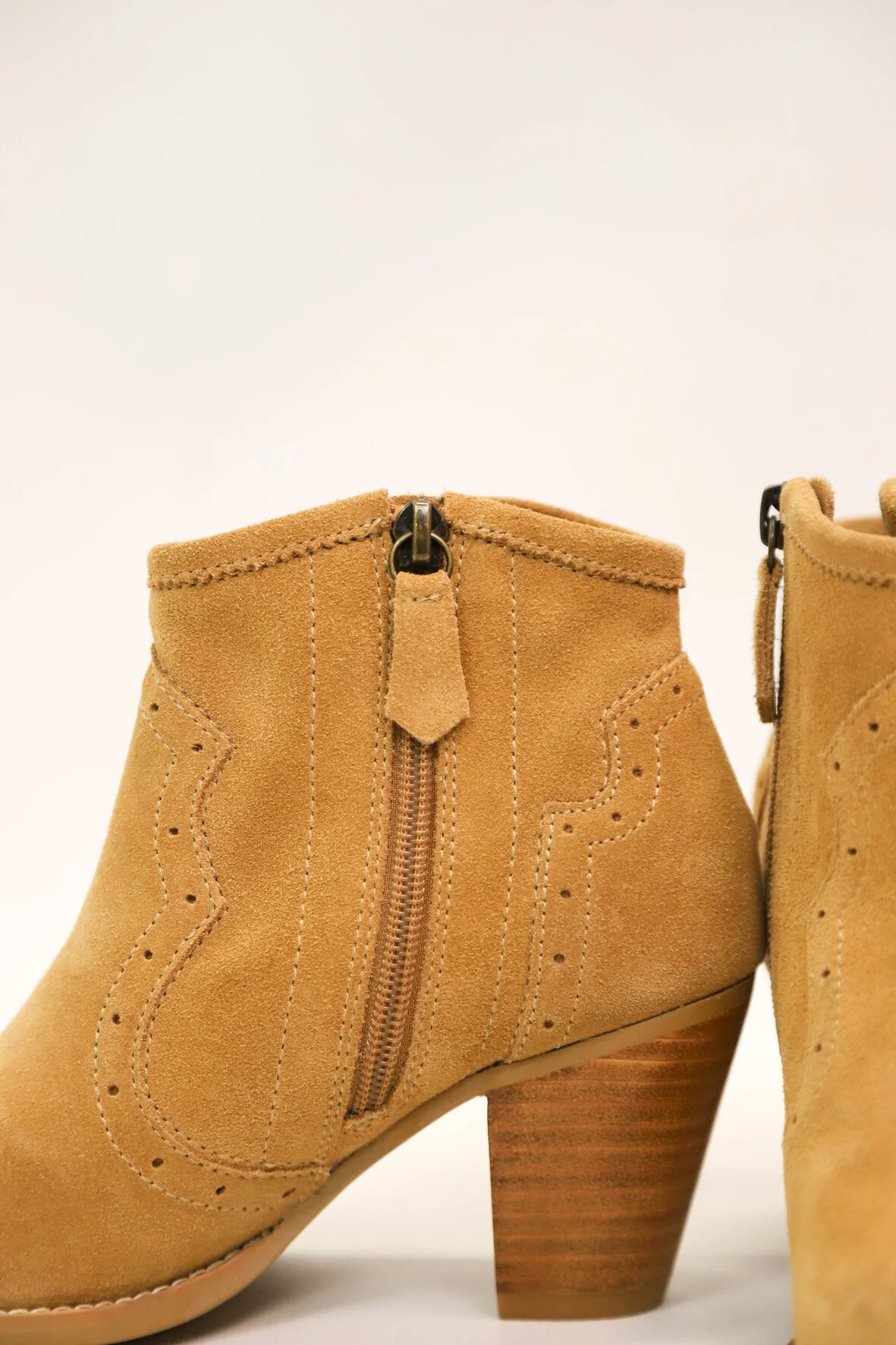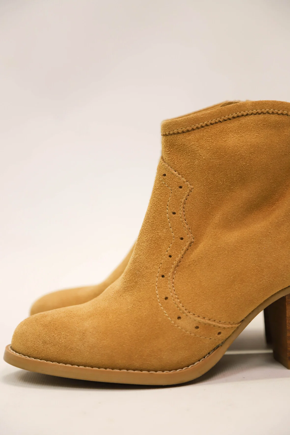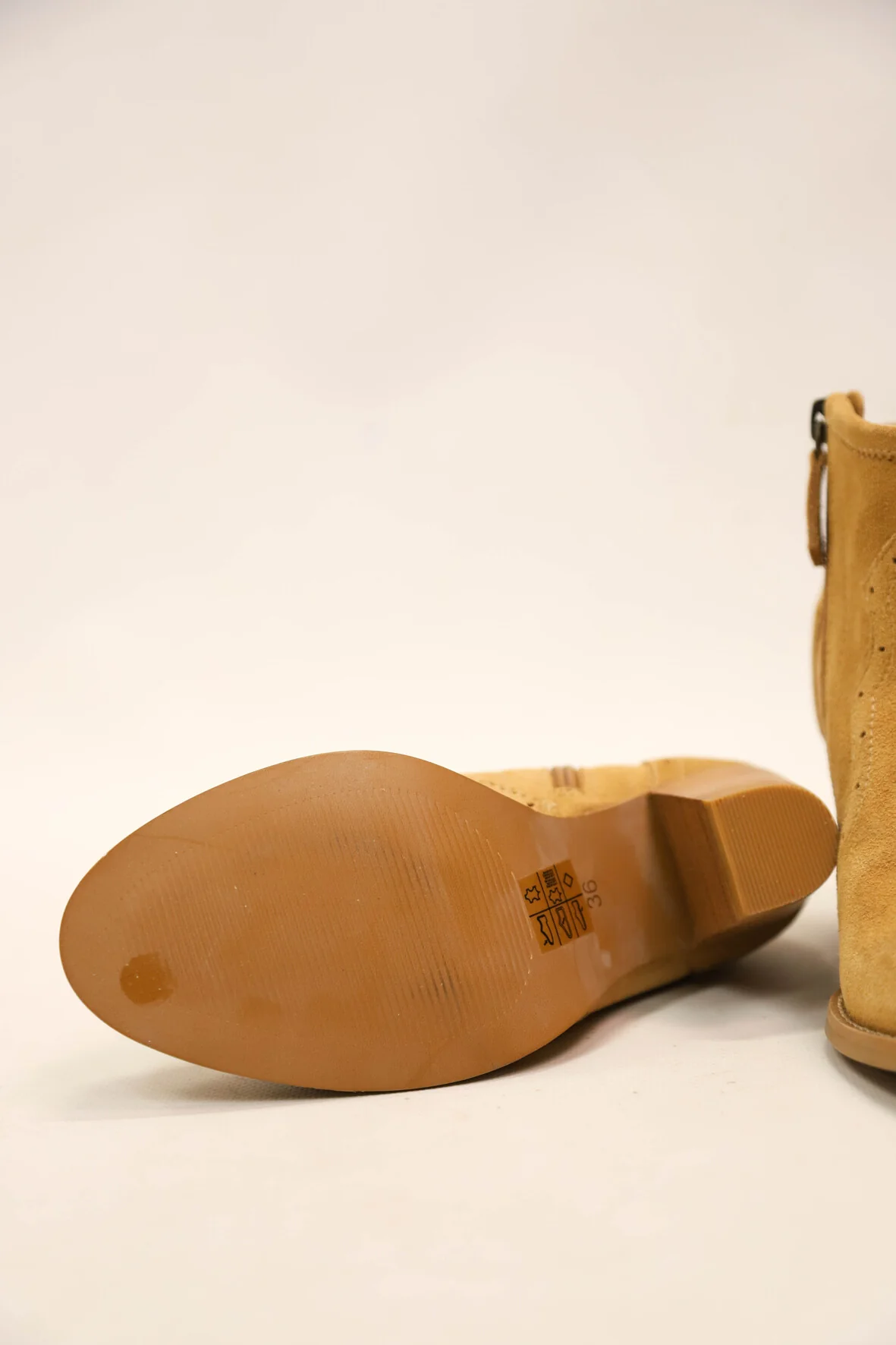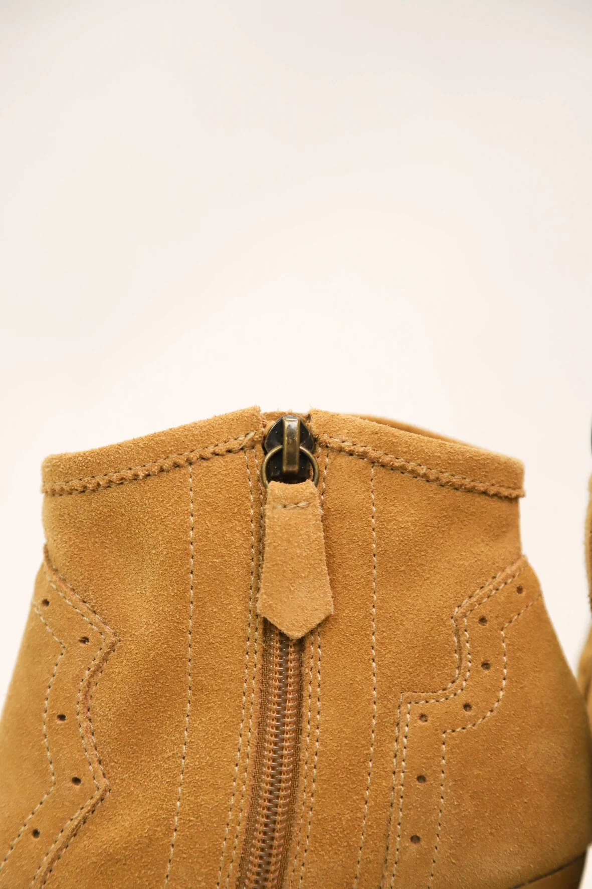 | DESCRIPTIF | Bottines en daim avec talons de 6cm. Fermeture éclaire sur l’intérieur |
