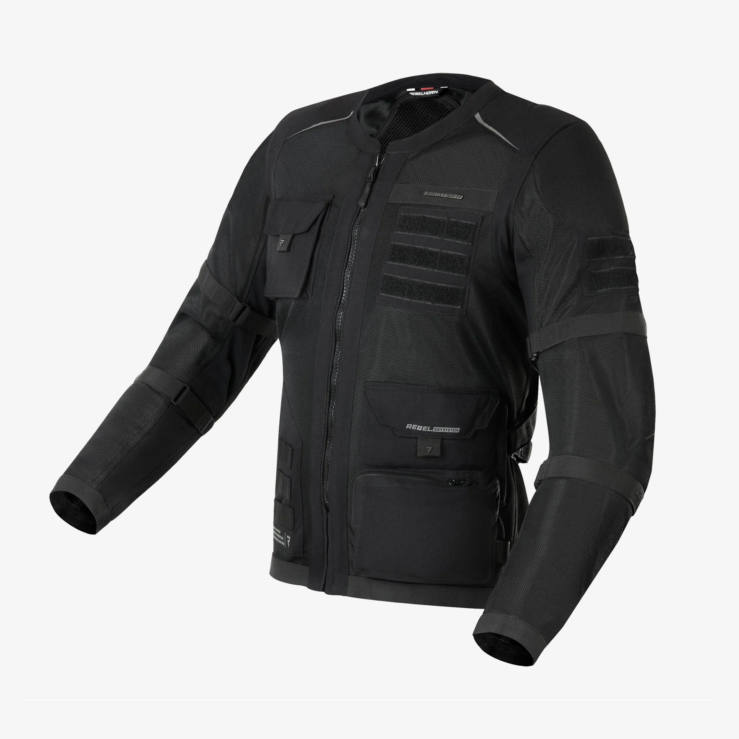 La veste de moto Rebelhorn Brutale a été créée pour les trajets dynamiques par temps chaud. La veste est fabriquée en tissu en maille d’acier qui permet une circulation d’air libre et s’adapte parfaitement au corps. Malgré sa légèreté, la veste Brutale vous protège parfaitement grâce aux protecteurs de coude, d’épaule et de dos de niveau CE 2.