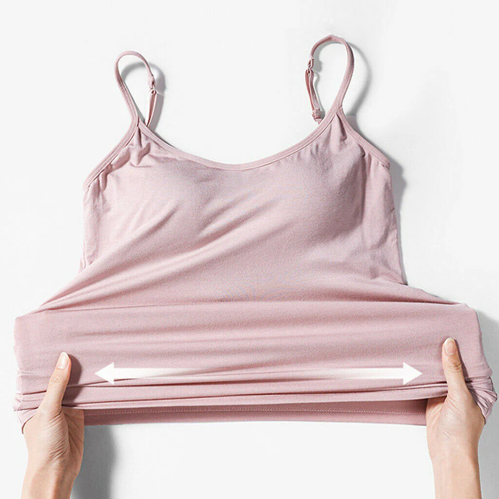L’encolure dégagée classique fait de cette camisole un atout à porter sous tous vos vêtements. C’est également un débardeur autonome avec un soutien-gorge intégré très solide !