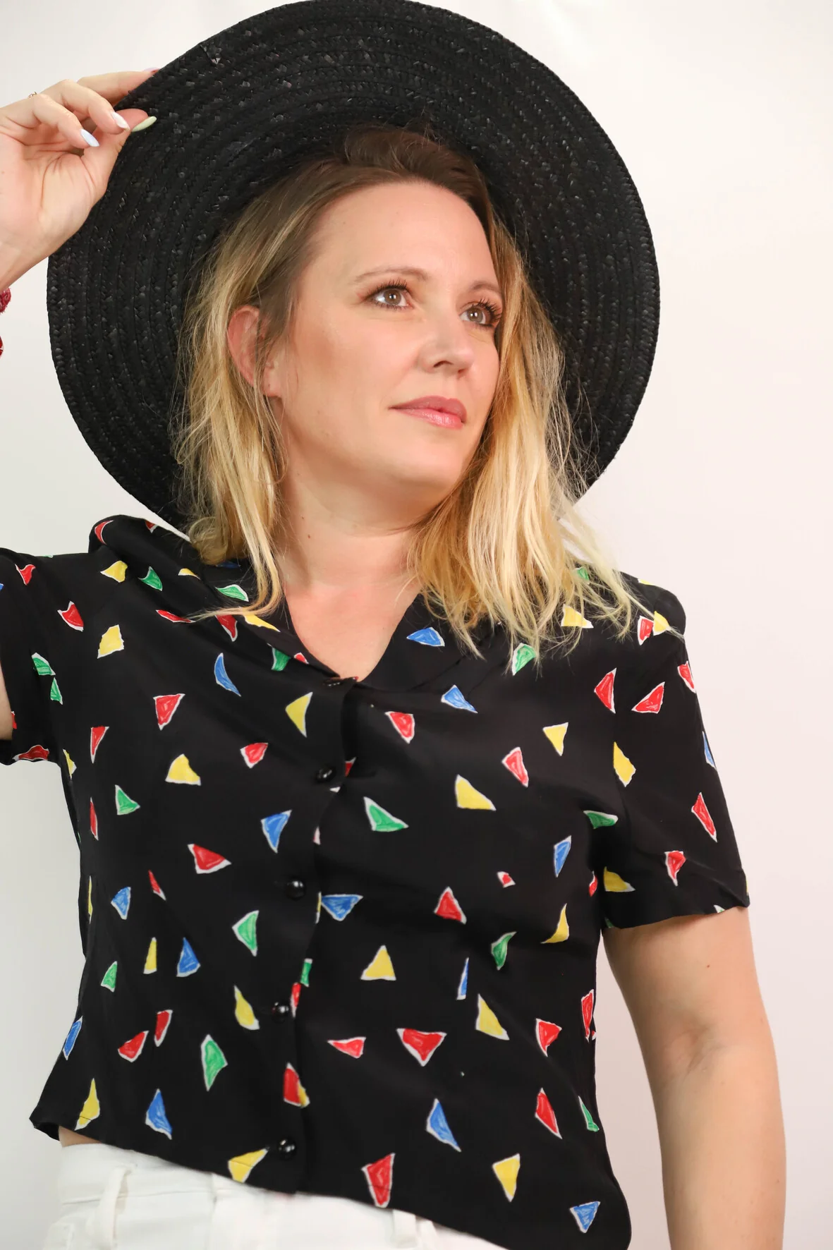 DESCRIPTIF Chemisier manches courtes avec motifs géométriques