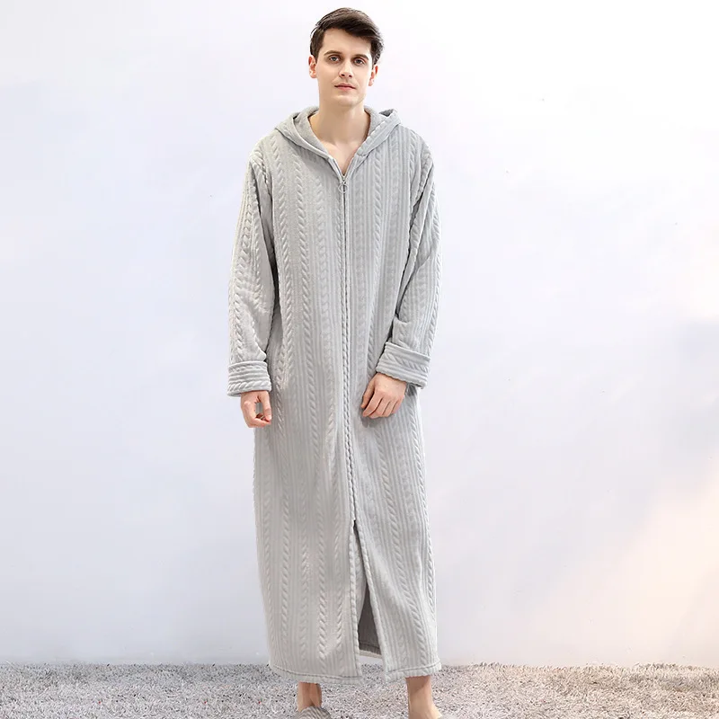 Le peignoir CocoonChaud est l’accessoire parfait pour les nuits d’automne et d’hiver, conçu pour les couples qui souhaitent se blottir ensemble dans le confort. Fabriqué en flanelle épaisse, ce peignoir à fermeture éclair offre une chaleur exceptionnelle tout en ajoutant une touche de style à vos soirées. Avec sa capuche pratique et son design long, il est idéal pour se détendre à la maison, que ce soit pour une soirée tranquille ou une nuit cocooning.