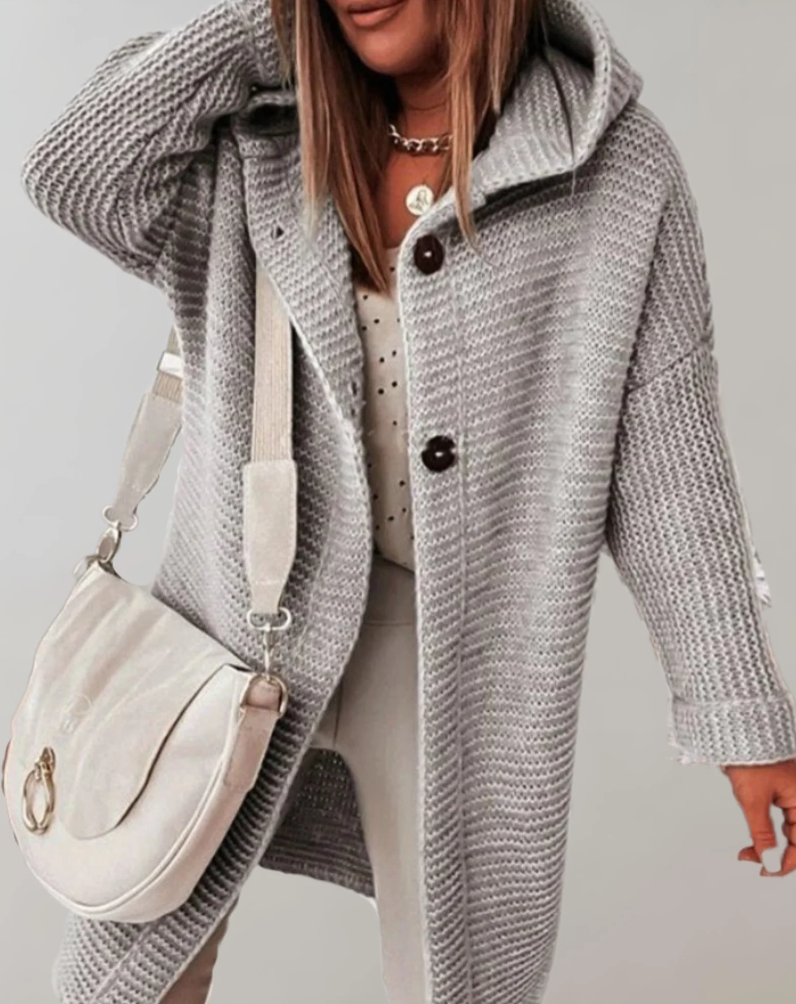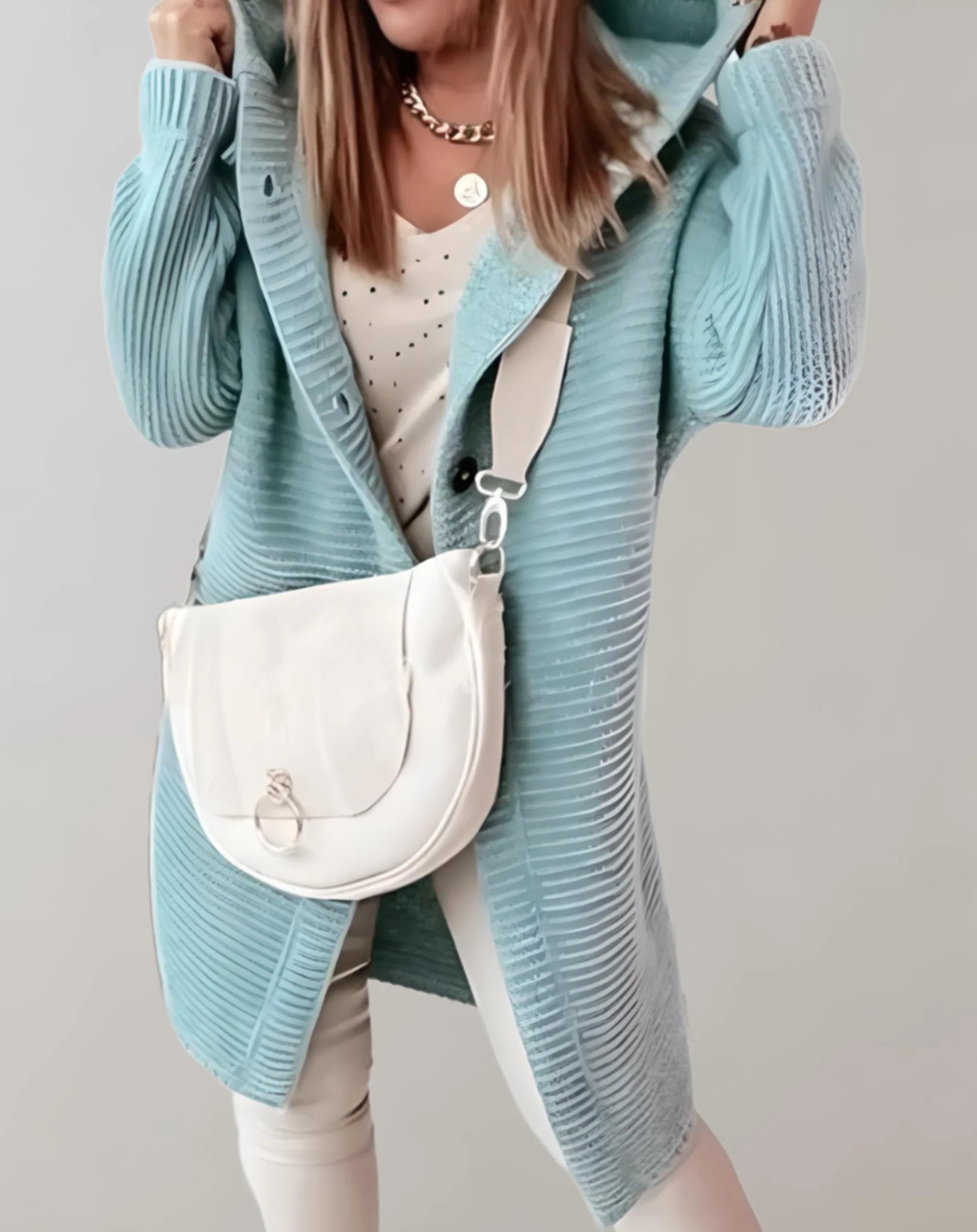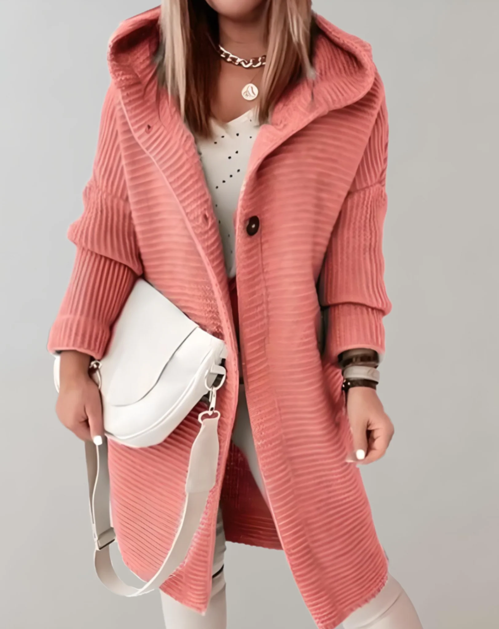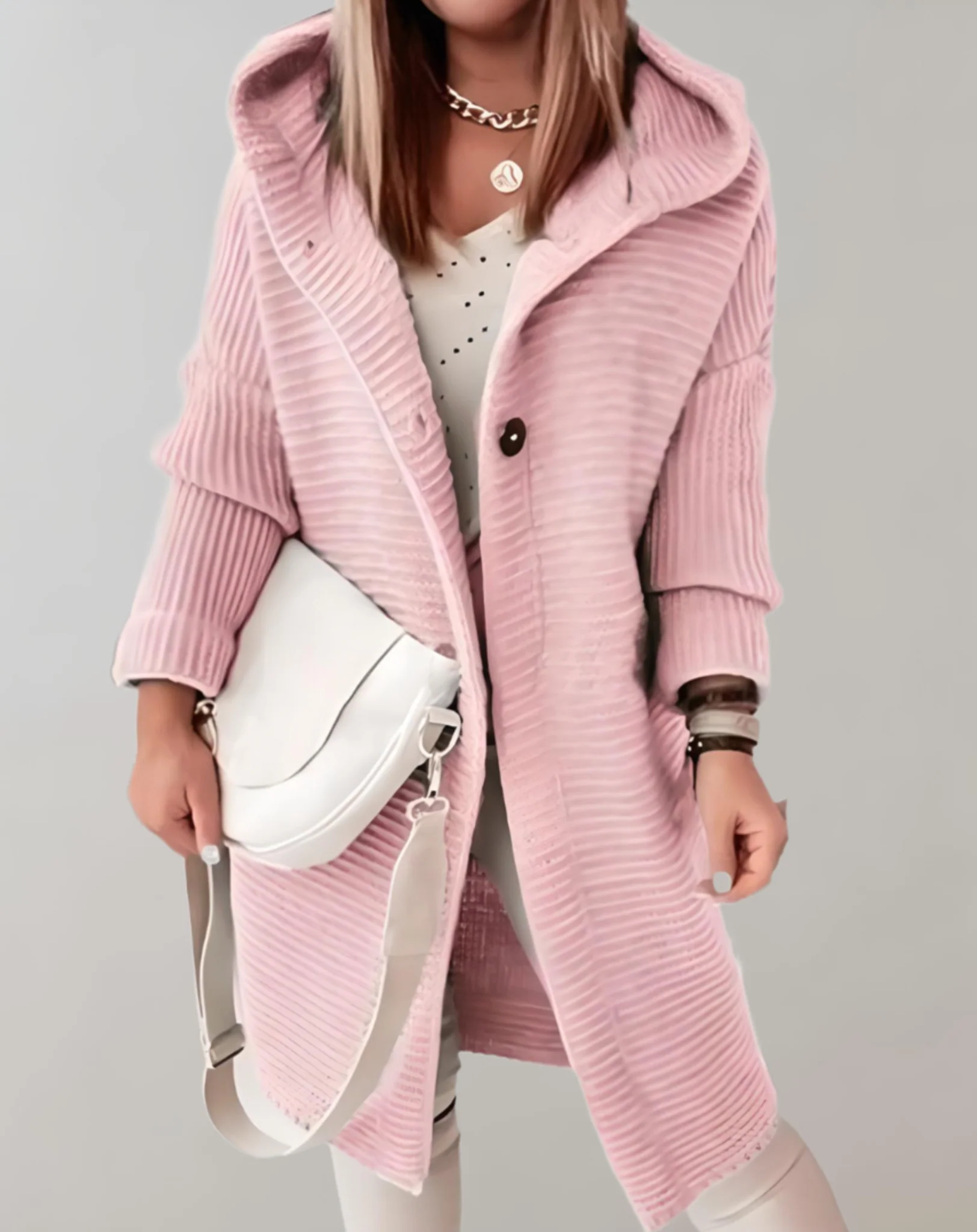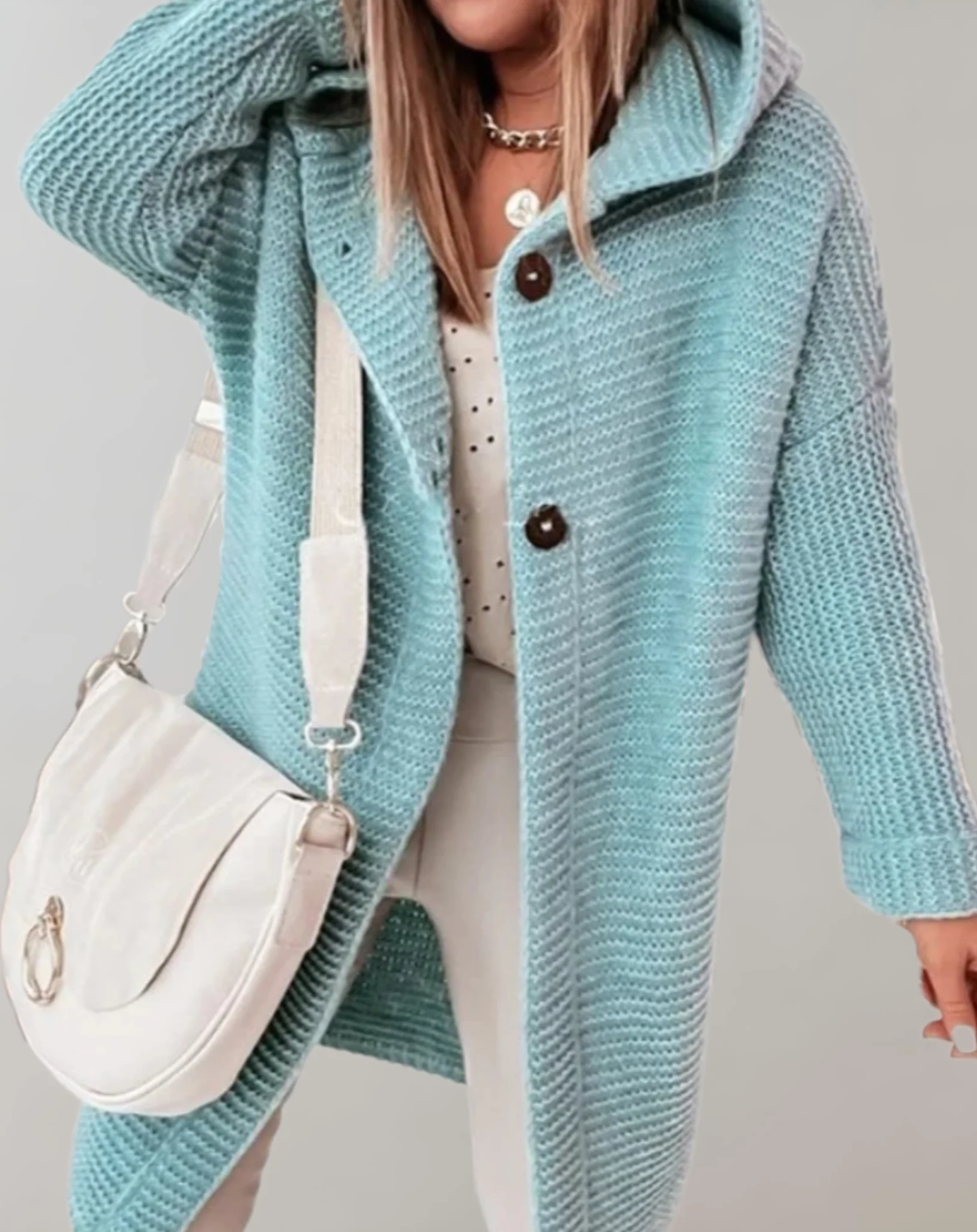 Le CocoonWrap est conçu pour offrir un confort ultime lors des journées froides. Avec sa coupe oversize et son tricot ultra-doux, il enveloppe votre corps dans une chaleur réconfortante tout en ajoutant une touche de style moderne. Les grands boutons décoratifs accentuent son look unique, parfait pour celles qui recherchent à la fois confort et élégance. C’est le choix idéal pour rester tendance sans renoncer à la praticité.