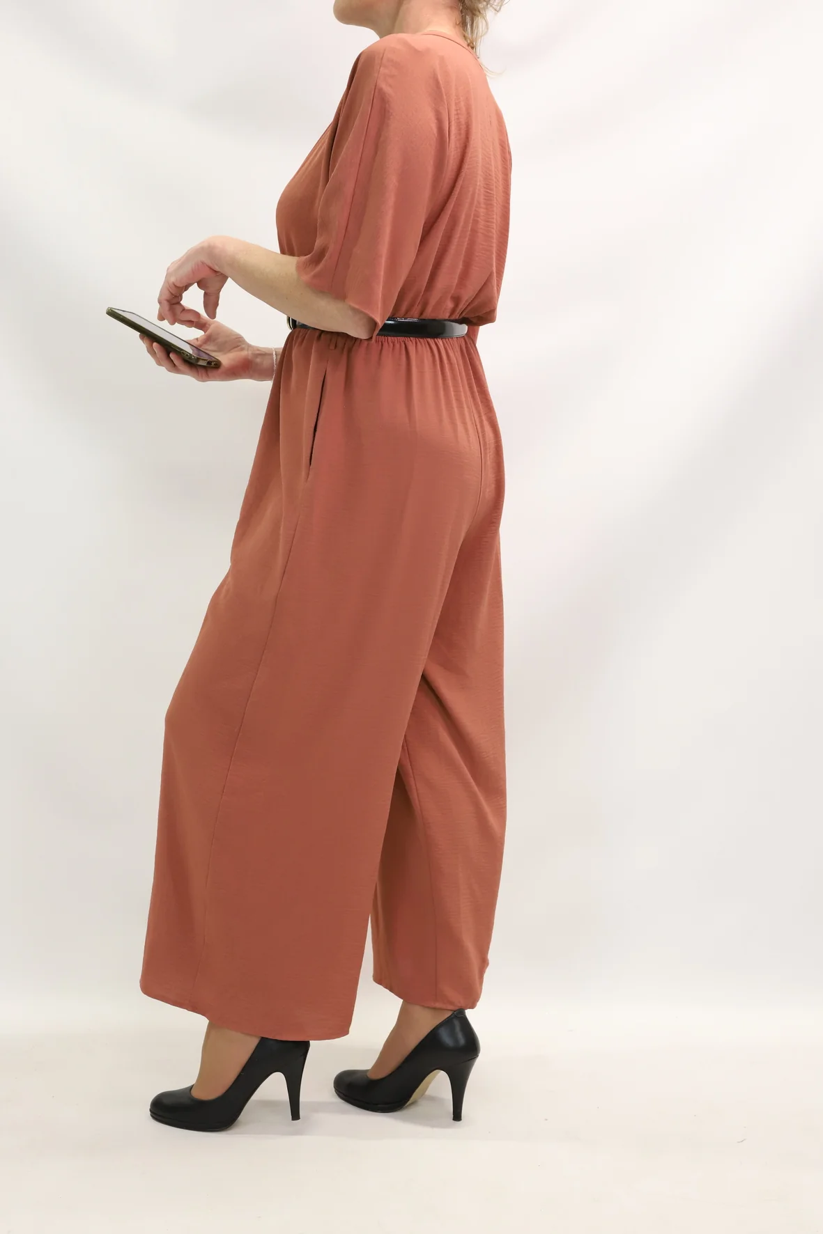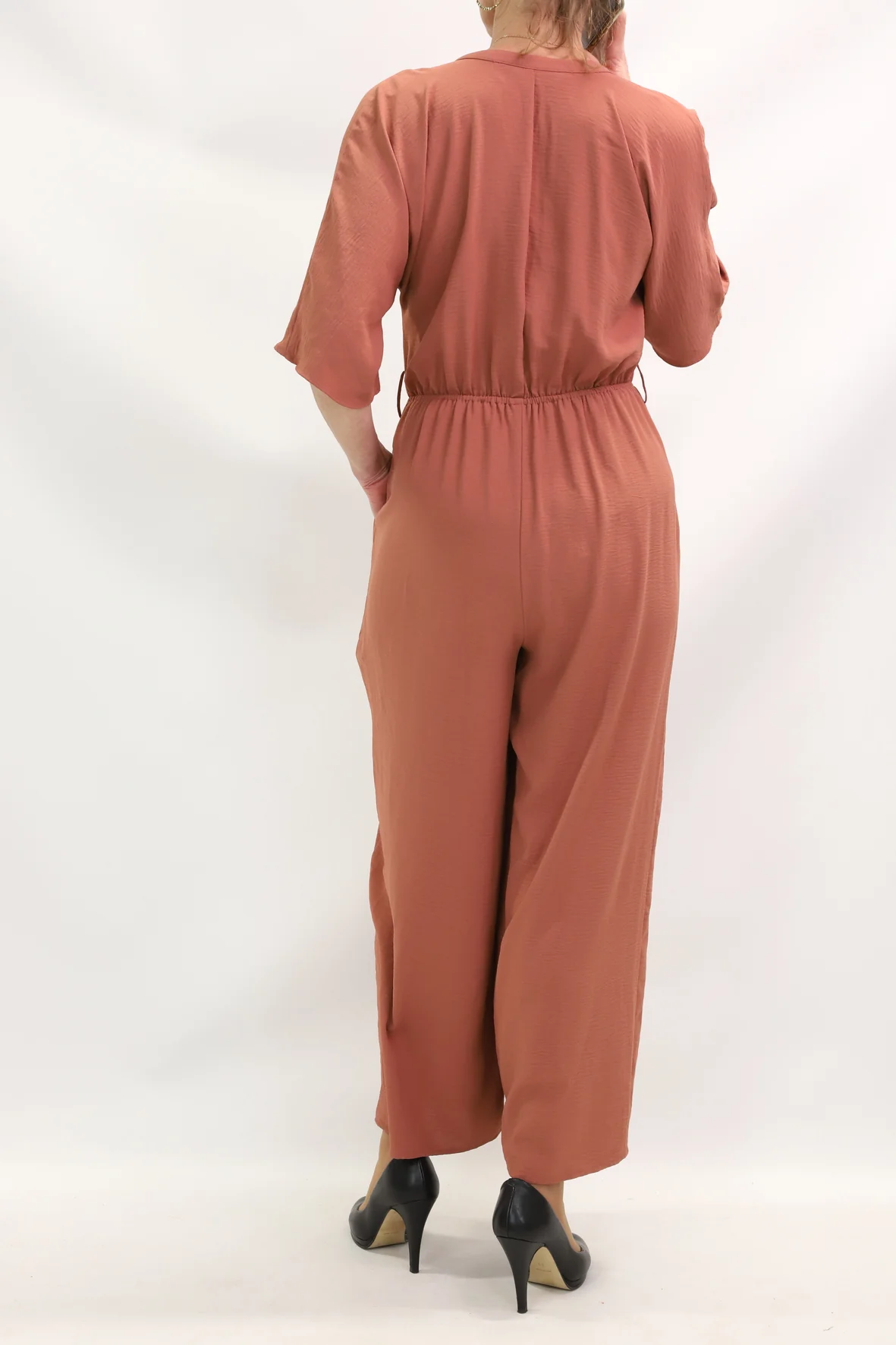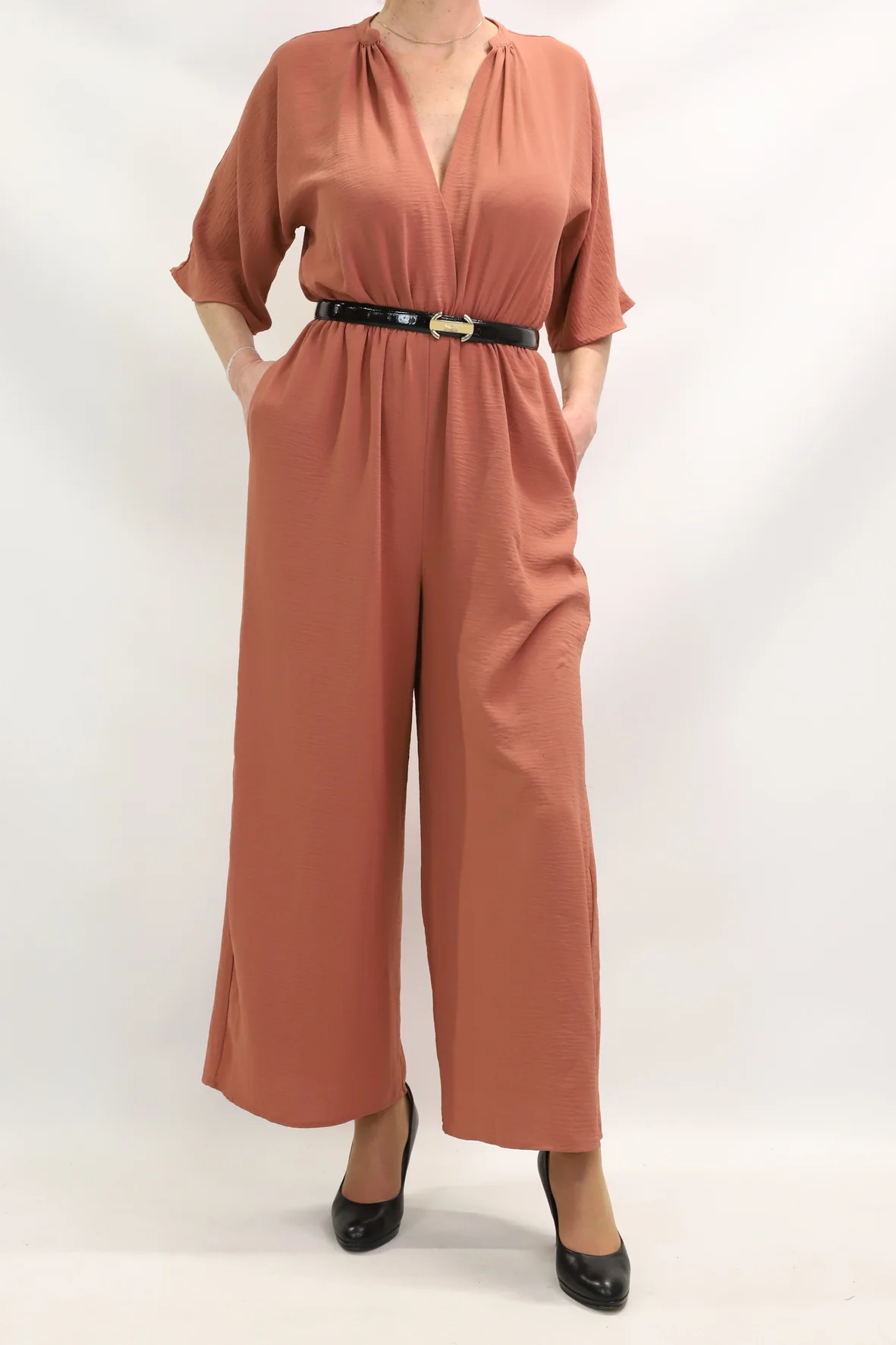 | DESCRIPTIF | Combi pantalon couleur argile rose, beau décolleté, coupe large |