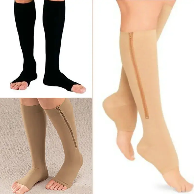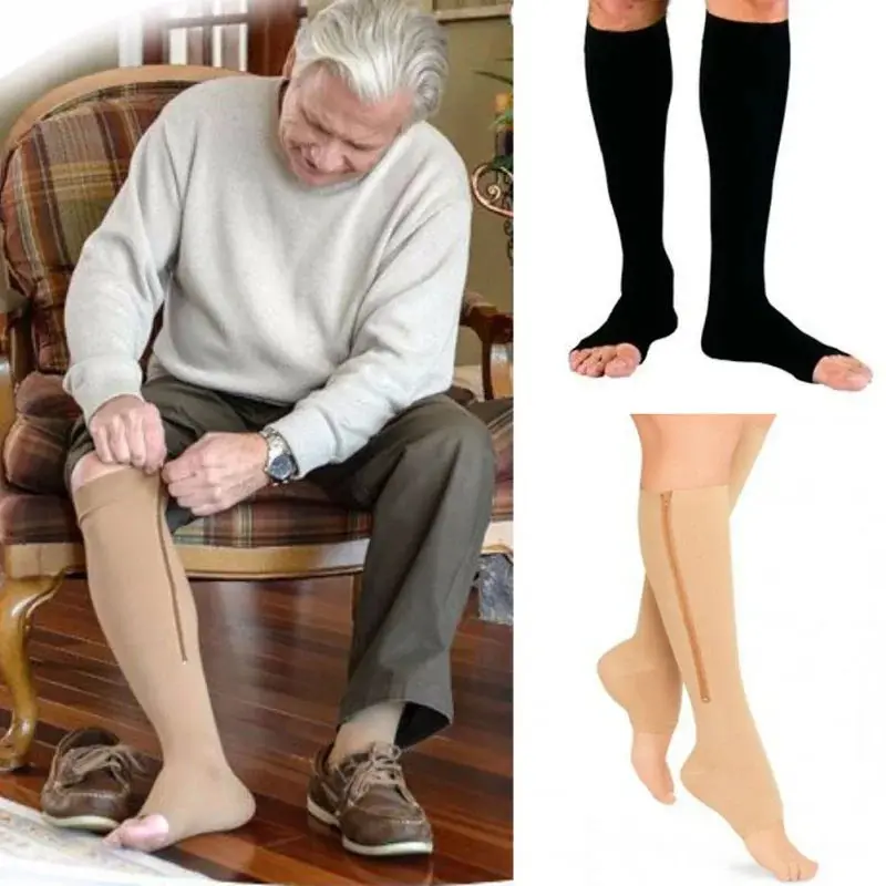 Dites adieu à la douleur et au gonflement des jambes avec les CompressioZip Chaussettes de Compression Ouvertes avec Fermeture Éclair. Recommandées par des kinésithérapeutes, ces chaussettes soulagent efficacement la douleur des jambes et des pieds, que ce soit durant la journée ou pendant votre sommeil. Offrant un soutien essentiel, elles sont idéales pour une utilisation quotidienne.