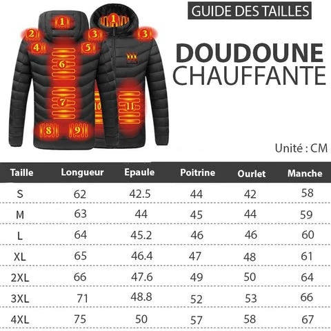 Doudoune chauffante mixte avec 11 zones de chauffe, idéale pour rester au chaud lors d