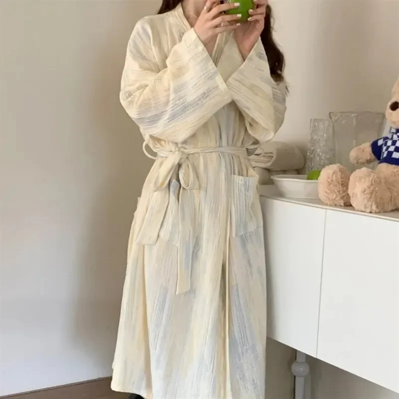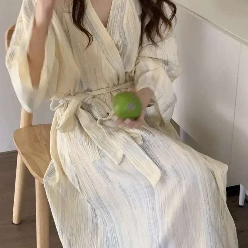 Le peignoir ÉléganceDouce est inspiré du style japonais, combinant confort et sophistication pour vos journées d’été. Avec ses manches longues et son encolure en V, ce peignoir ample et fluide offre une sensation de légèreté et une liberté de mouvement inégalée. Idéal pour des soirées paisibles à la maison ou pour vous détendre après un bain, c’est l’accessoire parfait pour les femmes qui souhaitent allier confort et style pendant la saison estivale.