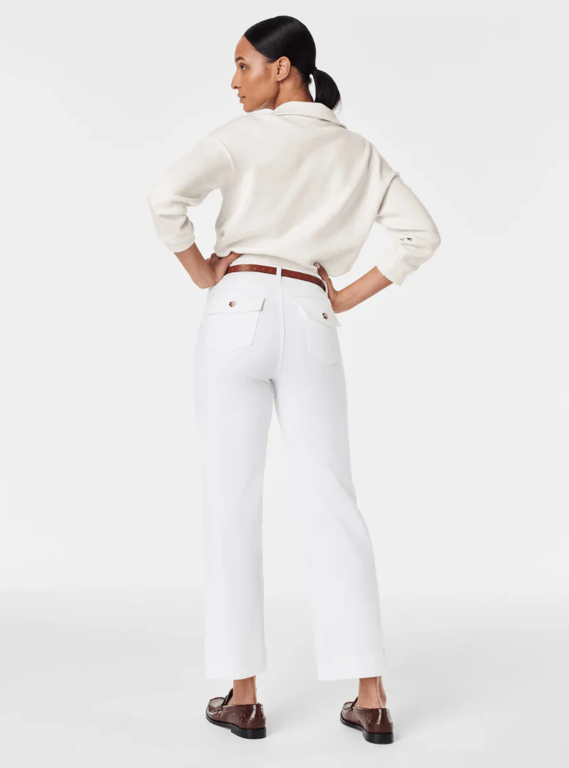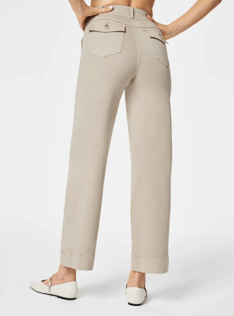 Améliorez votre style quotidien avec le pantalon croisé à jambes larges Evie Tummy Control Twill.