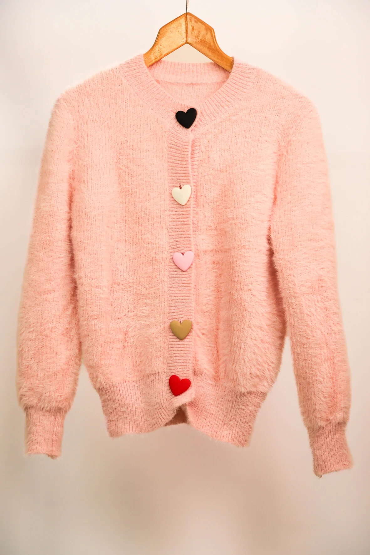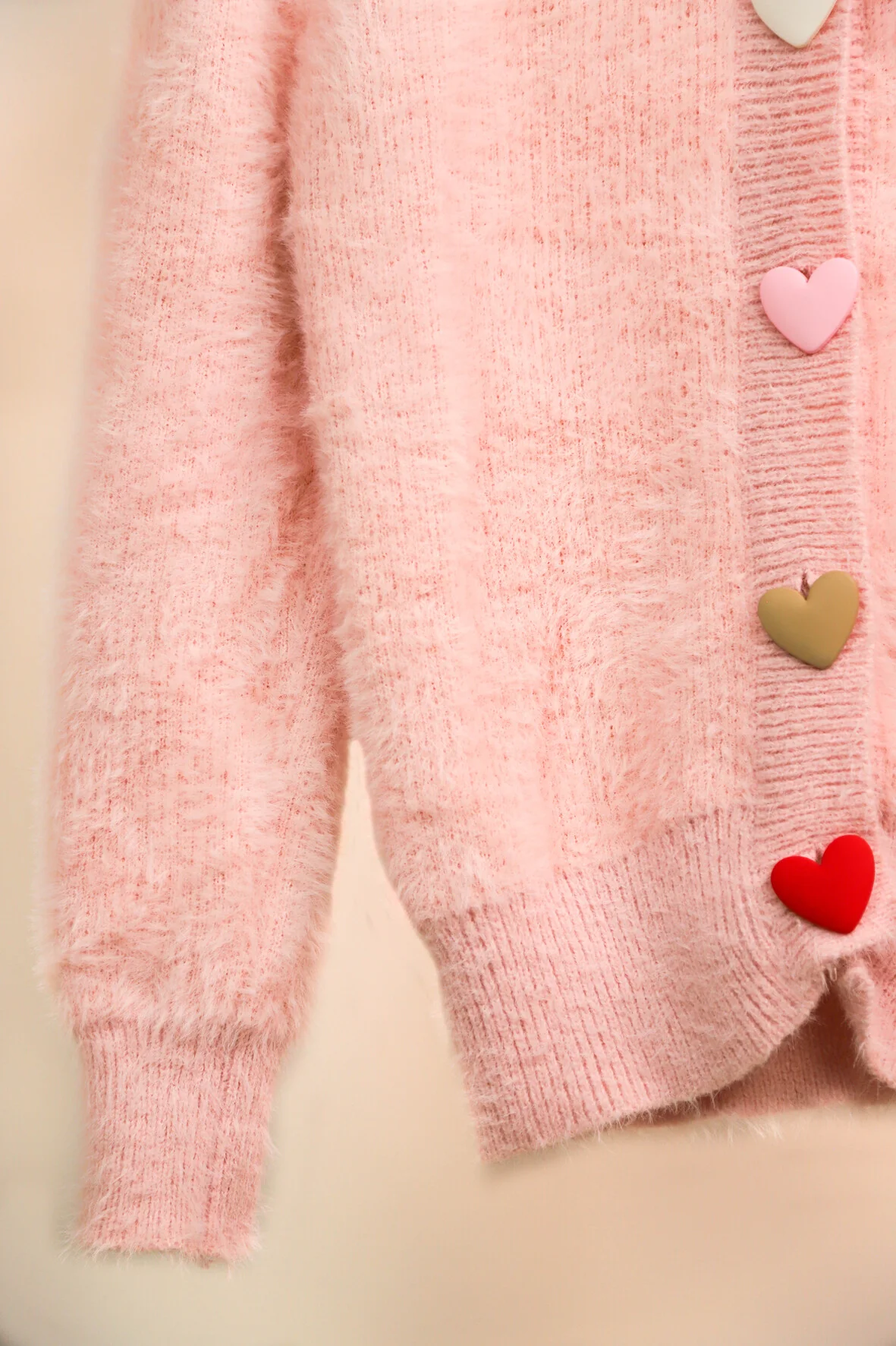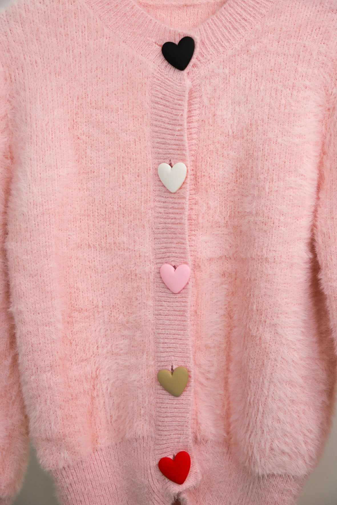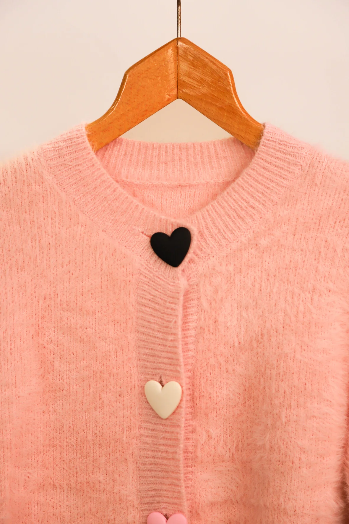DESCRIPTIF Gilet manches longues avec boutons multicolores en forme de coeur