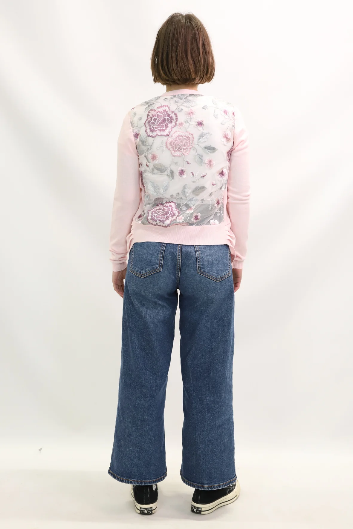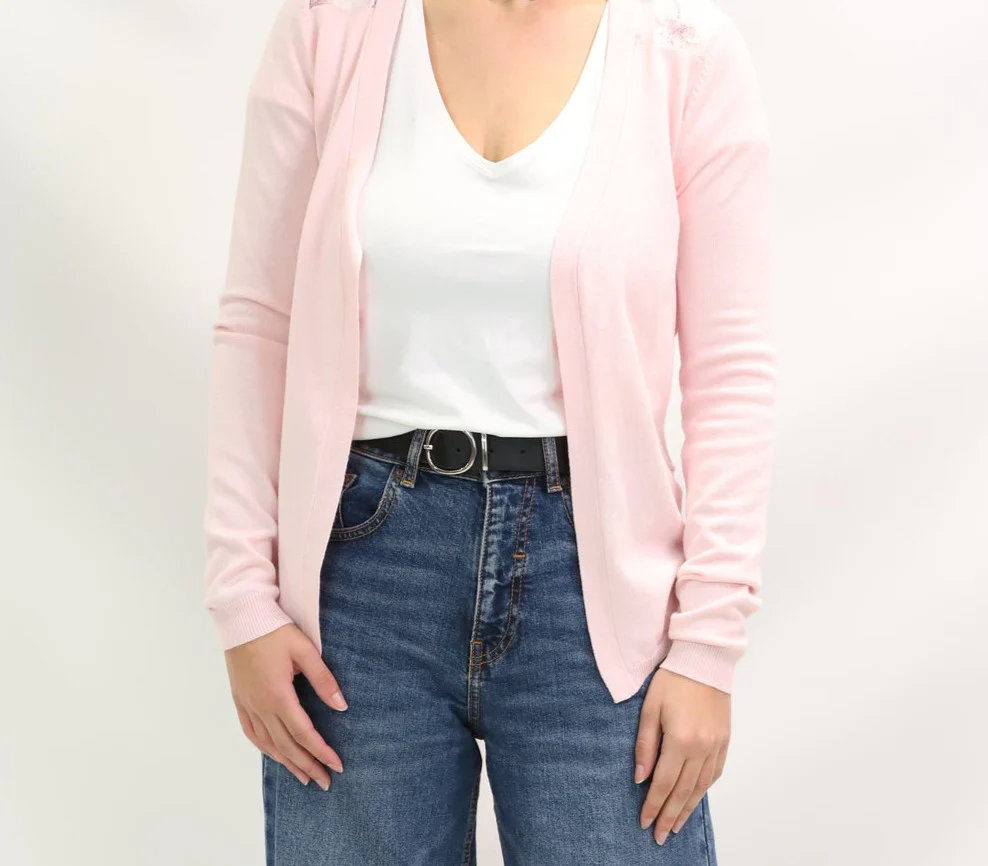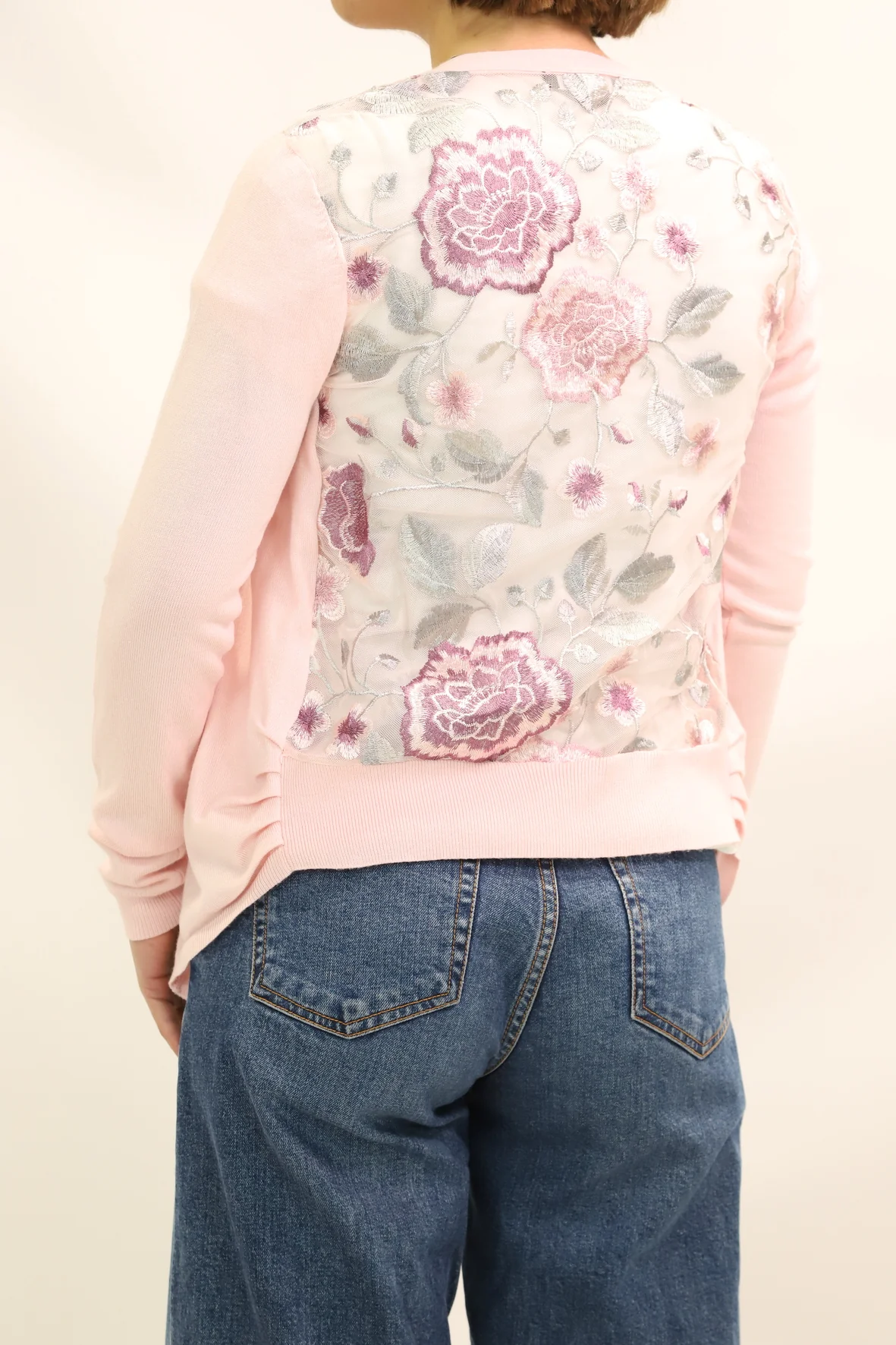 DESCRIPTIF Gilet qui se porte ouvert, transparent dans le dos brodé fleuri