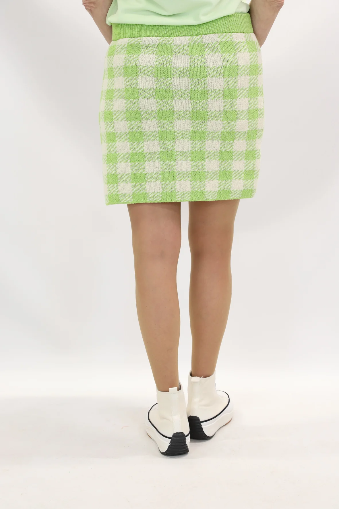 Jupe courte en maille, fausses poches devant avec boutons, taille élastiquée