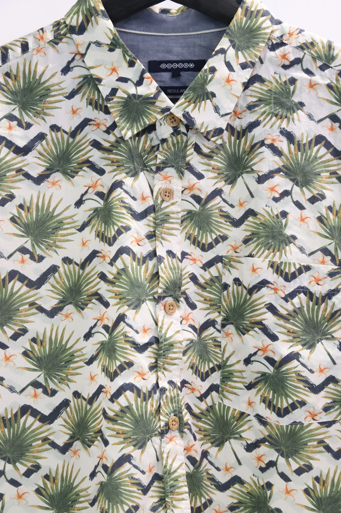 | DESCRIPTIF | Chemise manches courtes, imprimé feuilles de palmier |