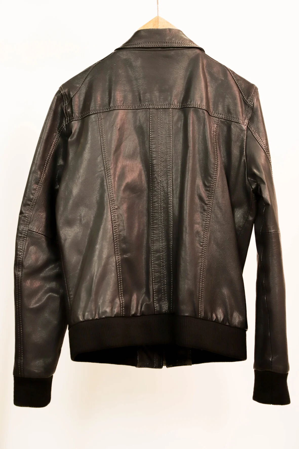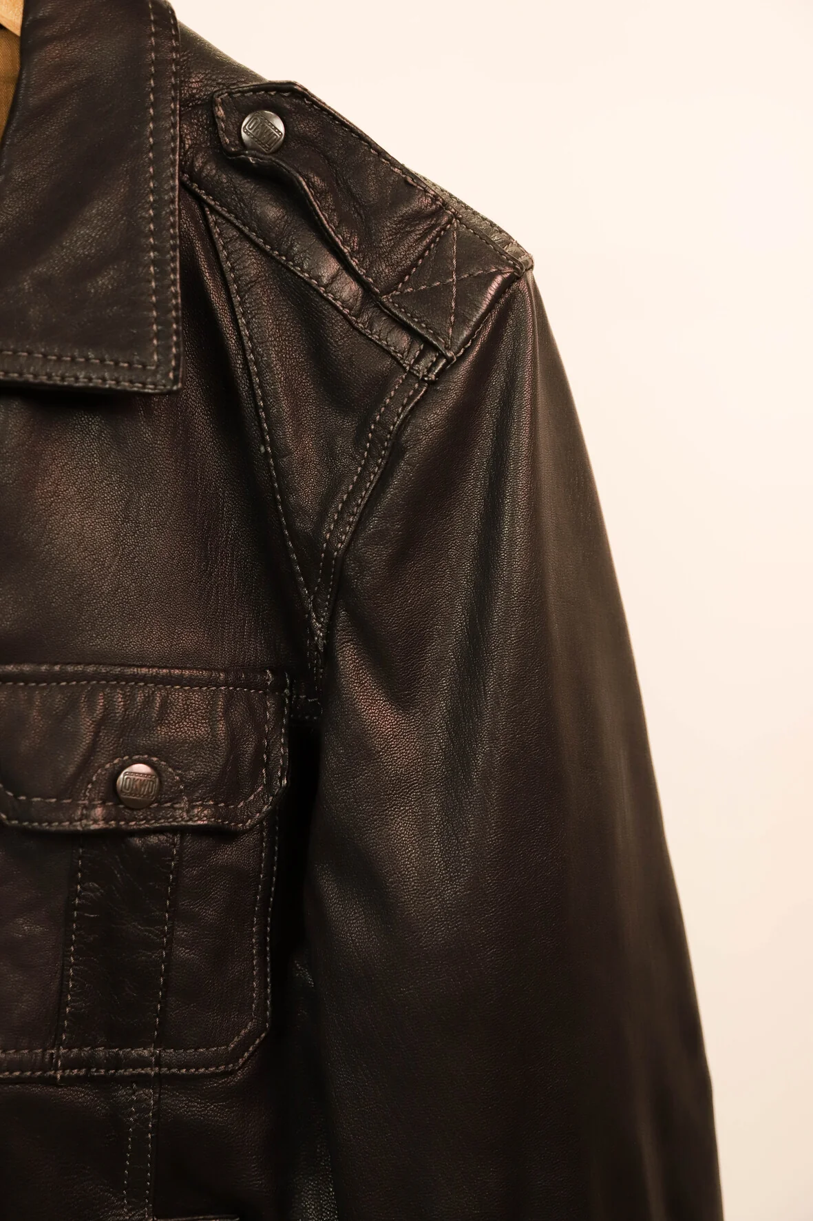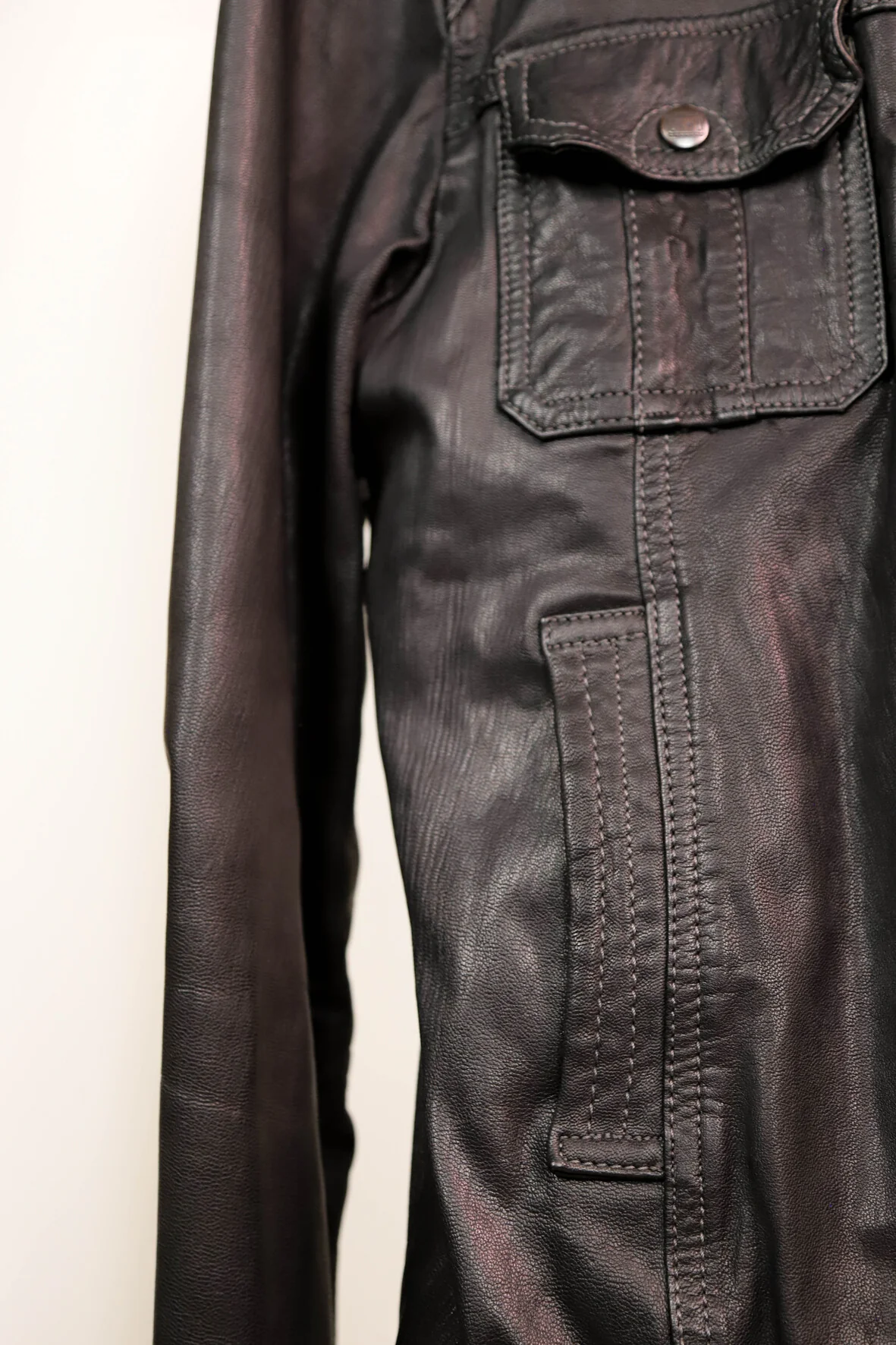 DESCRIPTIF Blouson en cuir avec quatre poches extérieures et trois poches intérieures