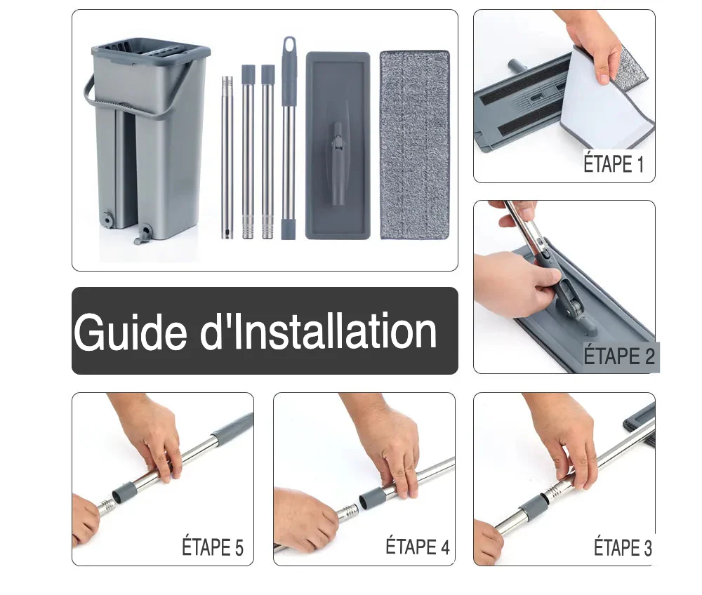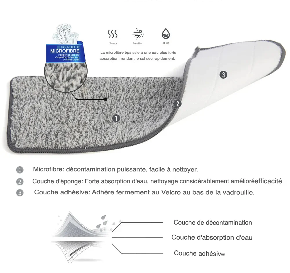 Équipée de chiffons en microfibre ultra performants, notre serpillière est spécifiquement conçue pour déloger efficacement la saleté, la poussière et les taches sur toutes vos surfaces. Ces chiffons performants assurent un nettoyage en profondeur, laissant vos sols d’une propreté et d’une brillance sans égal.