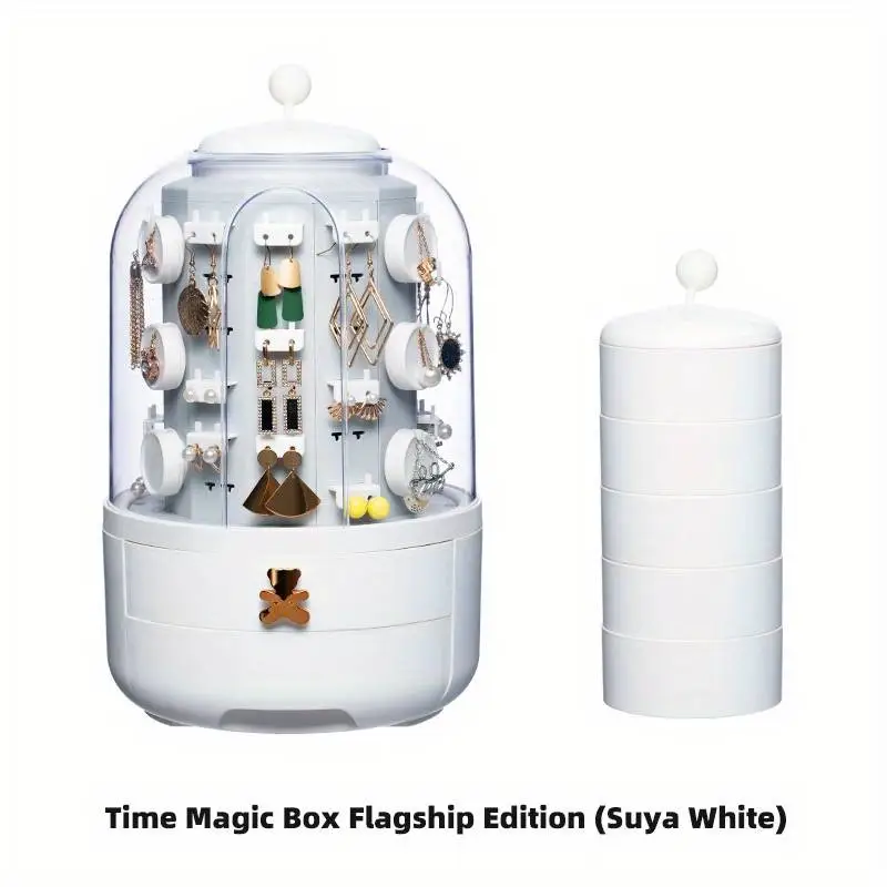 Organisateur de bijoux rotatif en or, avec 5 tiroirs et design unique pour un rangement pratique et élégant.