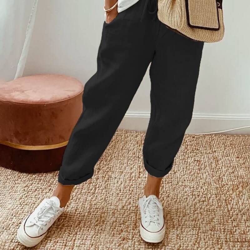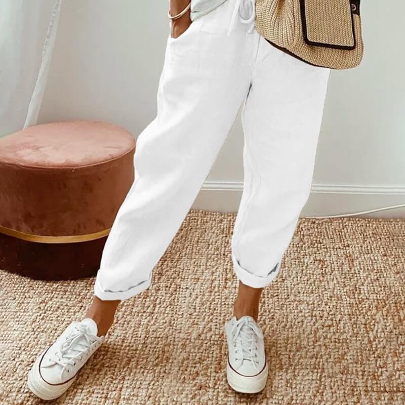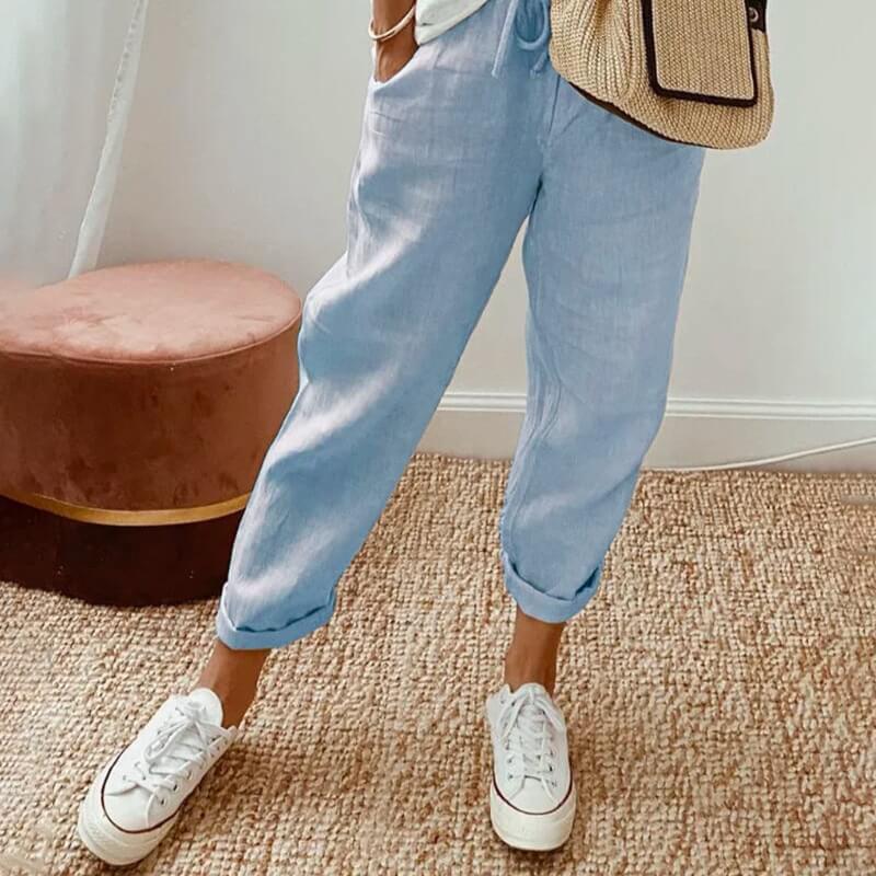 Confectionné à partir d’un lin de qualité supérieure, à la fois respirant et doux, ce pantalon n’est pas seulement esthétique, mais un véritable plaisir à porter. Idéal pour les journées ensoleillées, il deviendra rapidement ton meilleur atout pour afficher ta couleur sans transpirer.