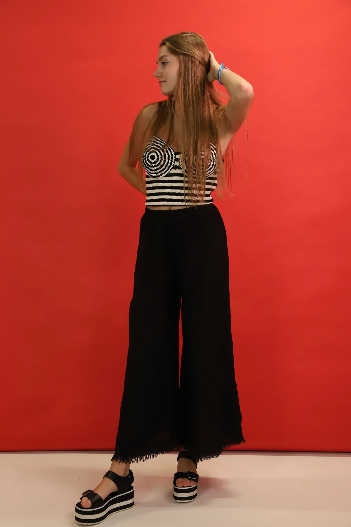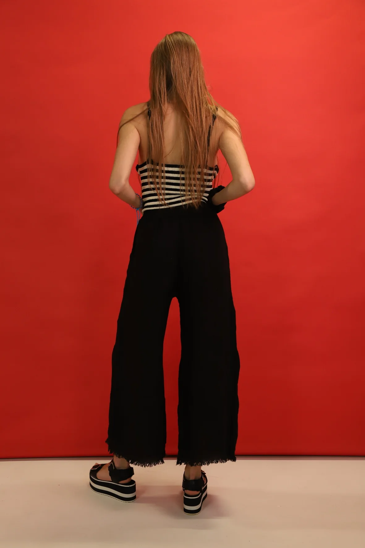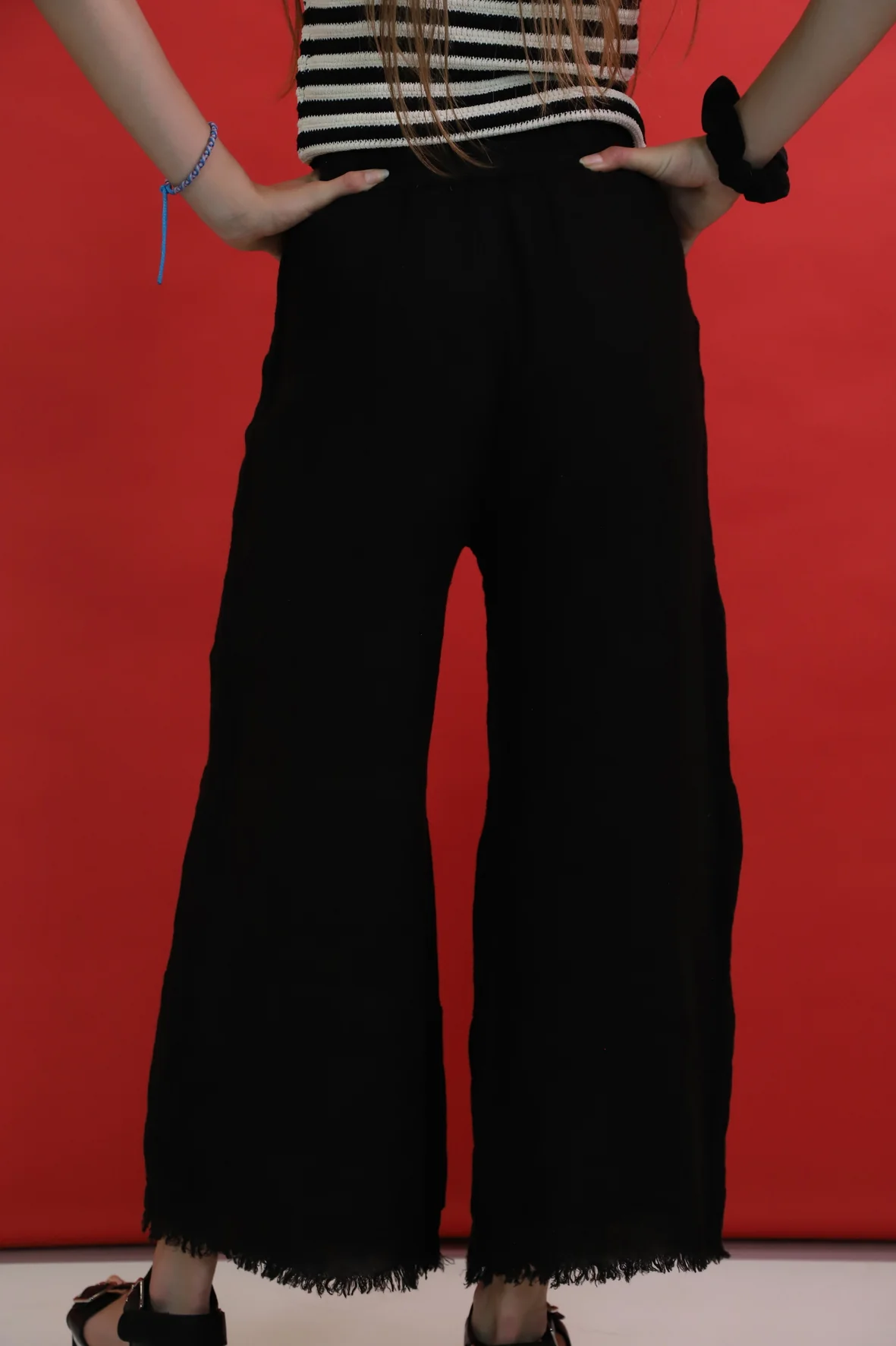 DESCRIPTIF Pantalon avec franges en bas des jambes