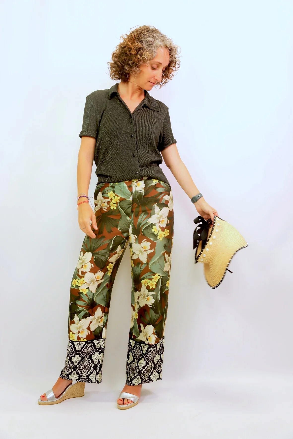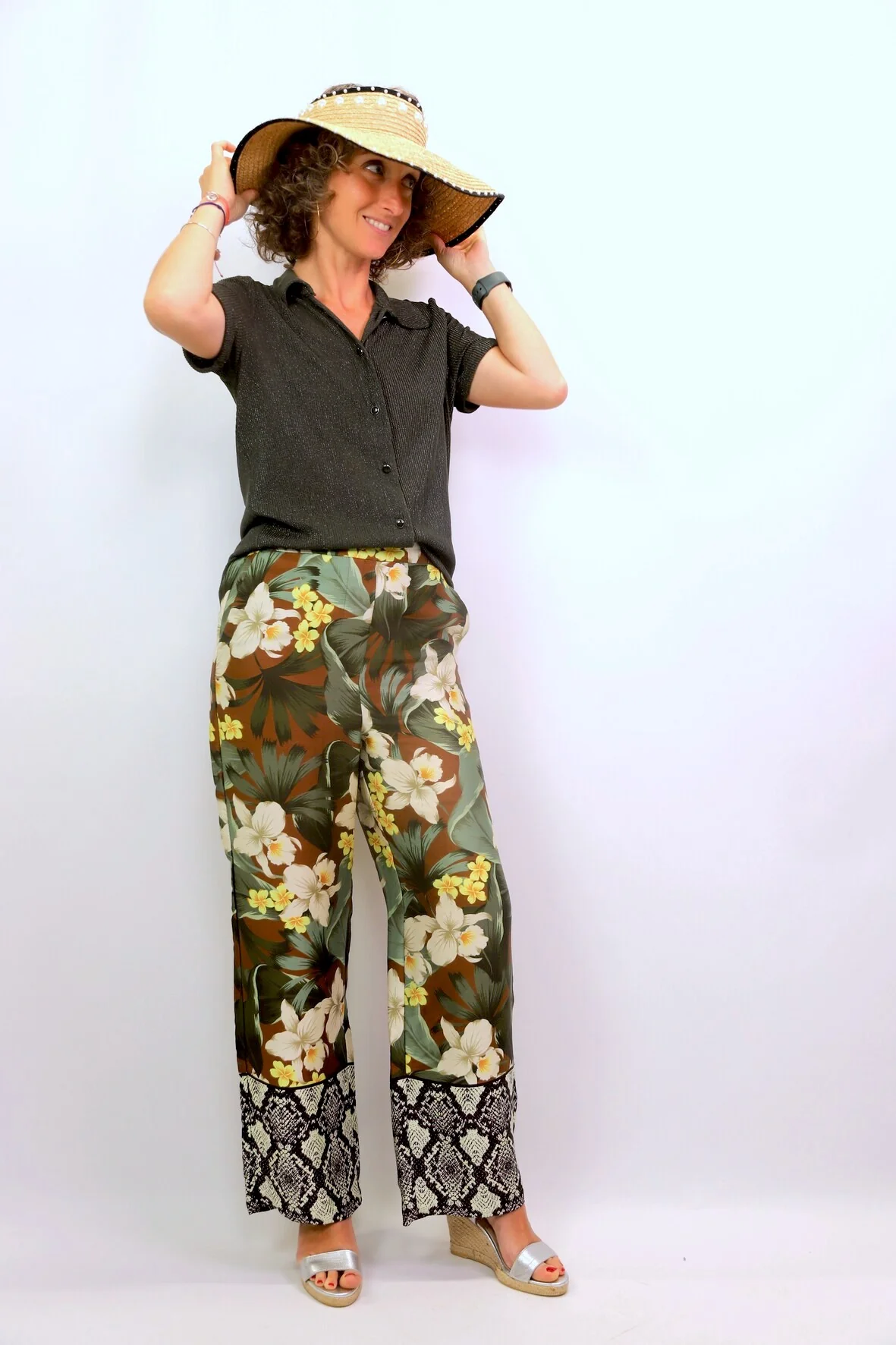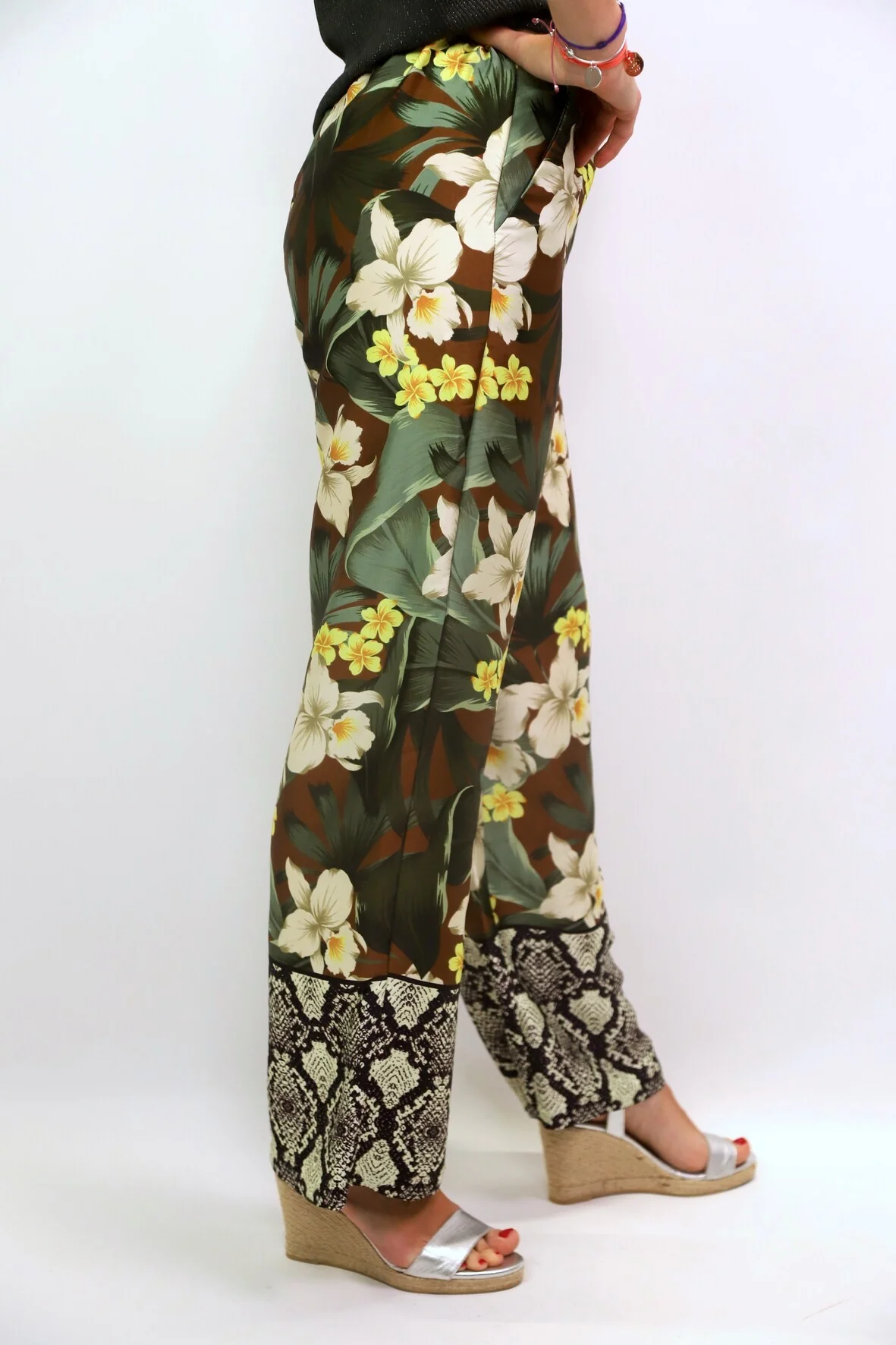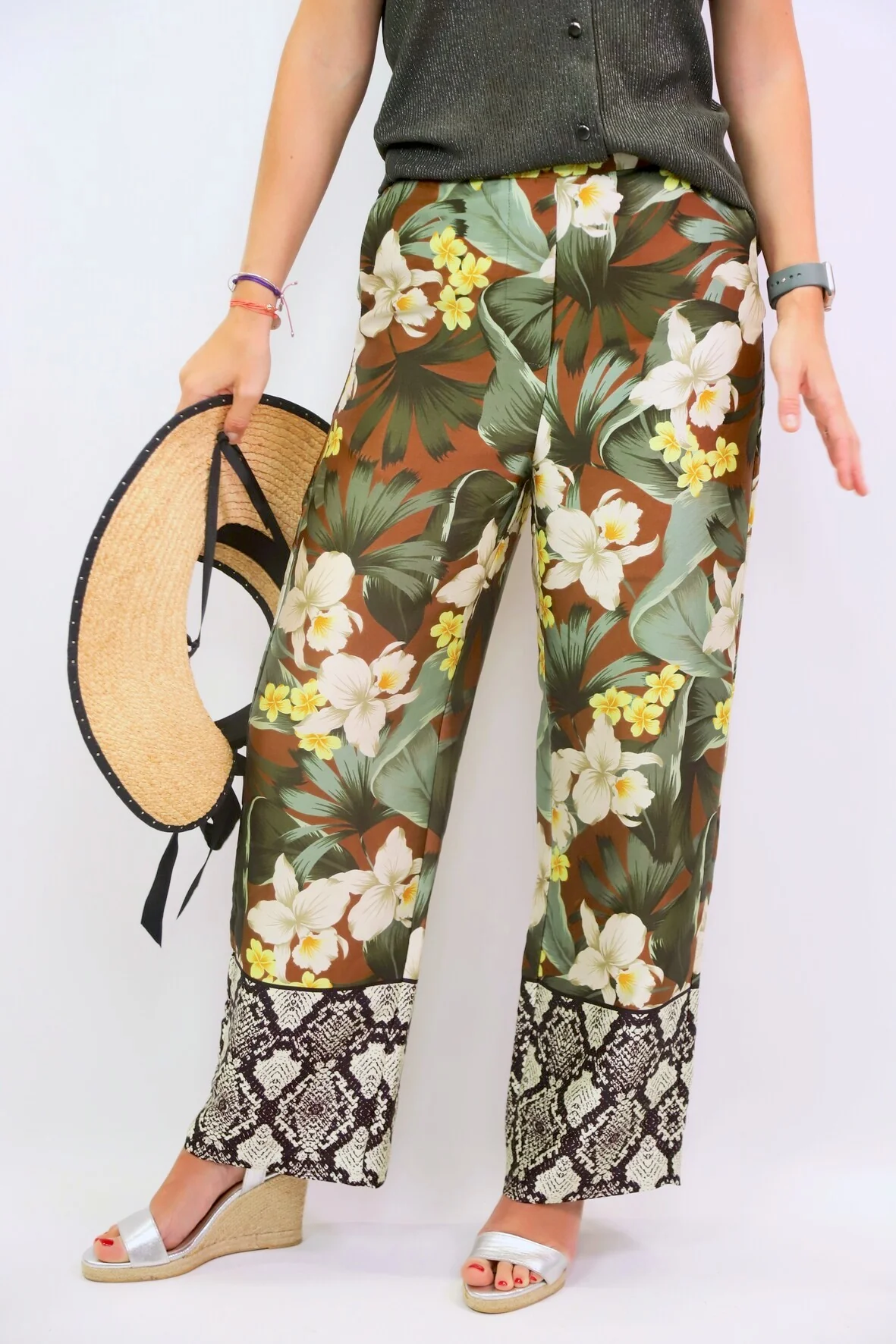 DESCRIPTIF Pantalon fluide avec motif floral, imprimé reptile en bas
