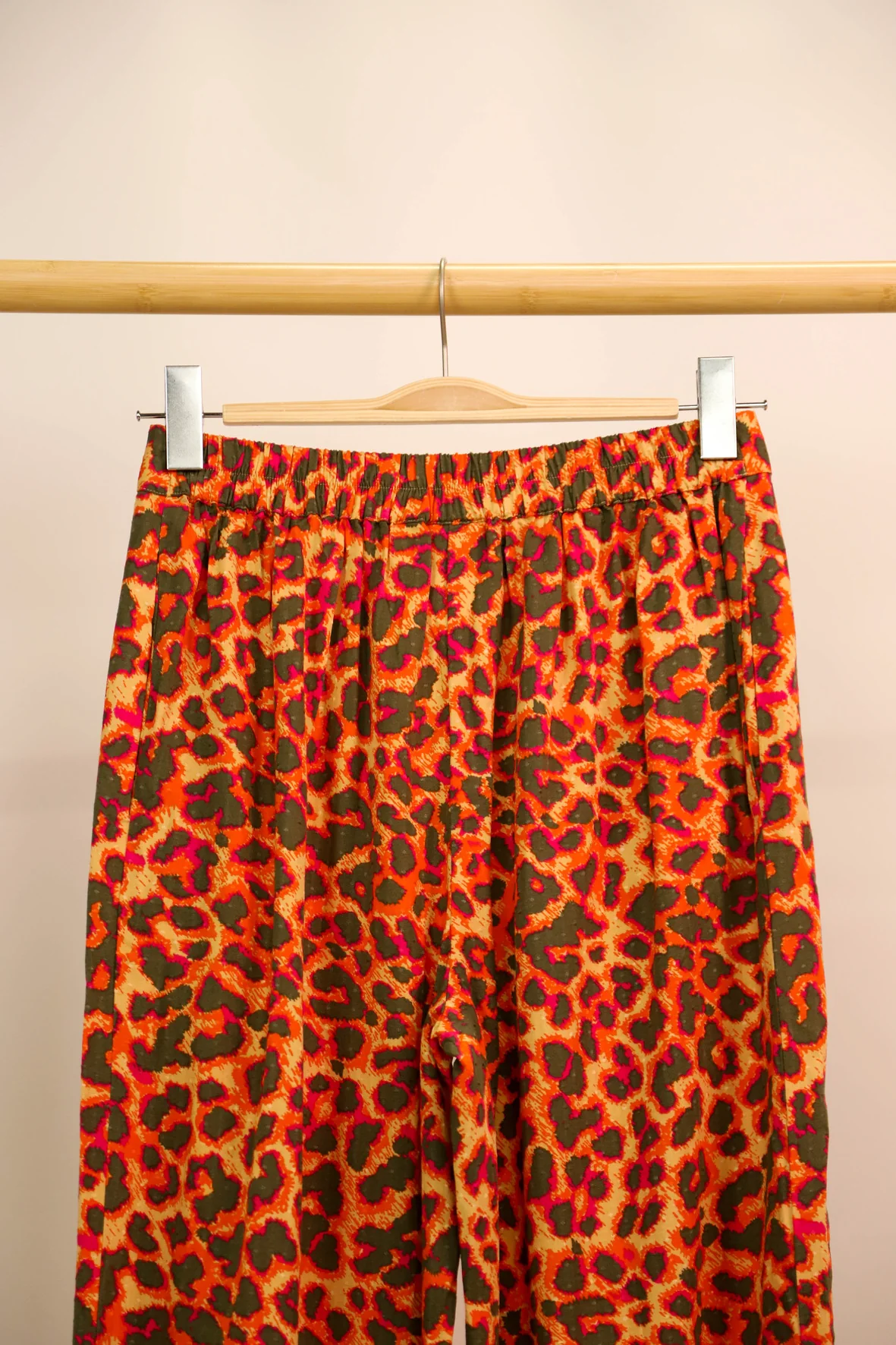 | DESCRIPTIF | Pantalon fluide motif léopard , taille elastique, poches latérales |
