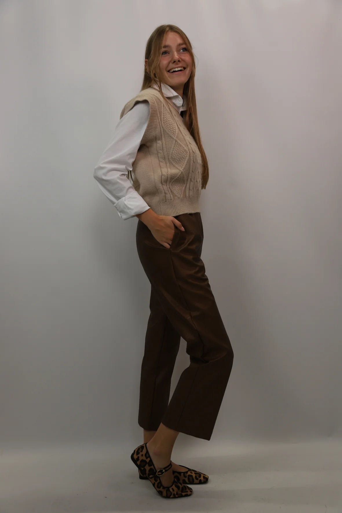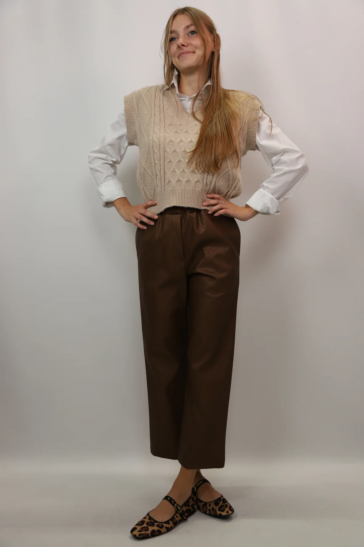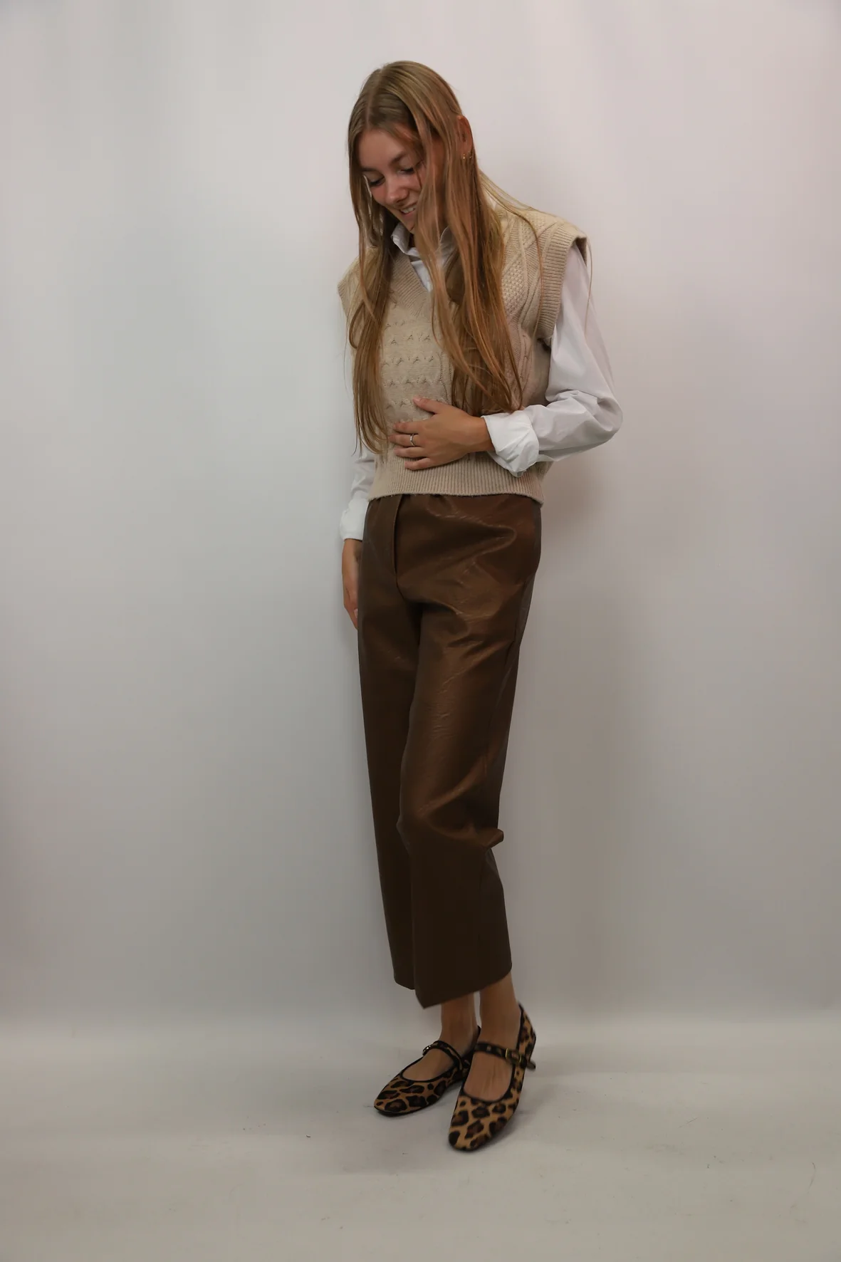 Pantalon souple simili cuir marron, Charming Girl, Taille S