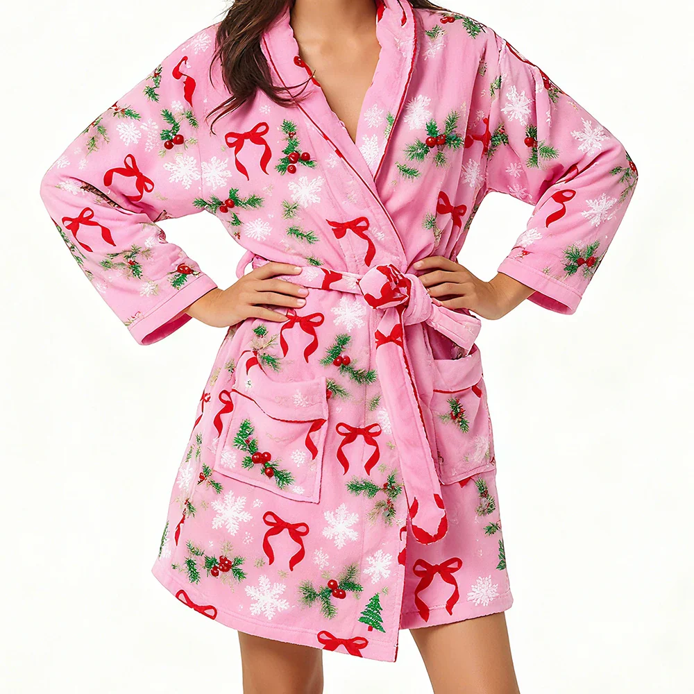 Entrez dans la magie de Noël avec ce Peignoir Xmas pour Femme en Polyester. Décoré de motifs festifs, ce Peignoir vous enveloppe de douceur et de confort pour célébrer les fêtes avec style.