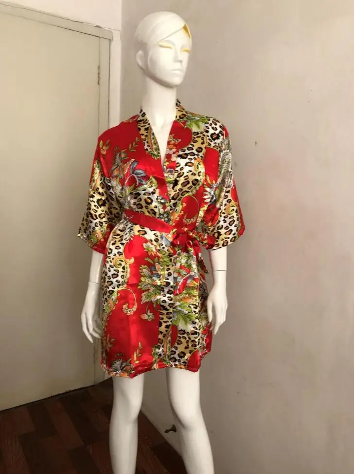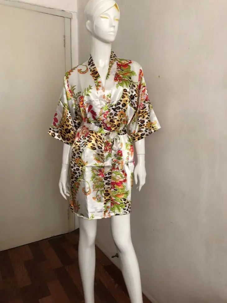 Peignoir Court Satin Imitation Soie Rayon/Polyester pour Femme
