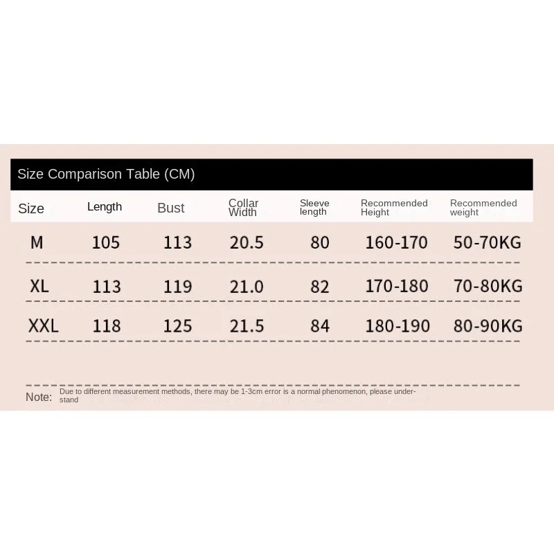 | Taille | Longueur (cm) | Tour de poitrine (cm) | Largeur du col (cm) | Longueur des manches (cm) | Taille conseillée (cm) | Poids conseillé (kg) |
