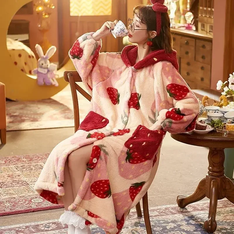 Peignoir Flanelle motifs Fraise en Polyester pour Femme