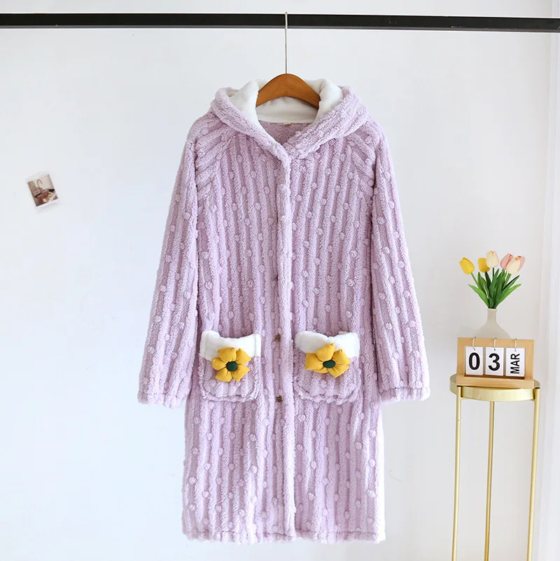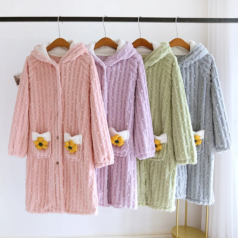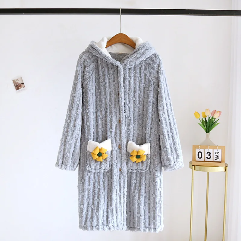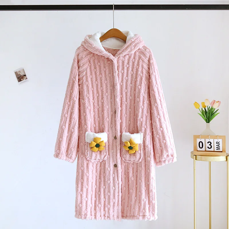 Peignoir flanelle et polaire corail motifs Fleurs pour Femme