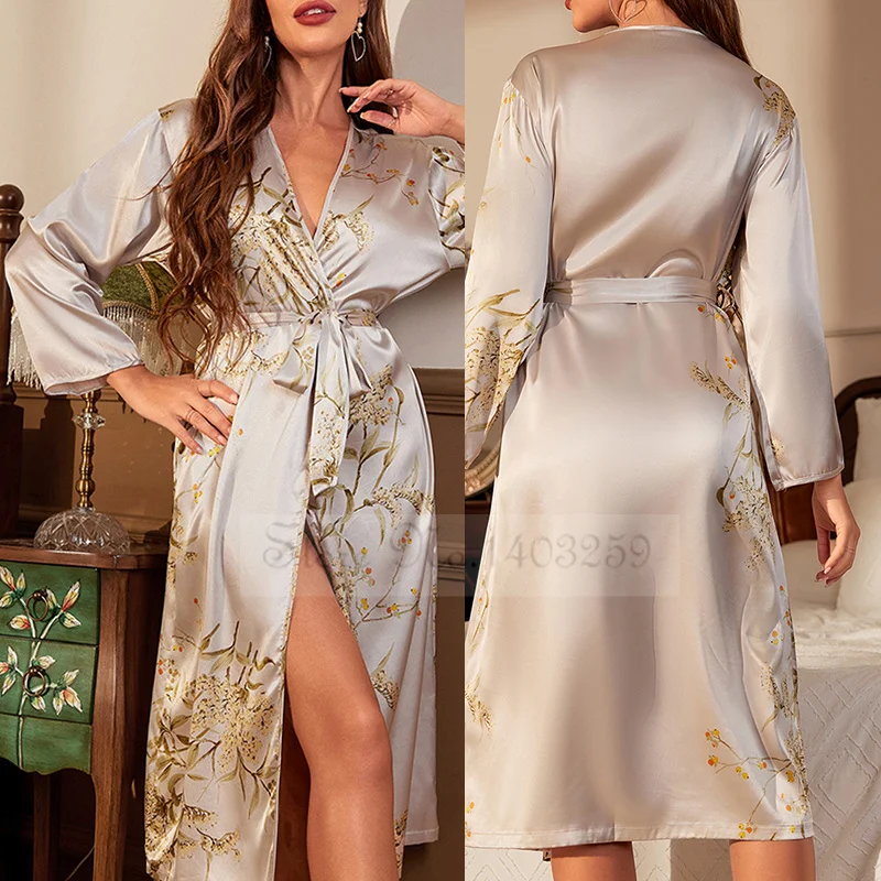 Peignoir Satin Long en Polyester/Rayon/Imitation Soie pour Femme