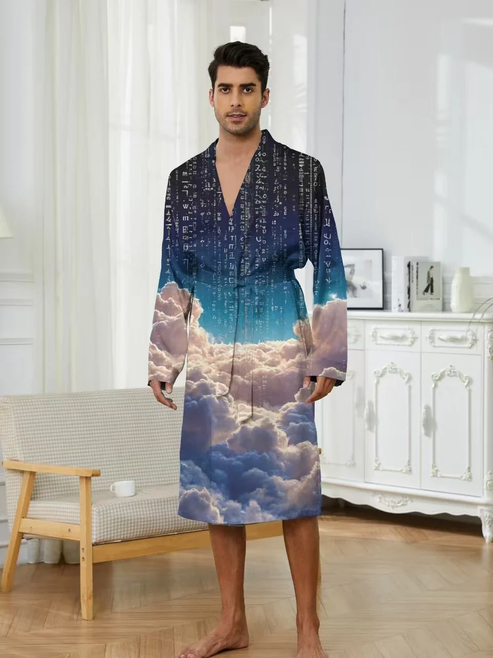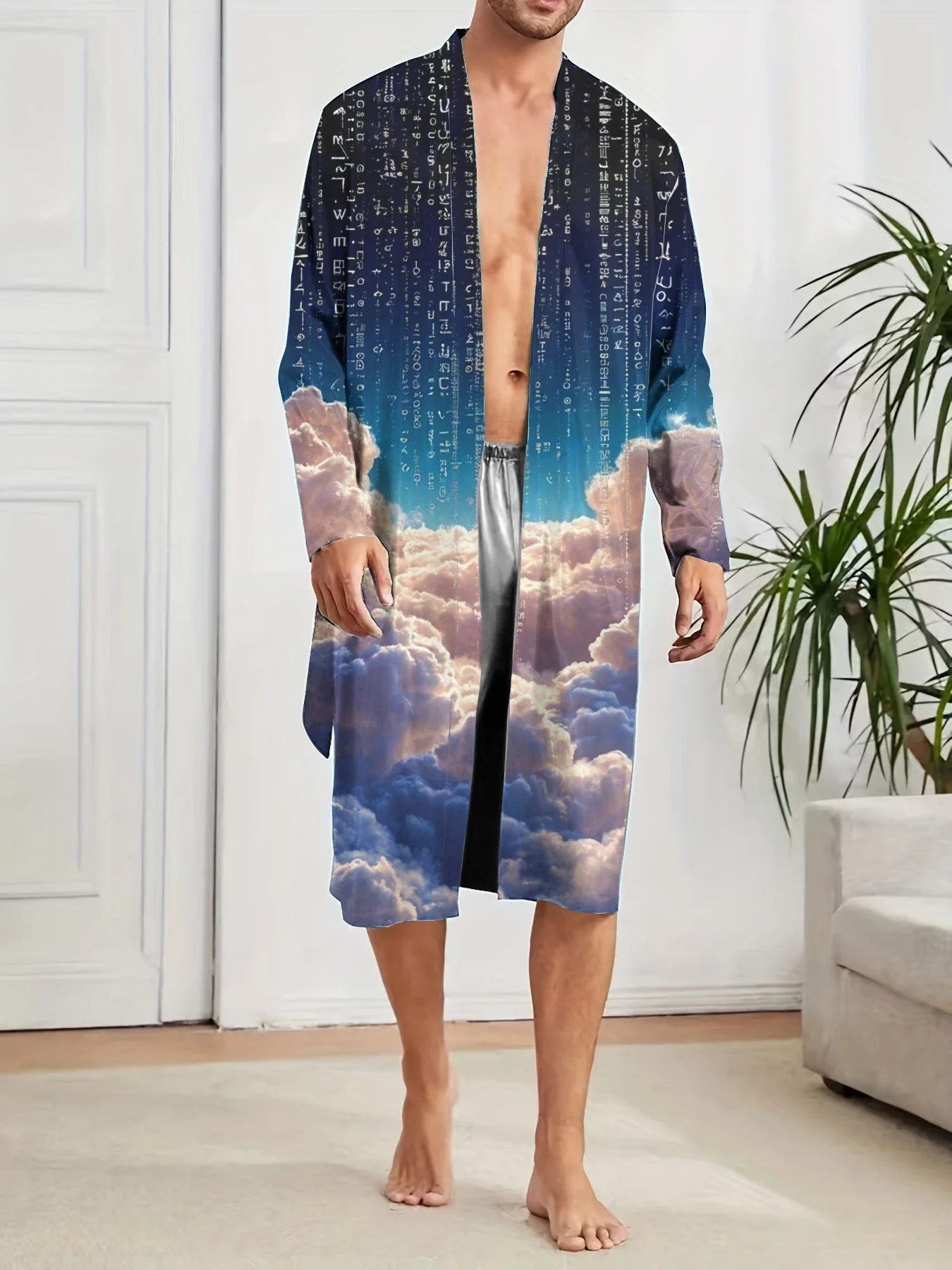 Peignoir Printemps/Automne Imprimé Ciel pour Homme en Polyester