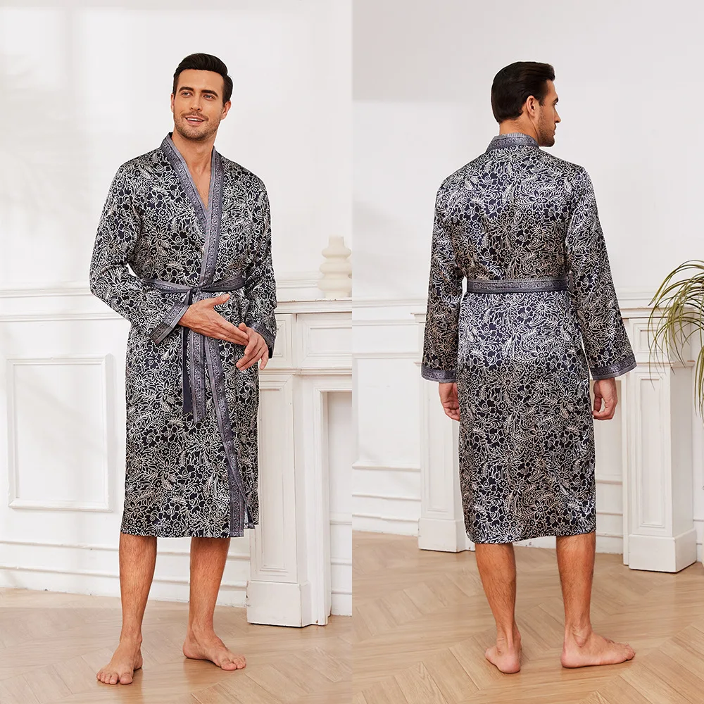 Peignoir Satin Imprimé en Polyester/Rayon pour Homme