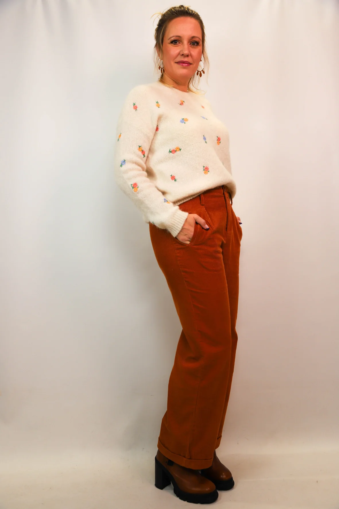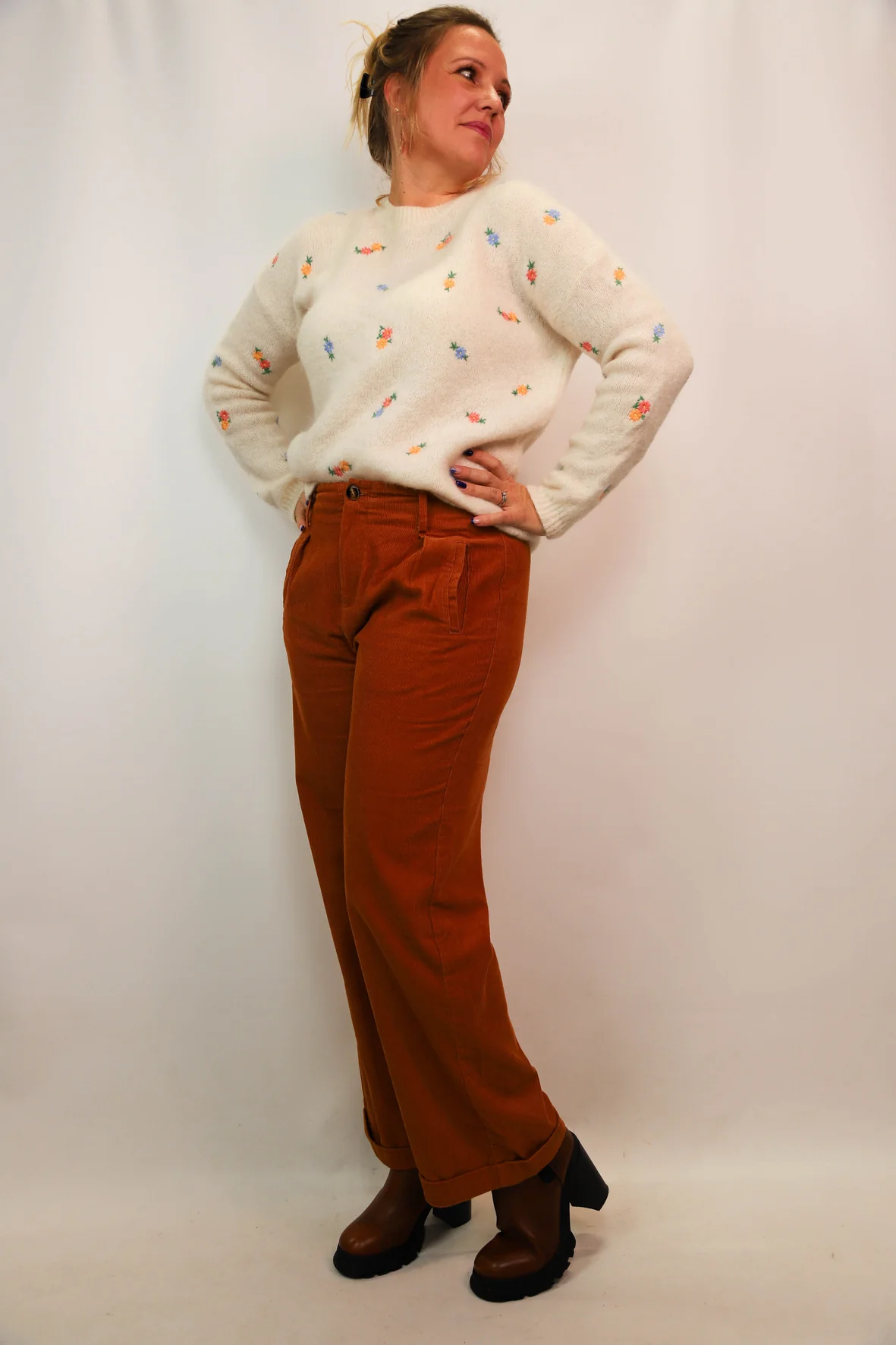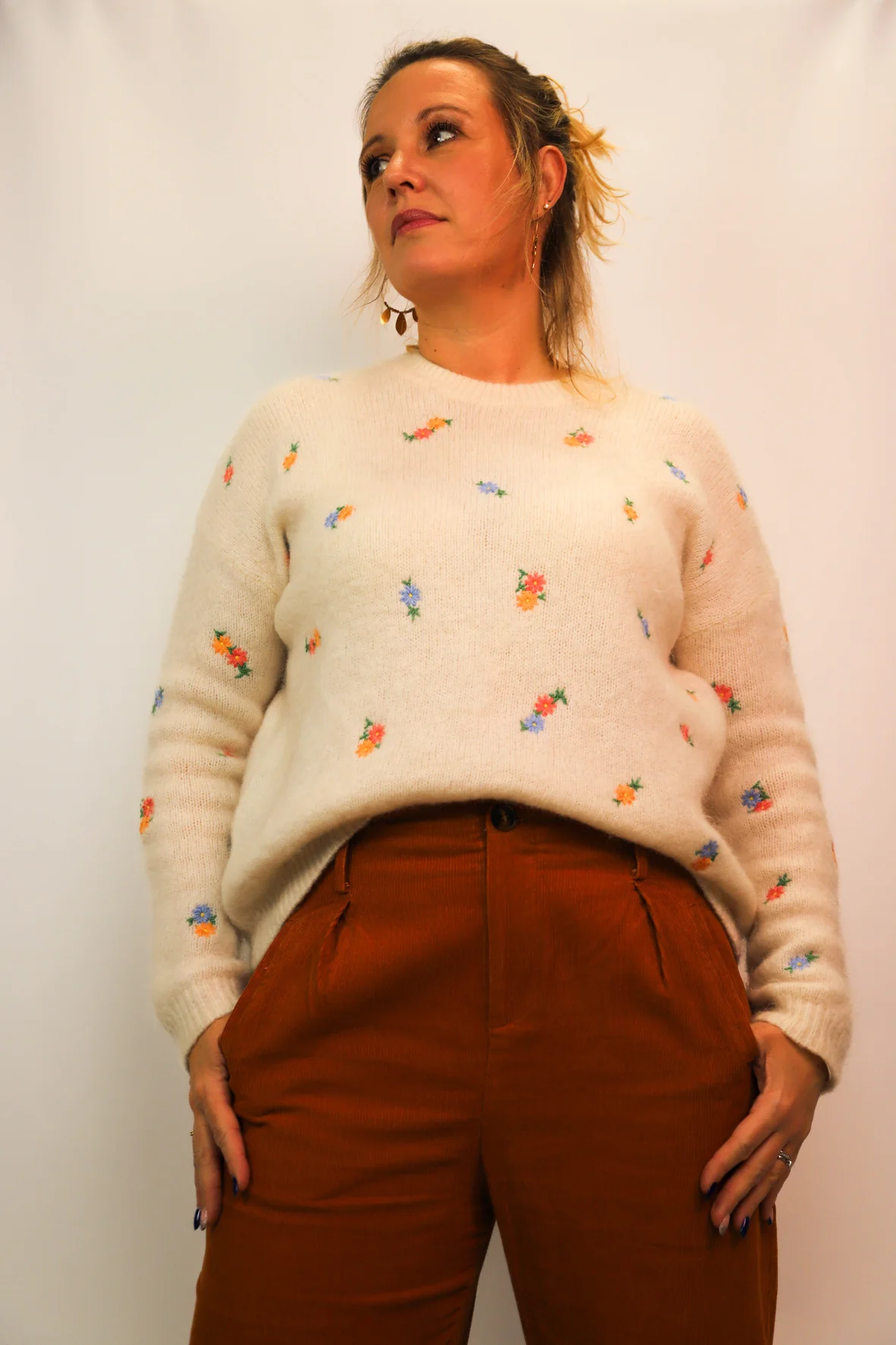 | DESCRIPTIF | Pull avec petites fleurs de couleurs brodées |