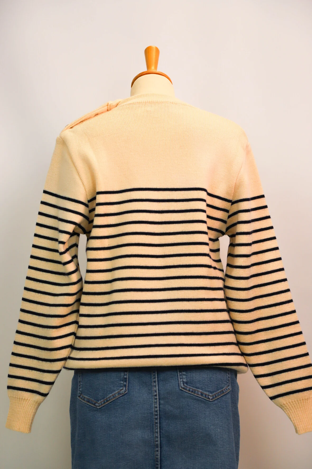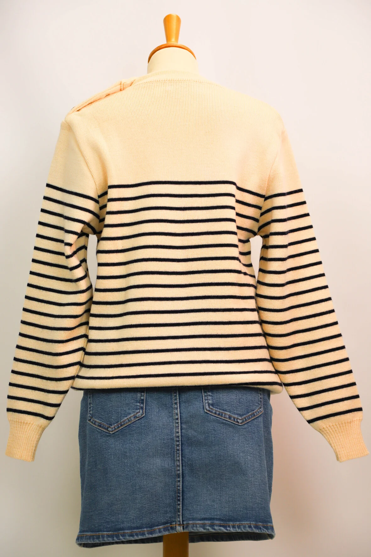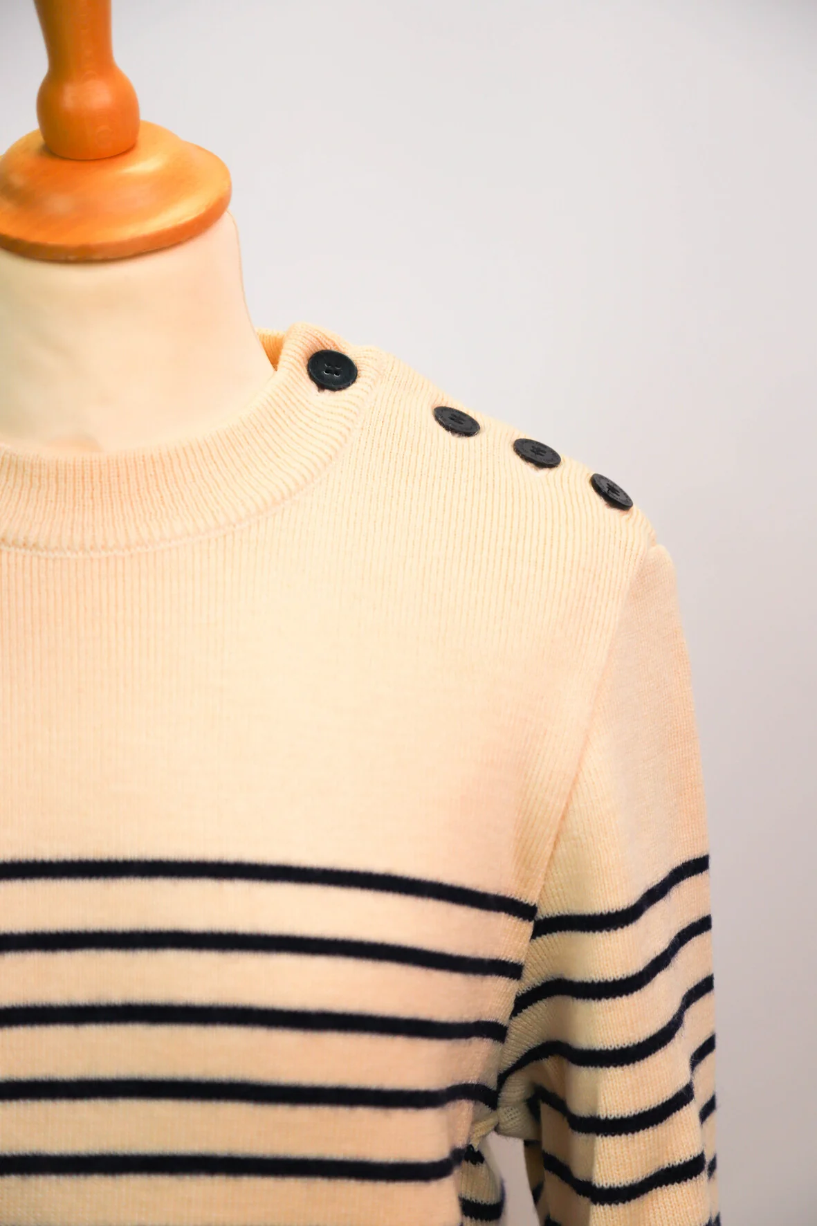 DESCRIPTIF Pull marin avec quatre boutons sur le col