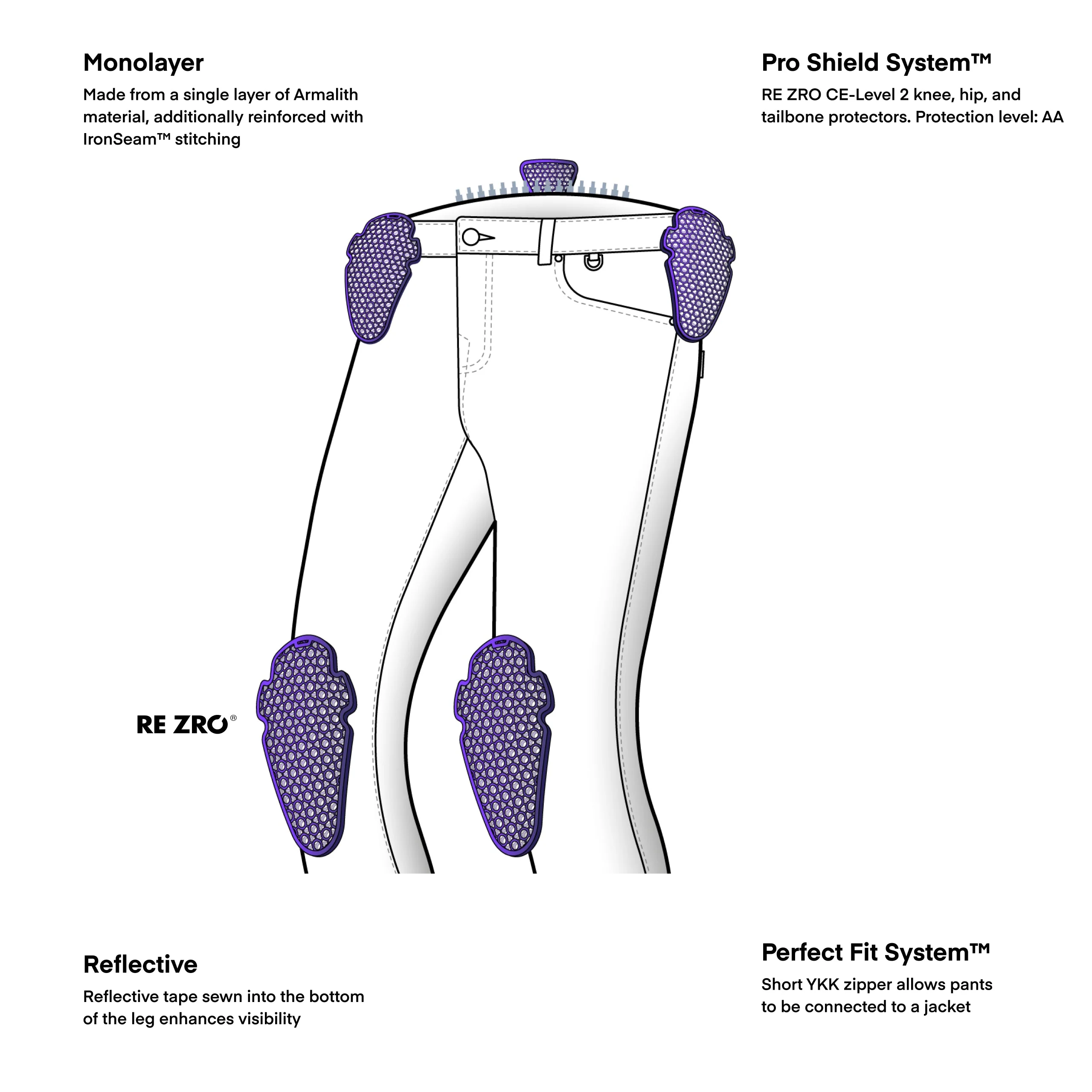 Les jeans Rebelhorn Bronco sont équipés de protections RE ZRO® modernes, avancées et biodégradables.