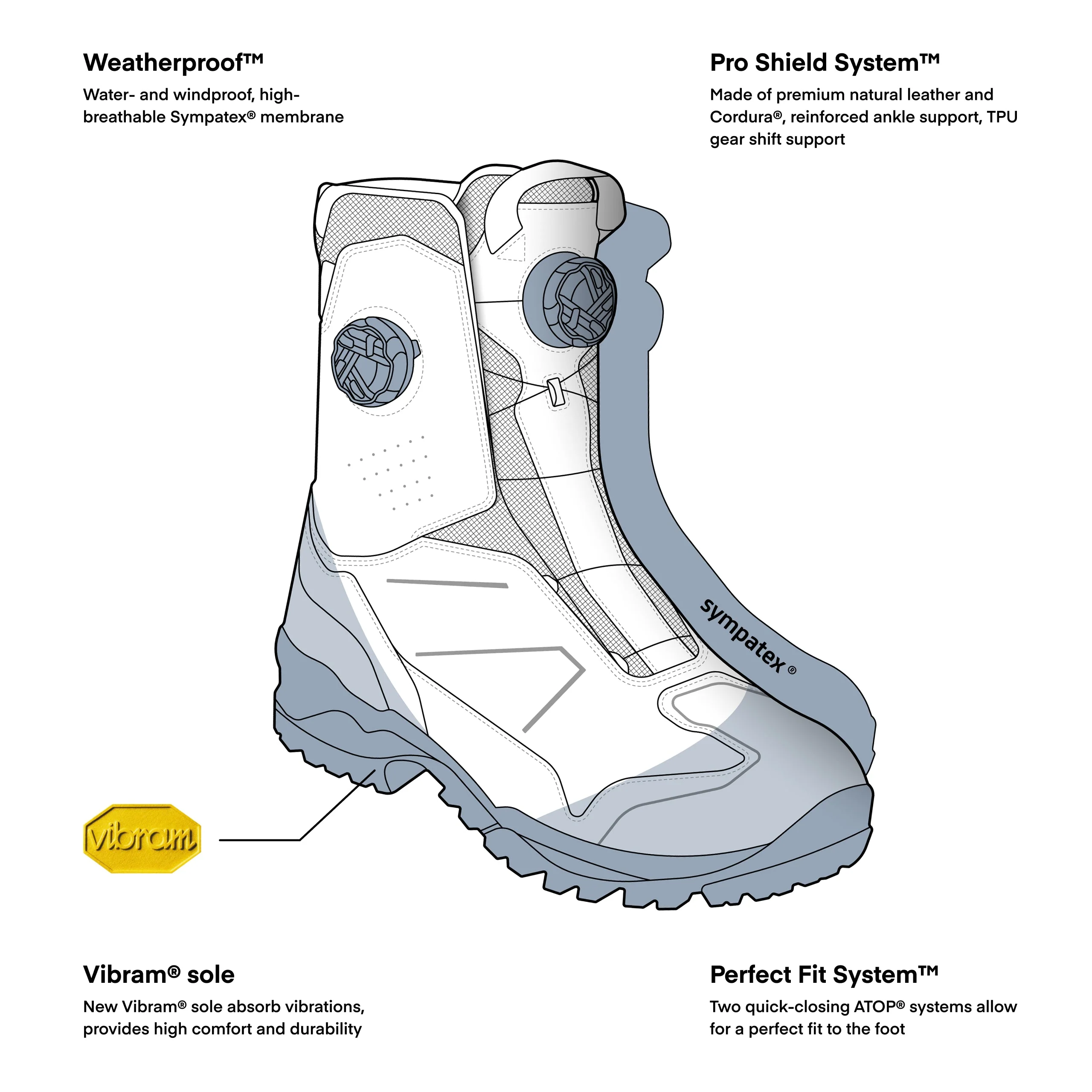 hautement durable, avec une semelle Vibram® exceptionnellement résistante à l’abrasion.