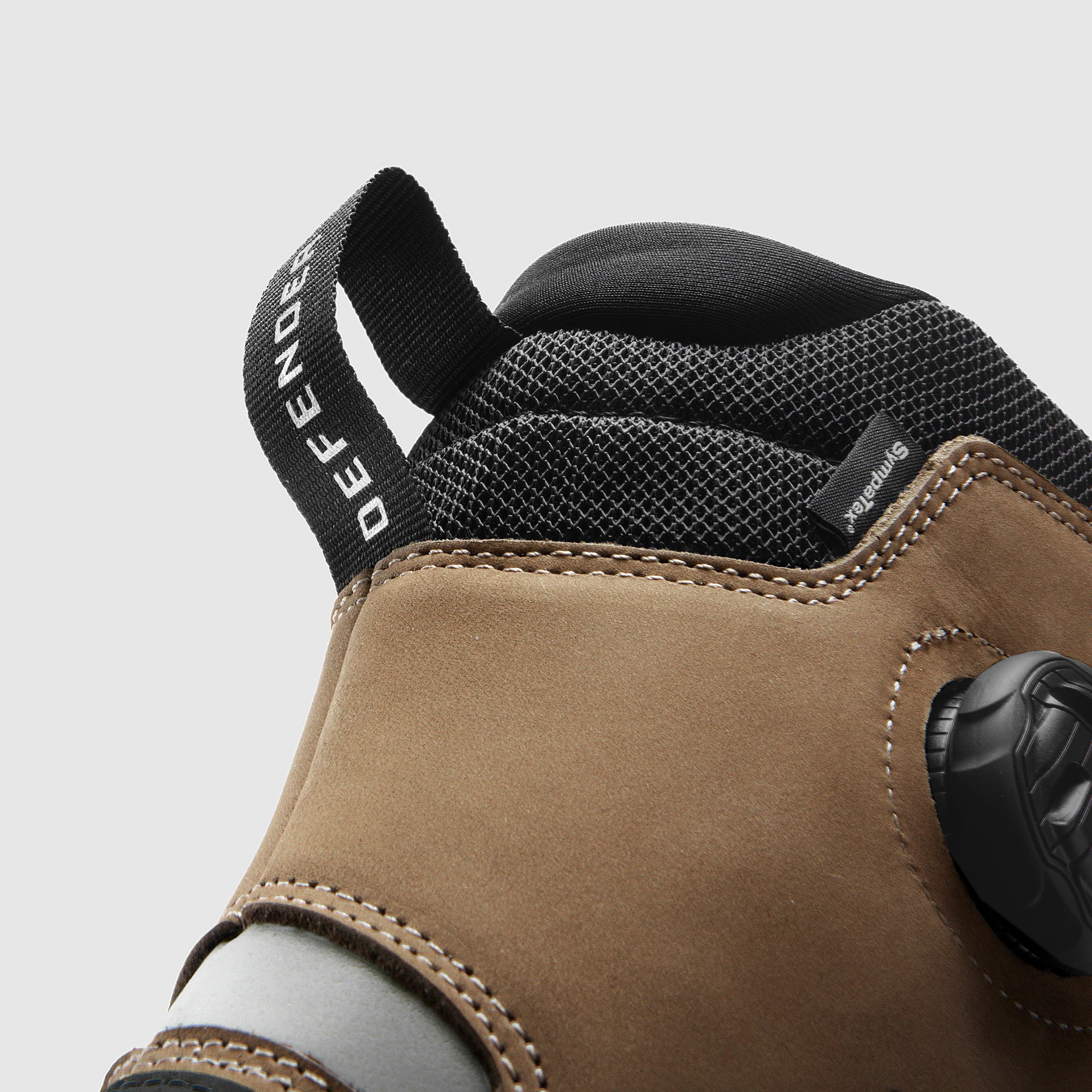 Les bottes Defender X sont fabriquées en cuir de vachette naturel et en matériau Cordura®