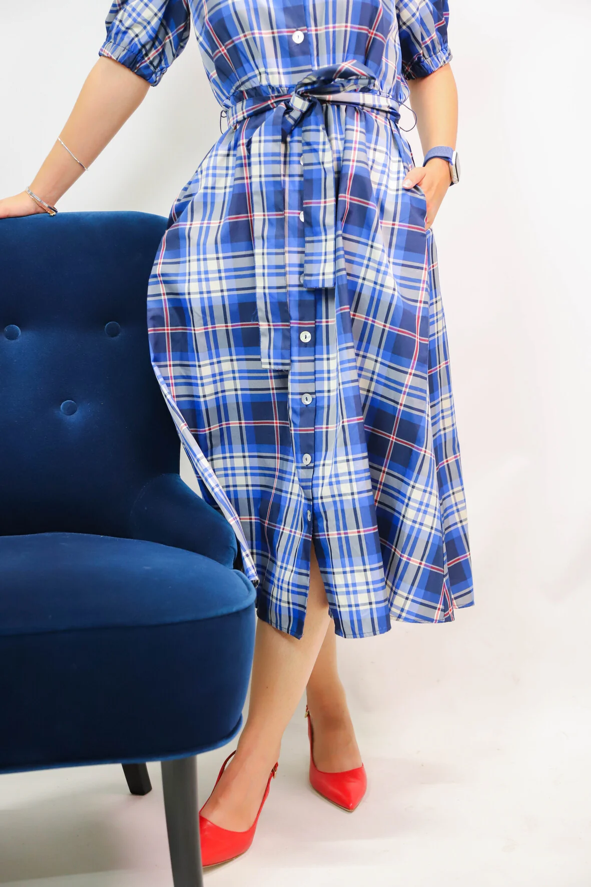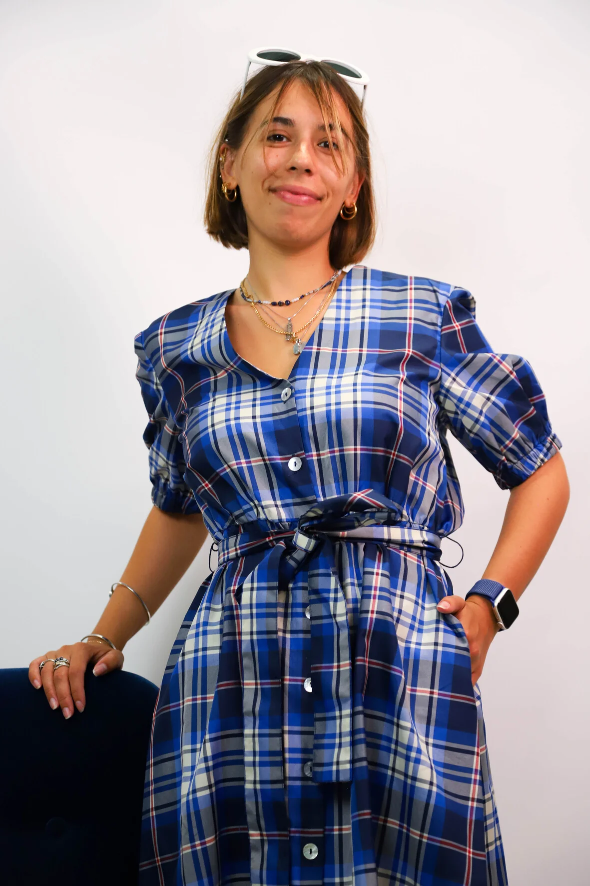 | DESCRIPTIF | Robe à carreaux, manches courtes avec ceinture à nouer. Col V et boutonnière sur le long |