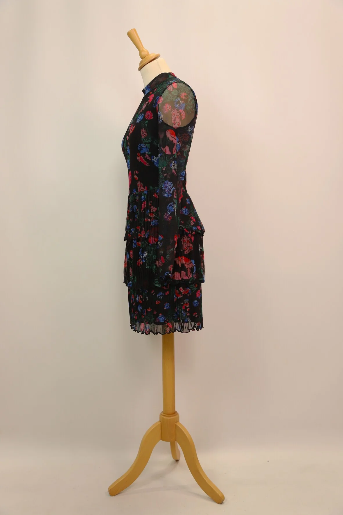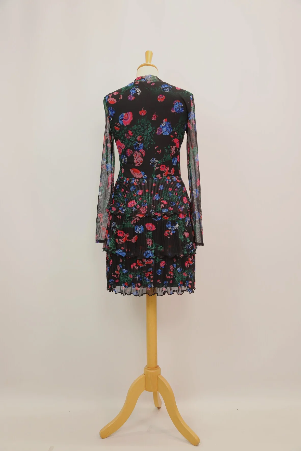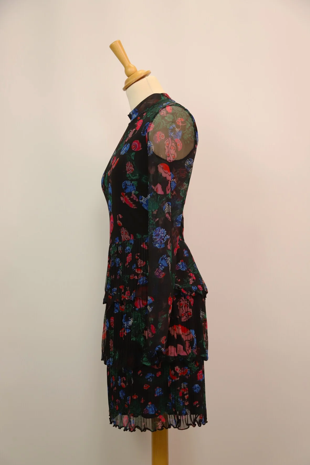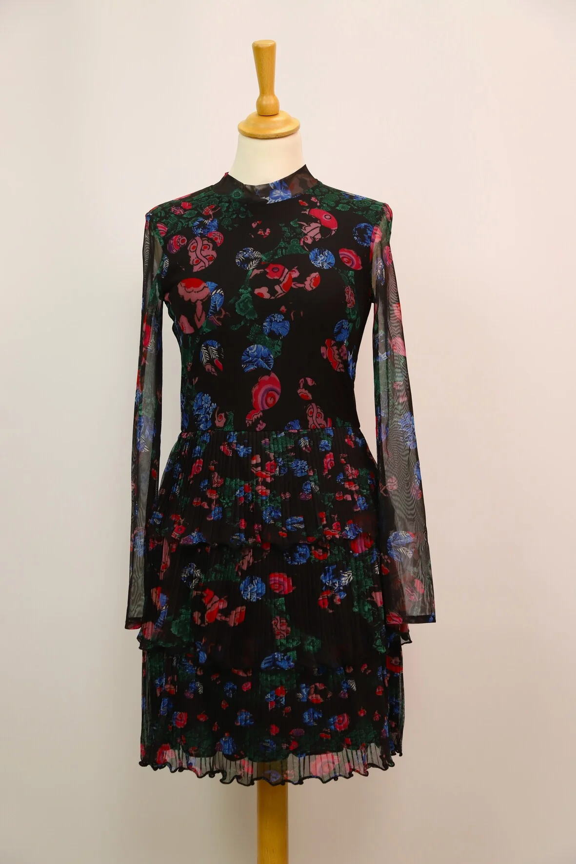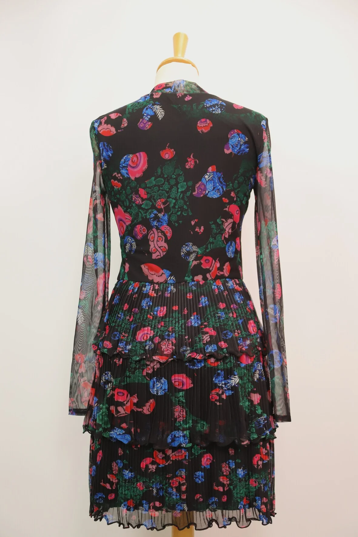 DESCRIPTIF Robe à motifs. Manches en transparence et effet plissé sur les volants