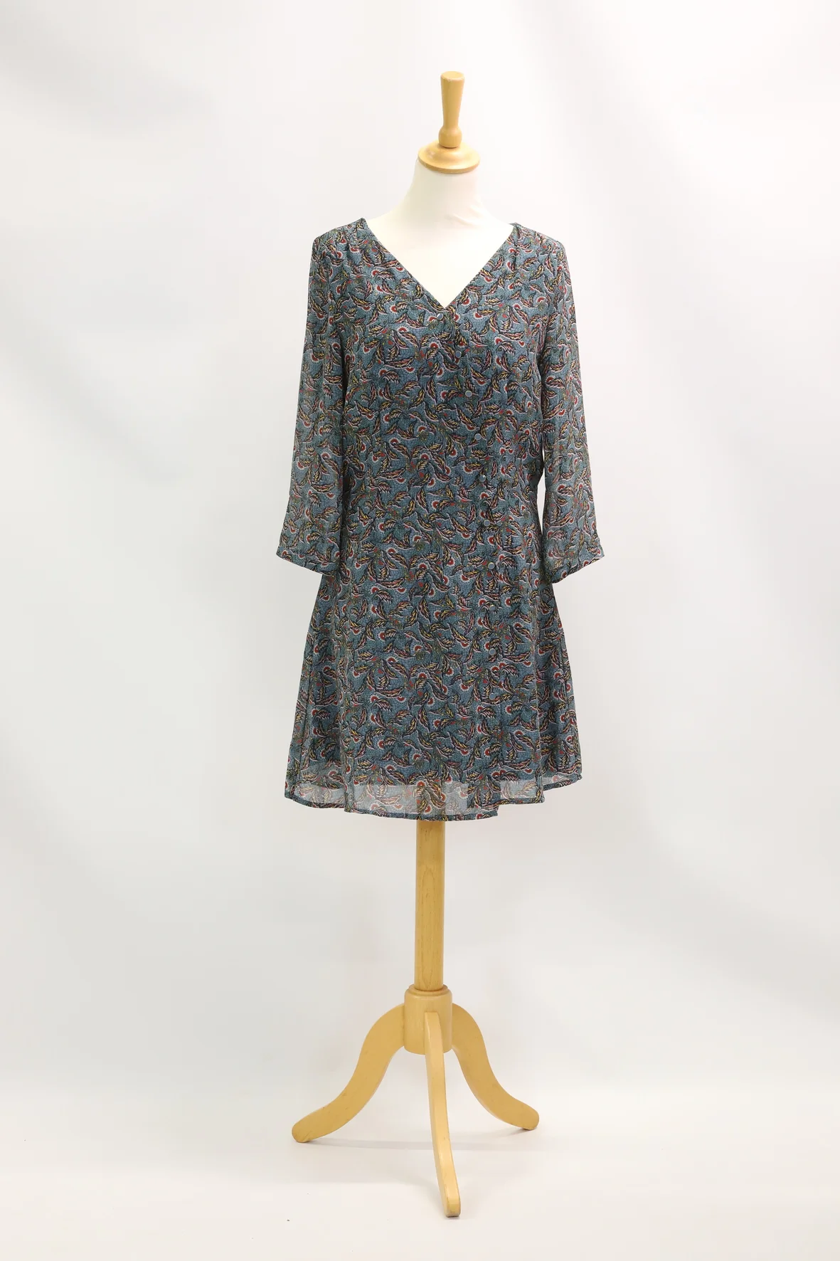 | DESCRIPTIF | Robe à manches 3/4, boutonnage assymétrique devant |