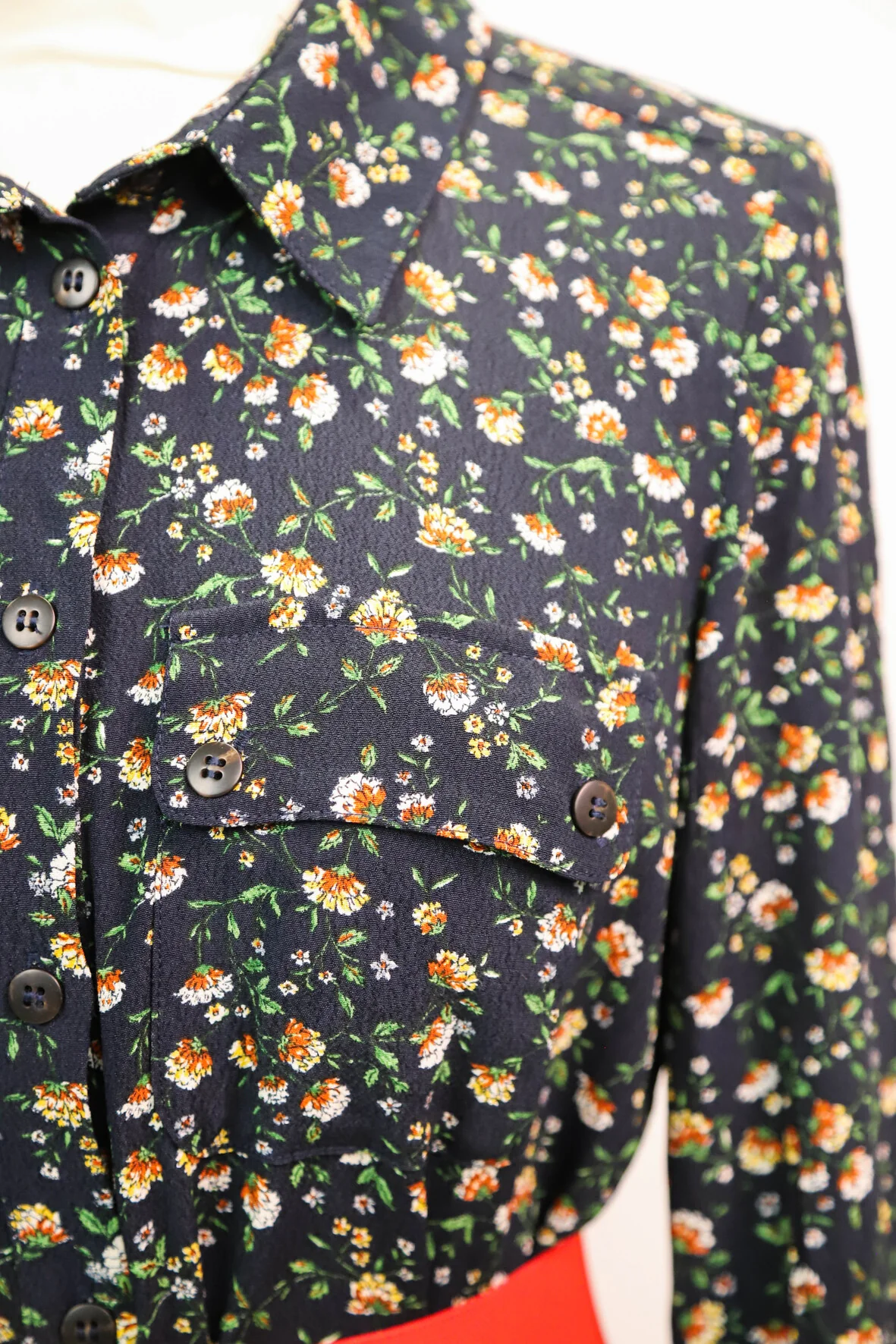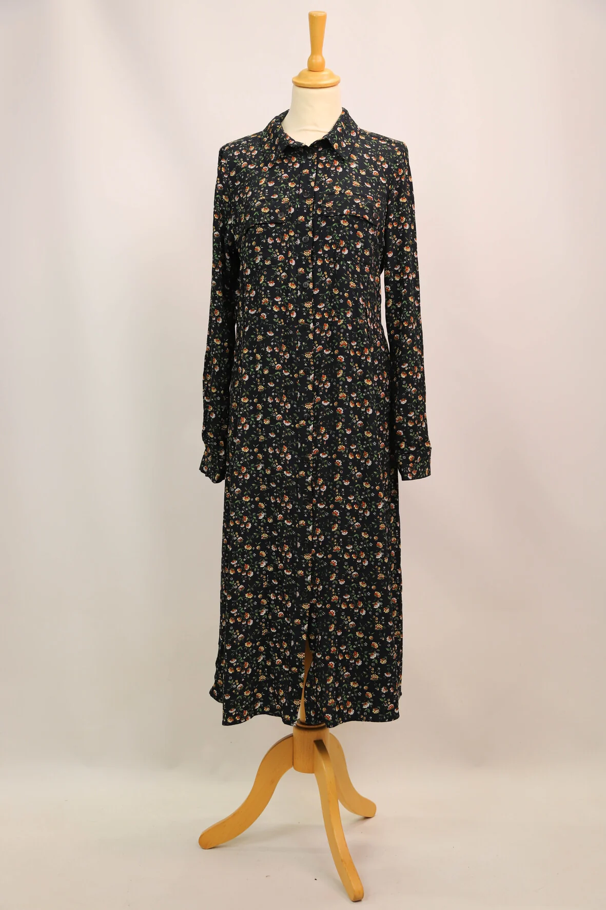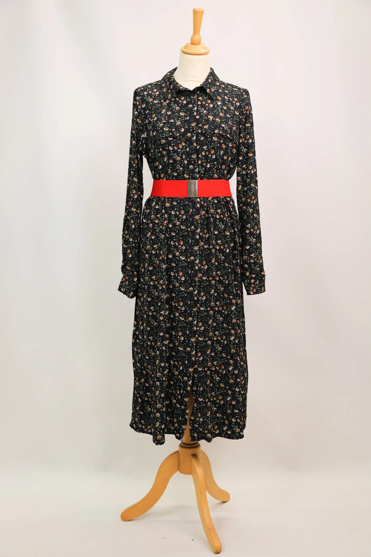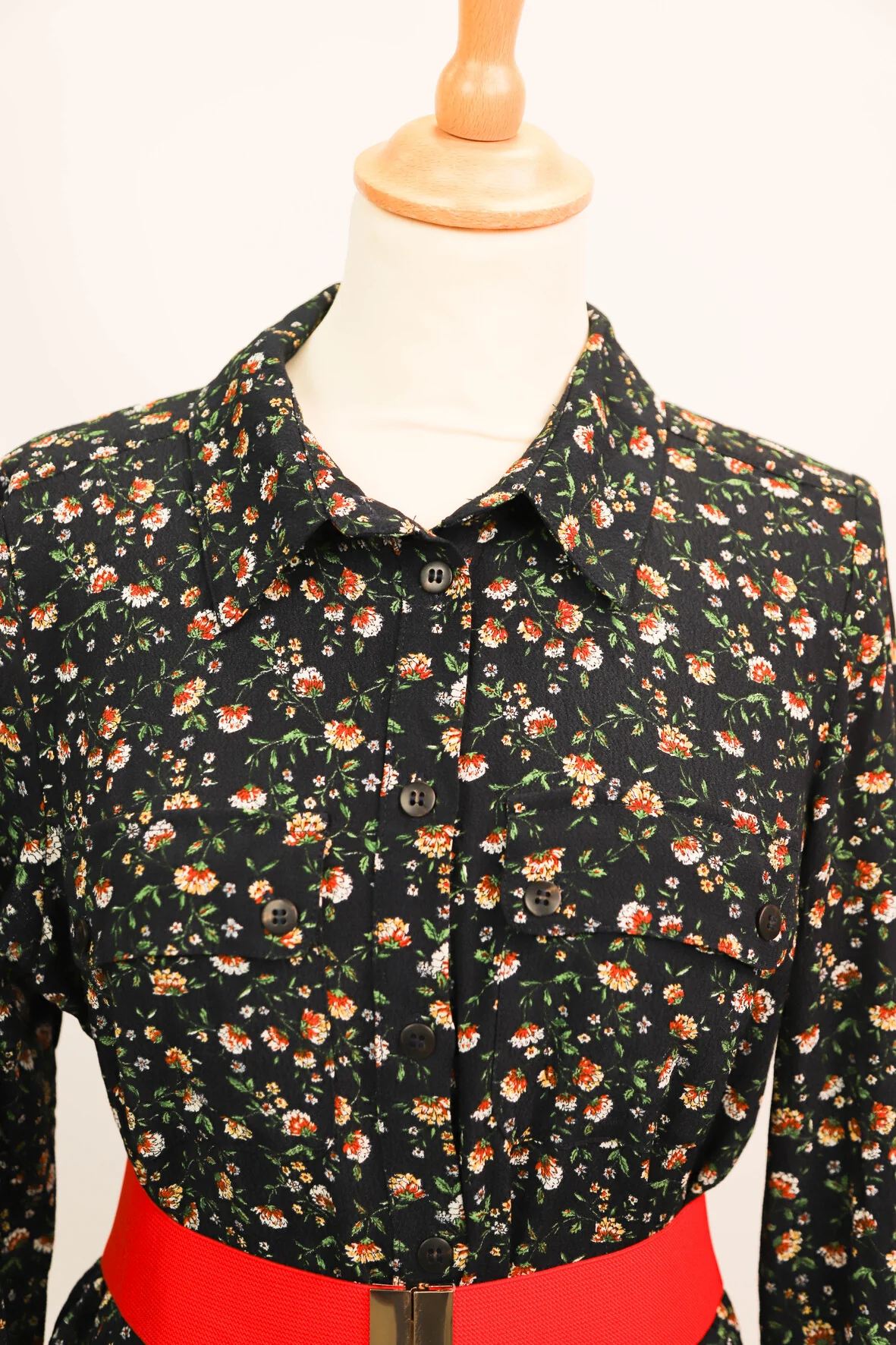 DESCRIPTIF Robe longue fleurie, fermeture par bouton sur toute la longueur, passant pour ceinture