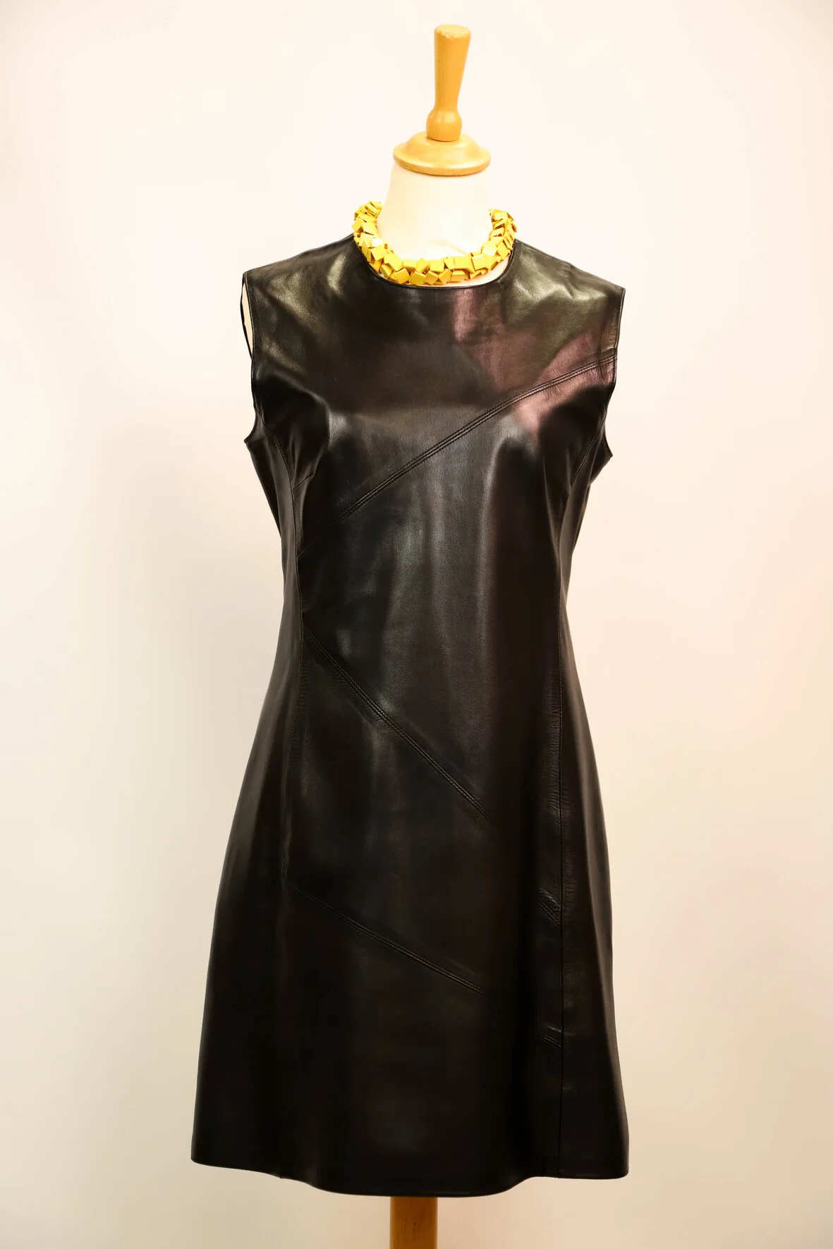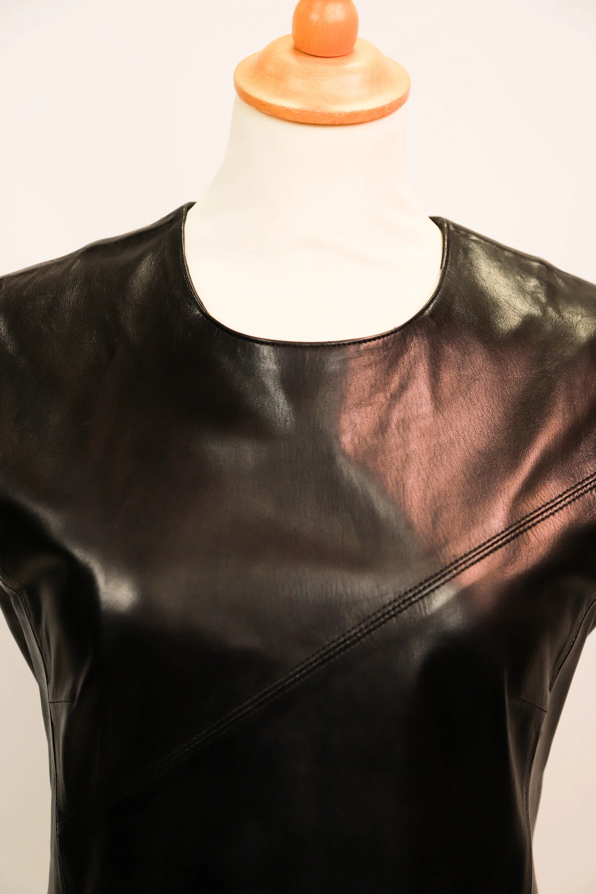 Robe noire en cuir, sans manches, Votre Nom, Taille L/40