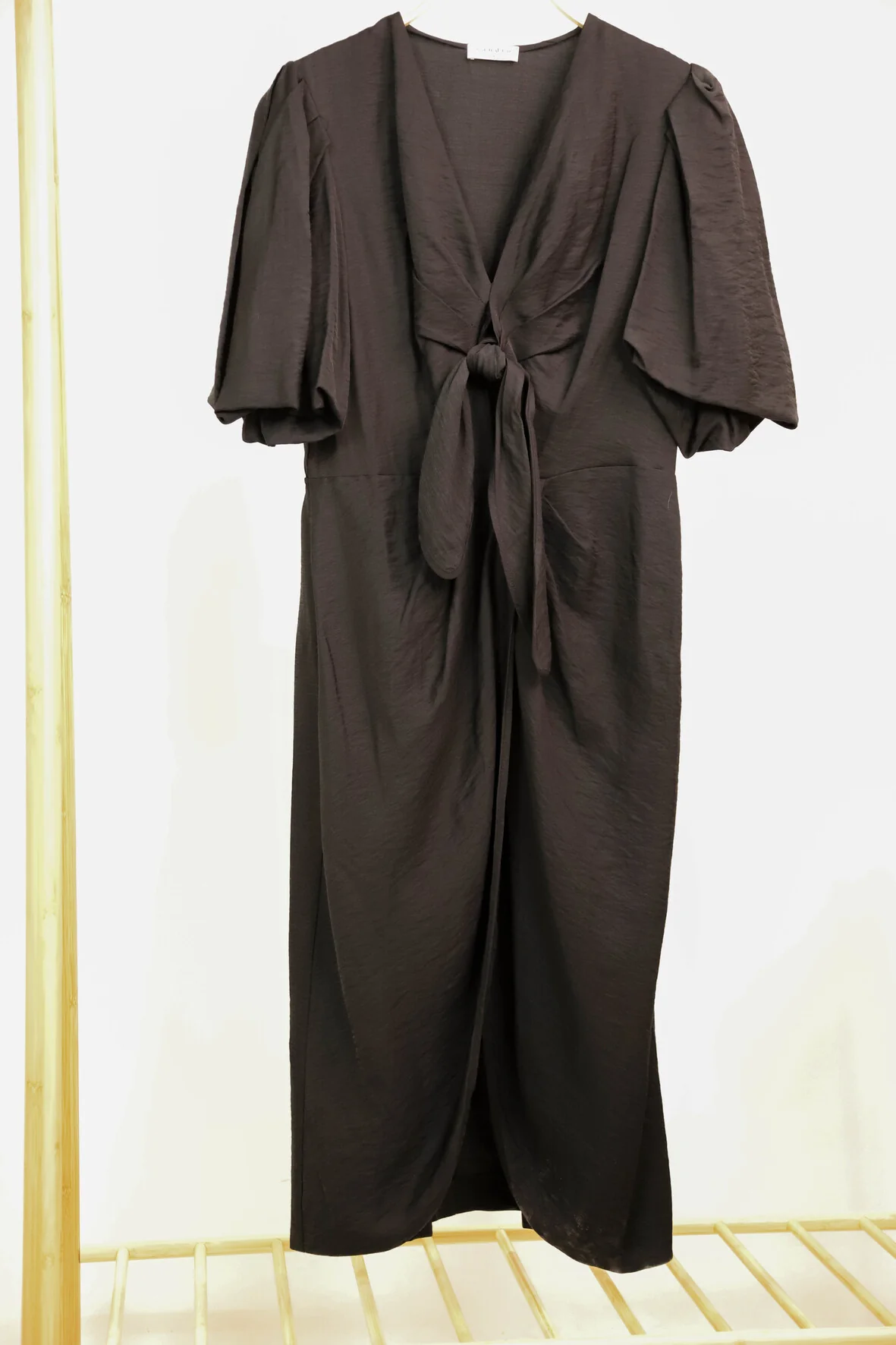 | DESCRIPTIF | Robe longue noire. Noeud au niveau de la poitrine |