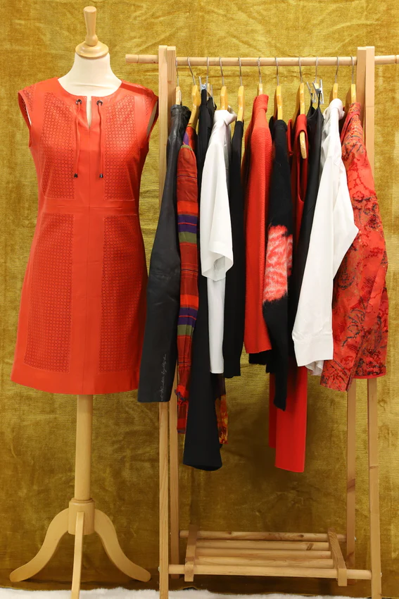 – Robe sans manche rouge avec fermeture au dos