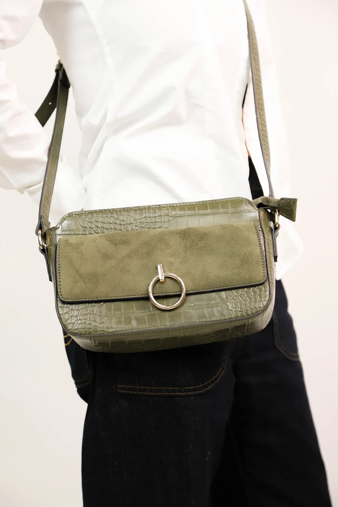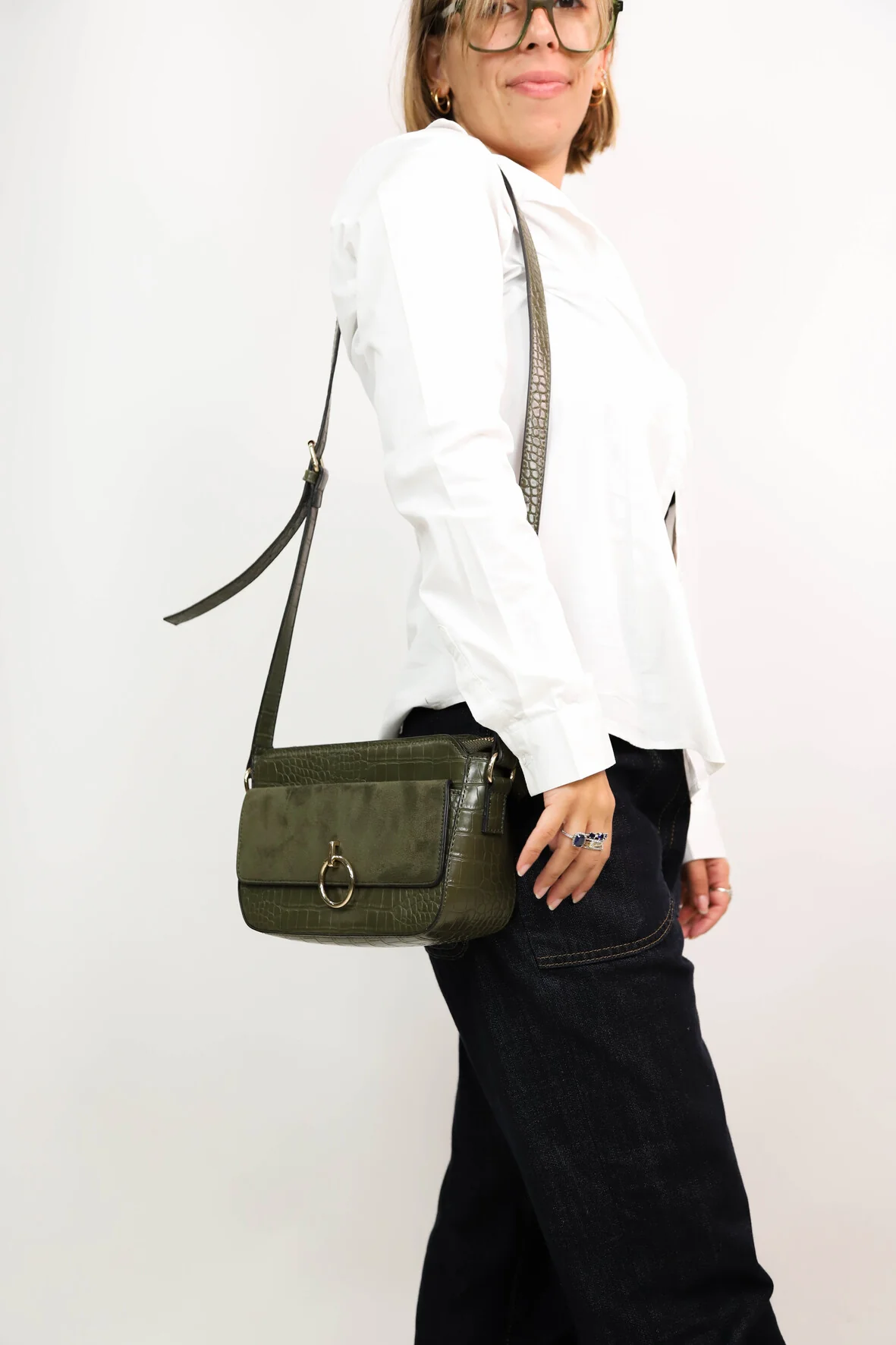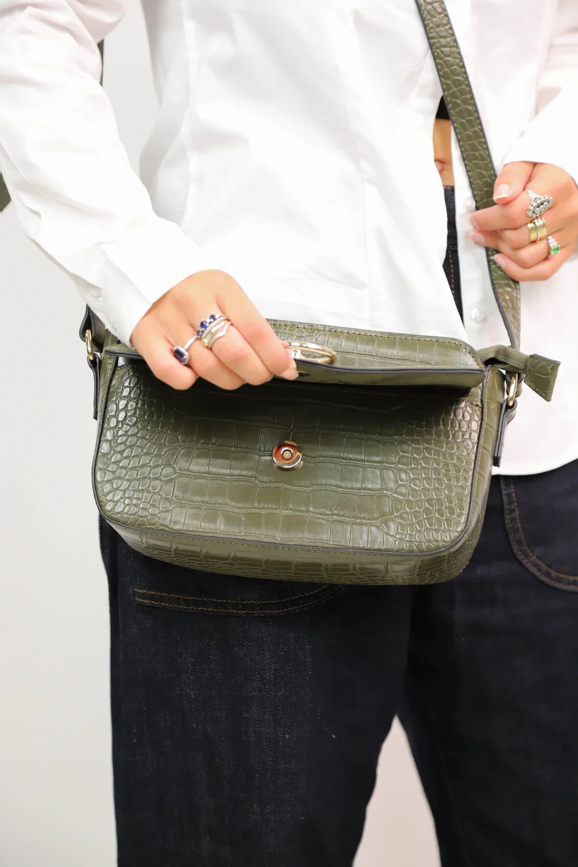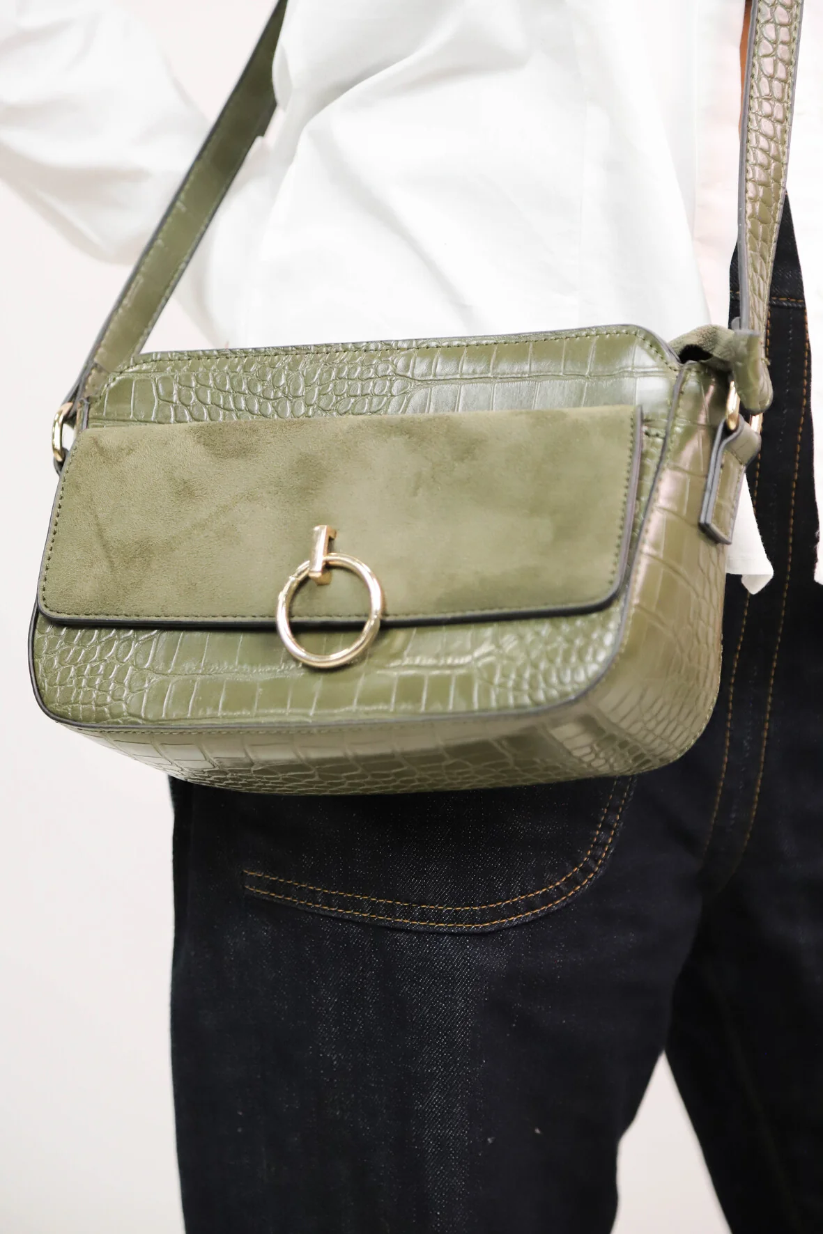 | DESCRIPTIF | Sac avec bandoulière réglable. Motif croco. Pochette intérieure et extérieure |